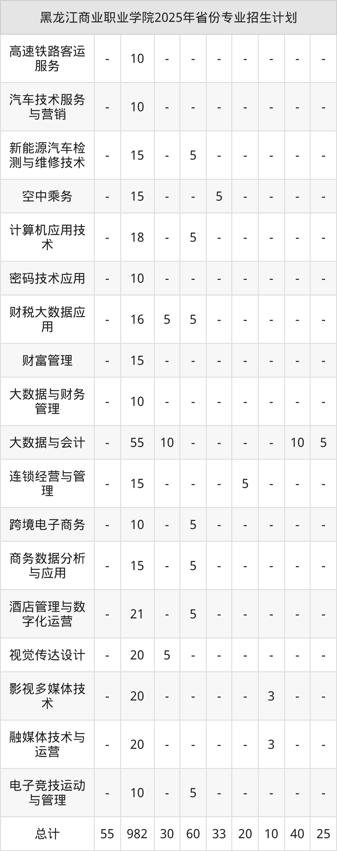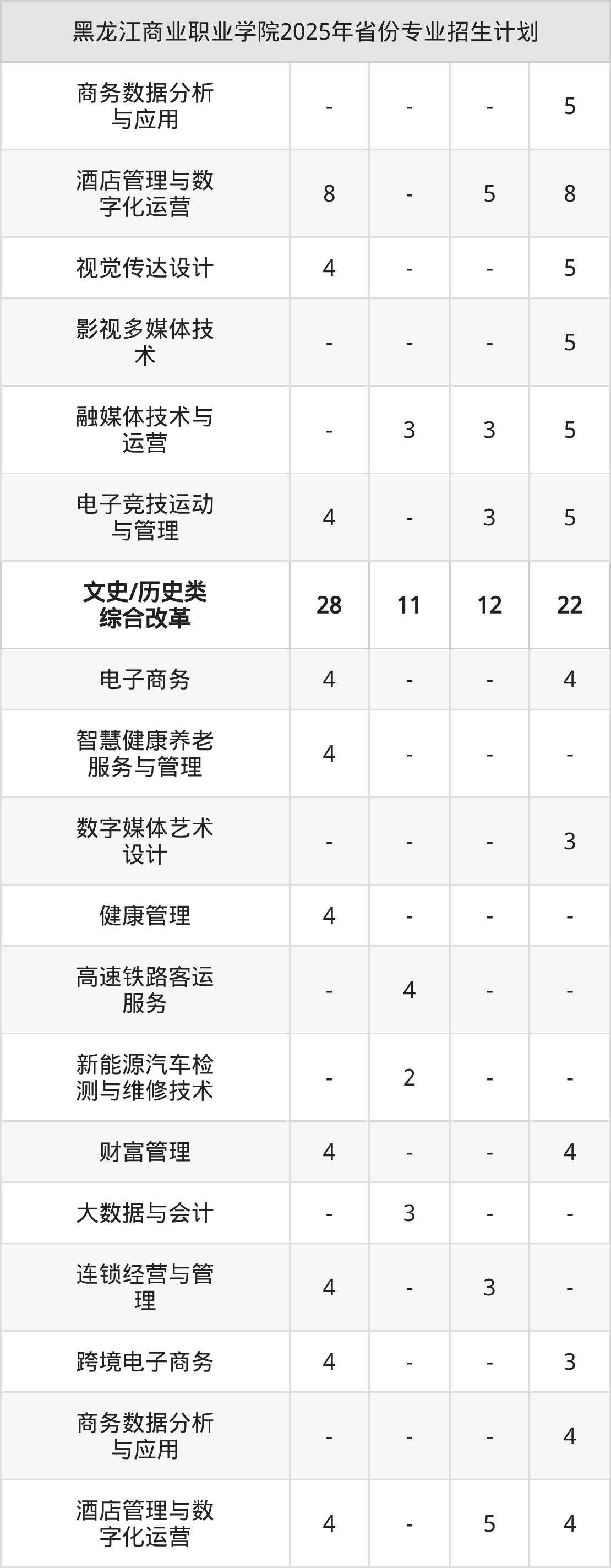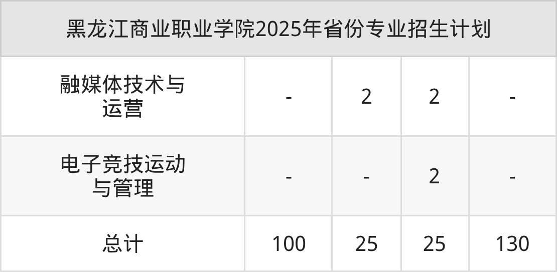 2026年黑龙江商业职业学院专科招生计划待公布,下面附上2025年数据,暂供参考: