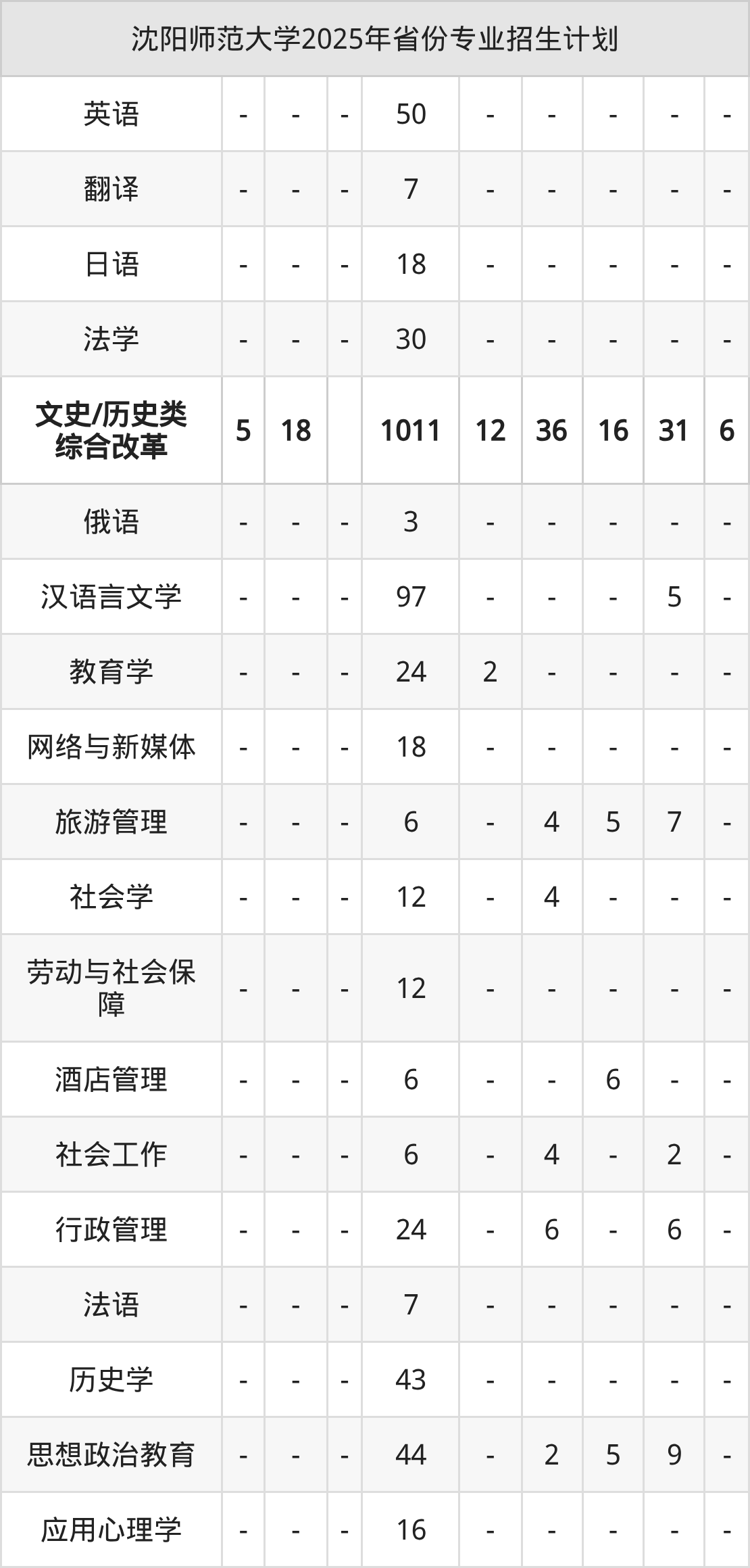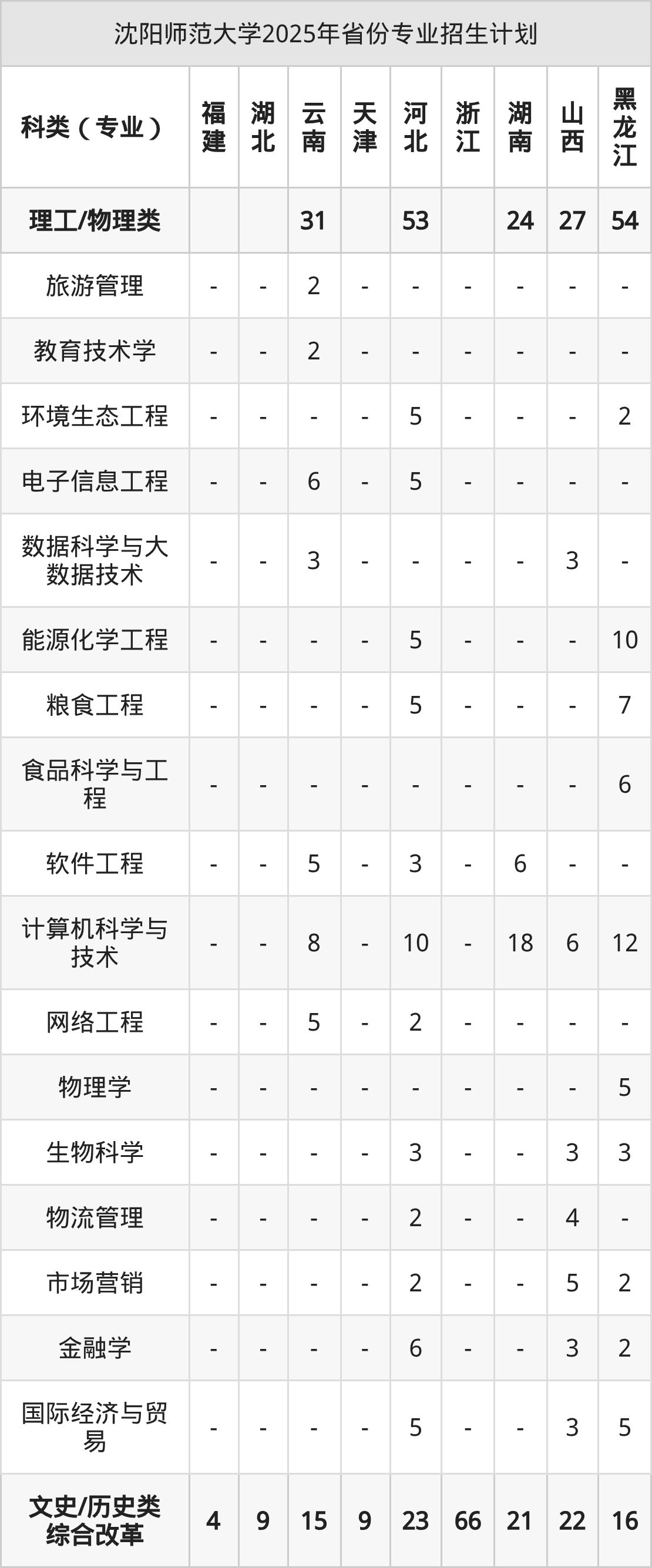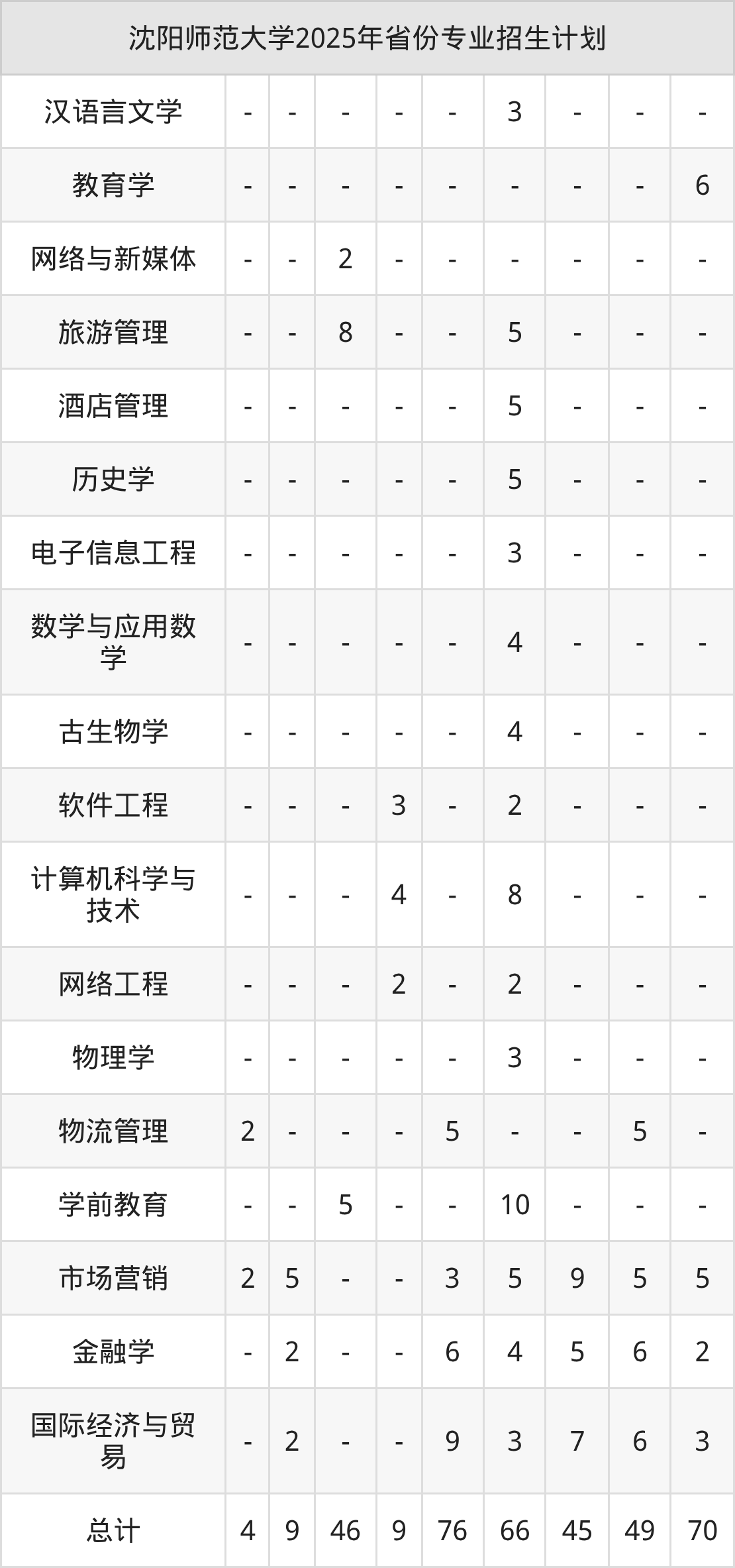 2025年沈阳师范大学计划招收本科生3800人,其中教育学专业50人,历史学专业60人,能源化学工程专业90人,计算机科学与技术专业379人,网络工程专业94人等。