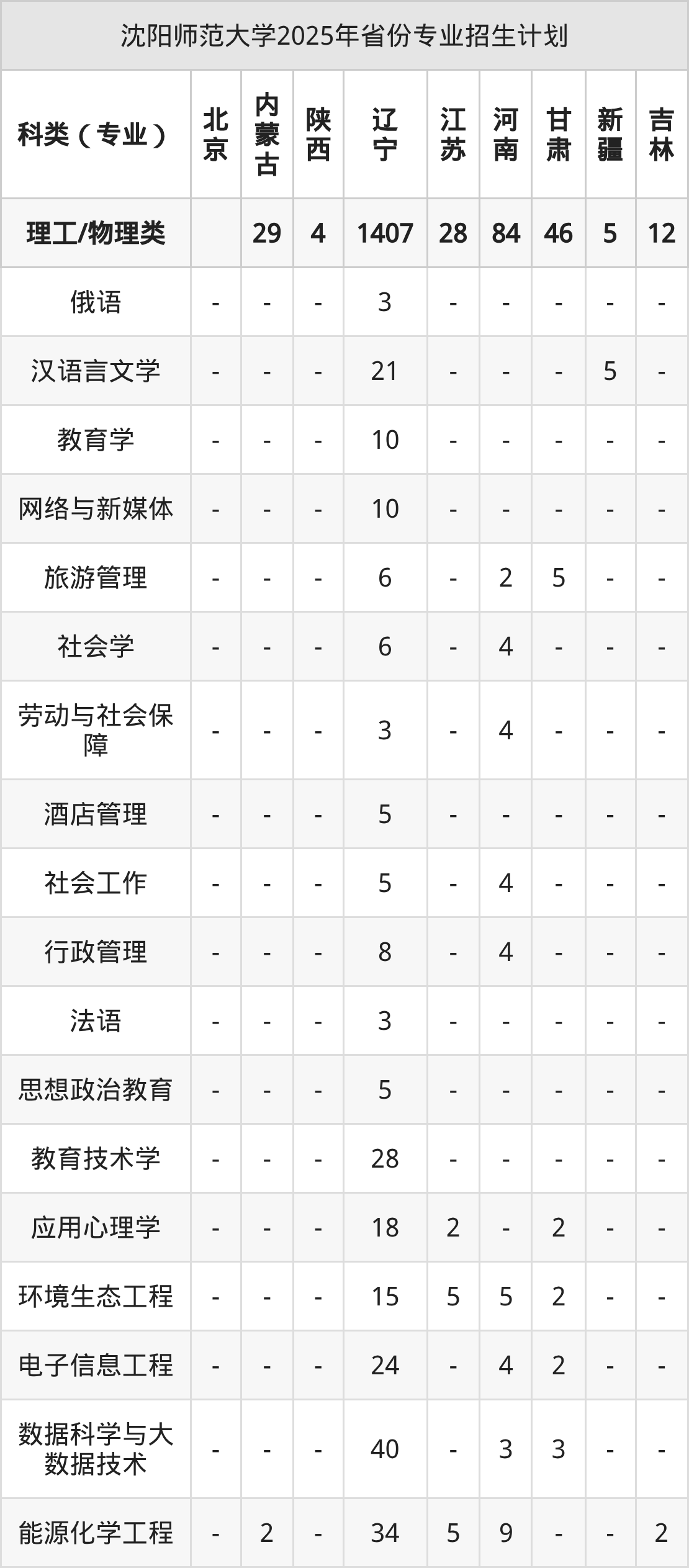 2026年沈阳师范大学本科招生计划待公布,下面附上2025年数据,暂供参考: