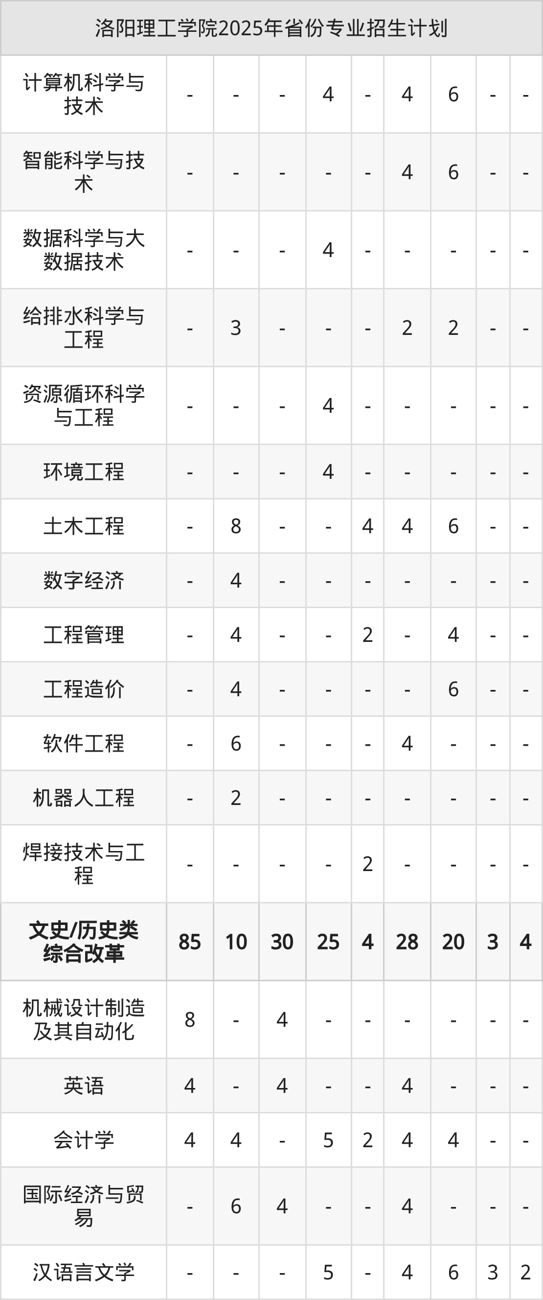 2026年洛阳理工学院本科招生计划待公布,下面附上2025年数据,暂供参考: