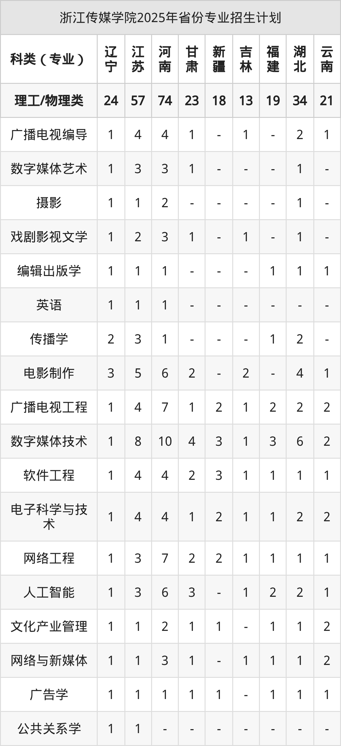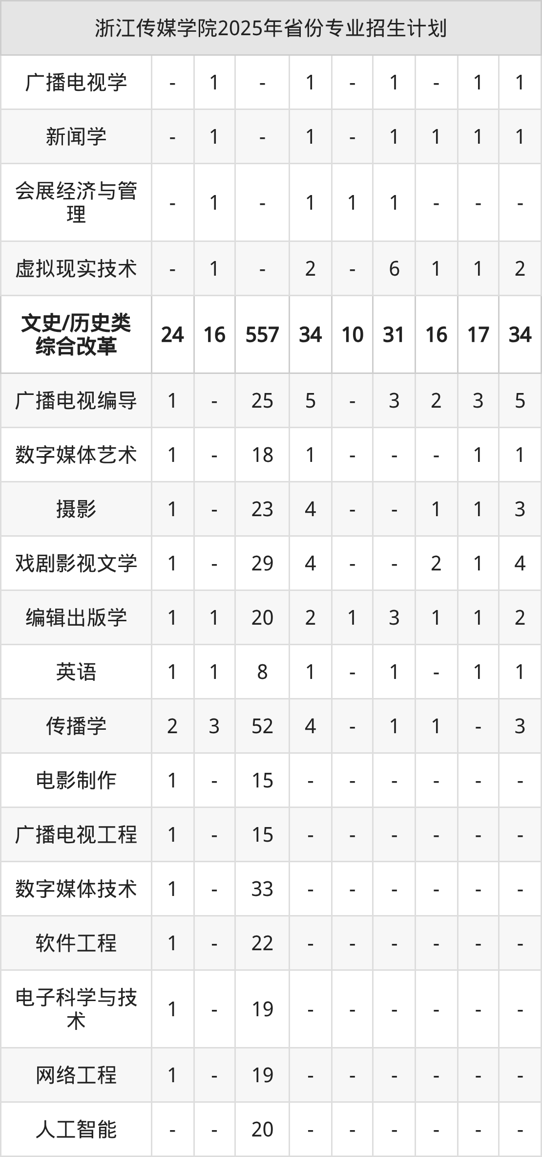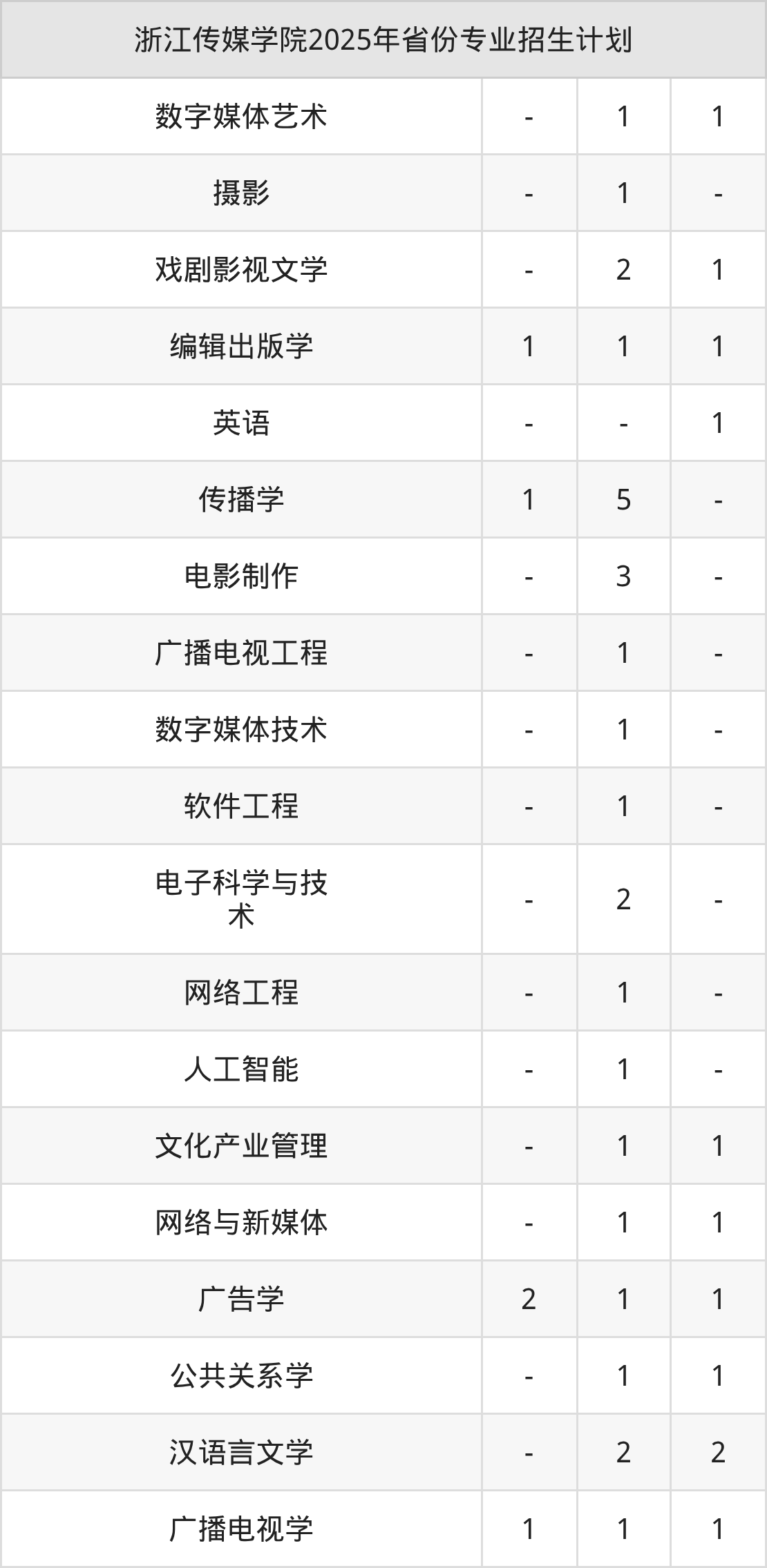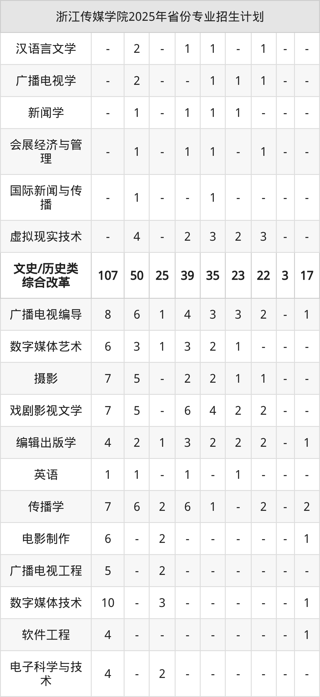 2026年浙江传媒学院本科招生计划待公布,下面附上2025年数据,暂供参考: