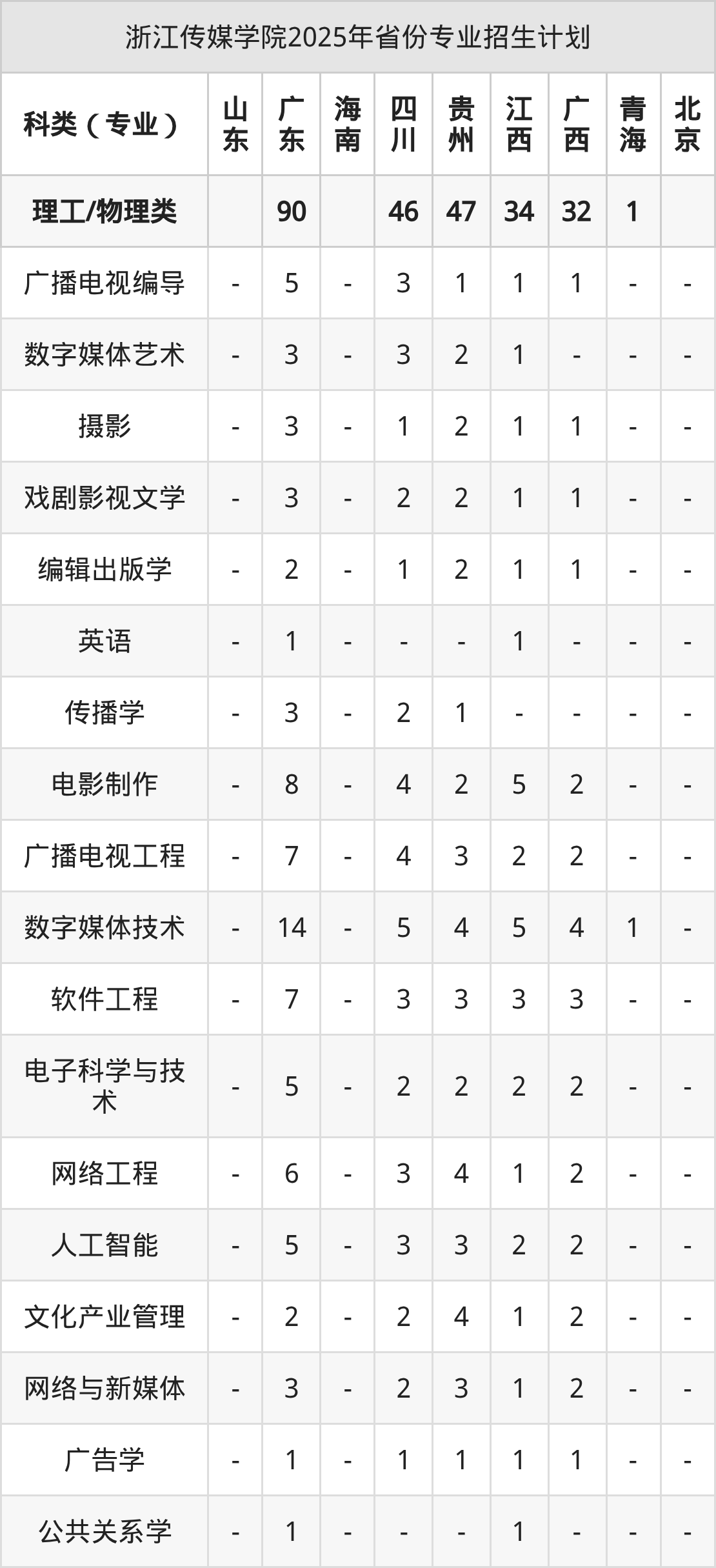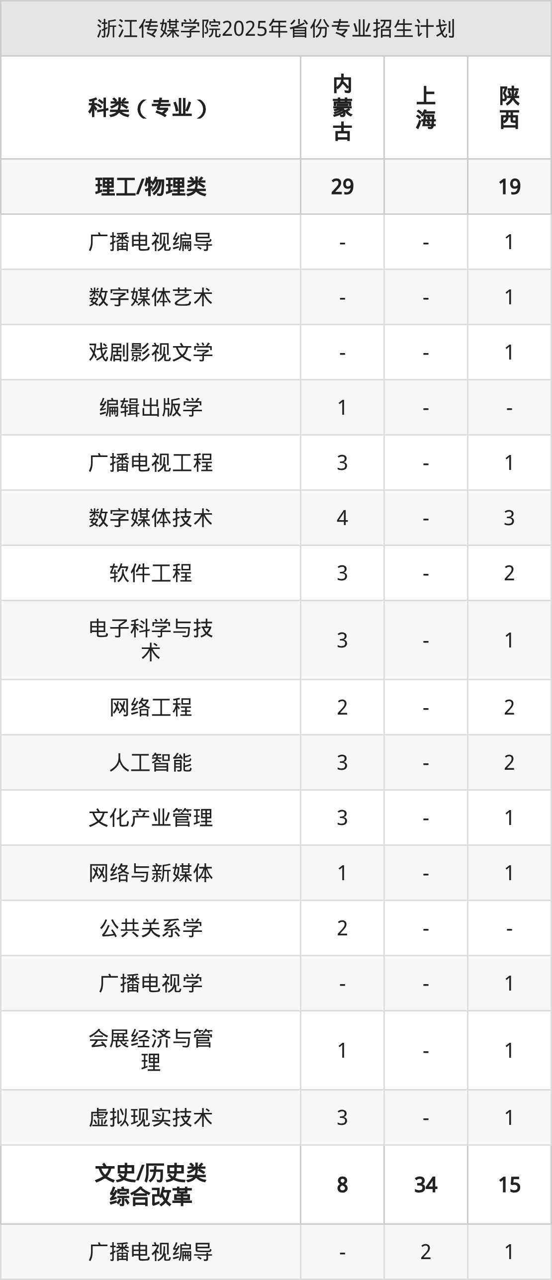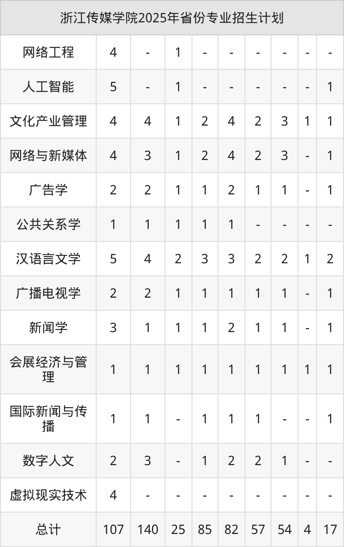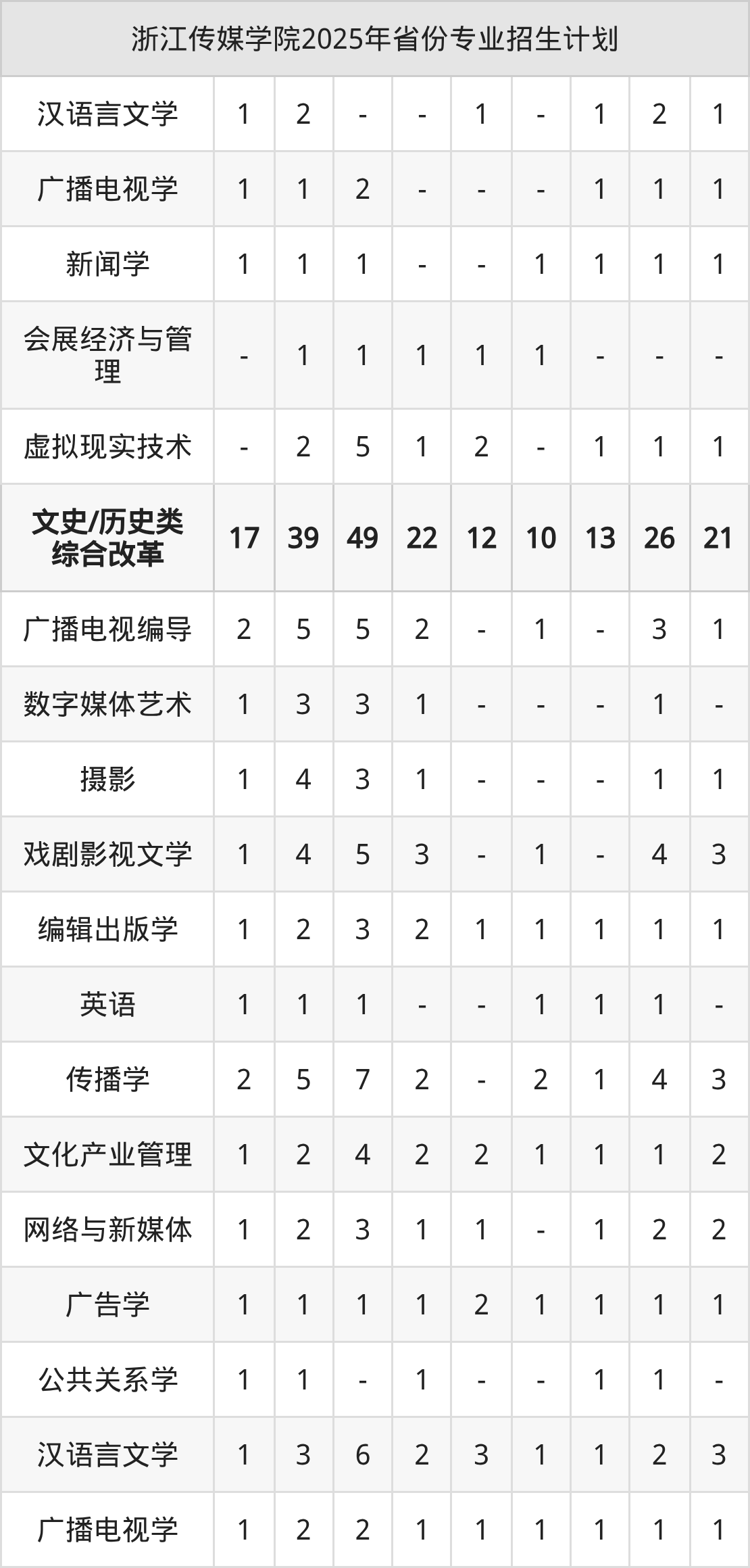2026年浙江传媒学院本科招生计划待公布,下面附上2025年数据,暂供参考: