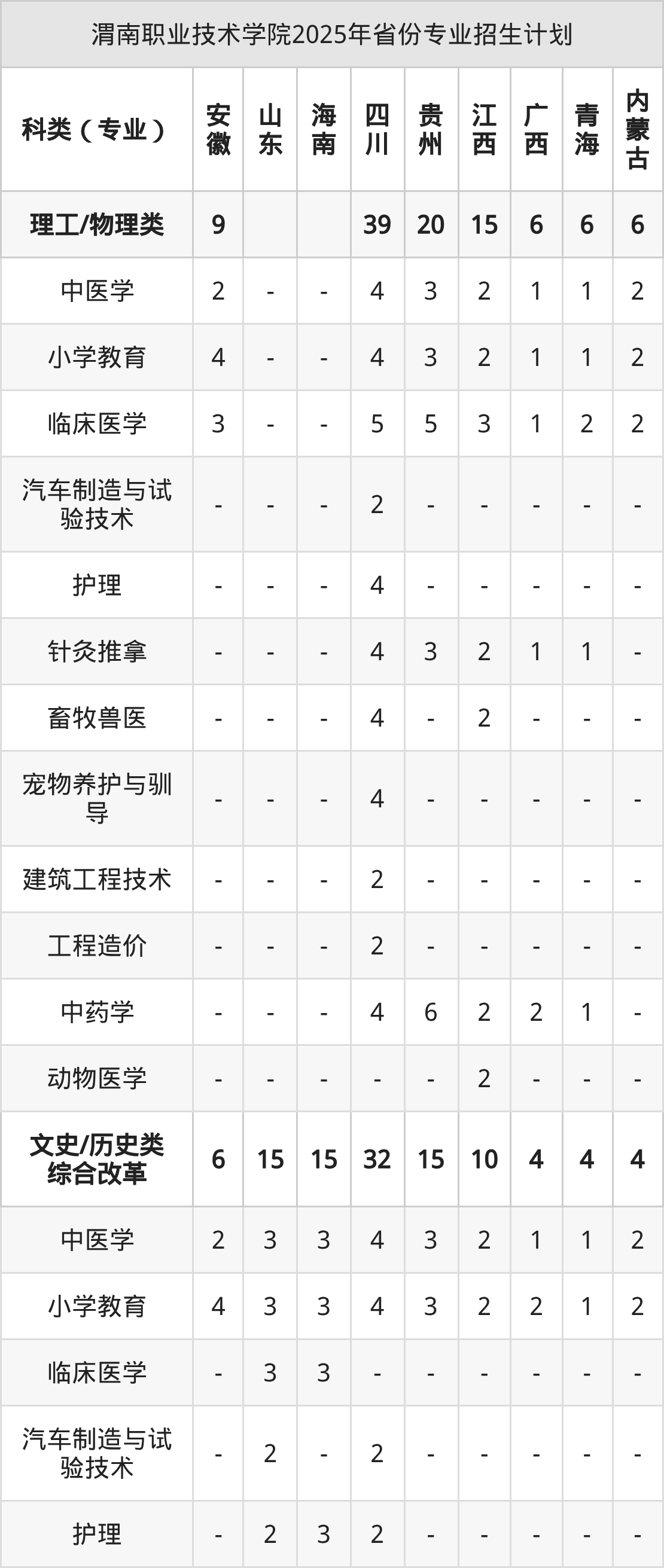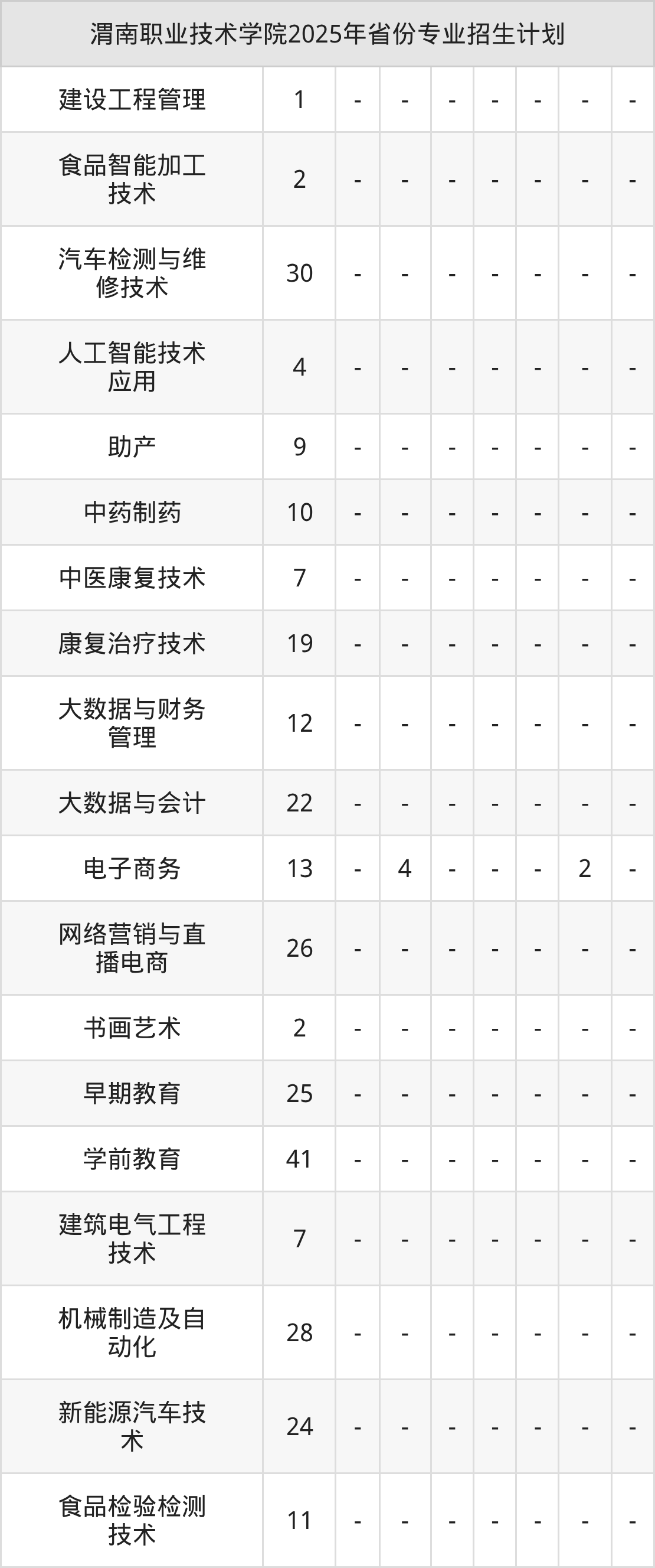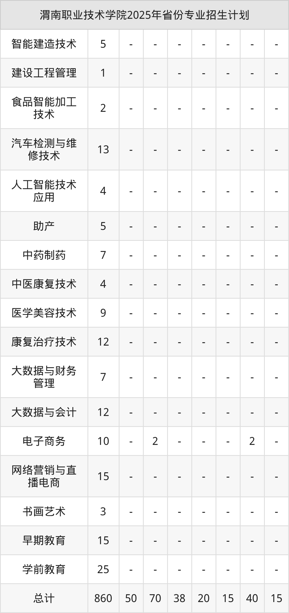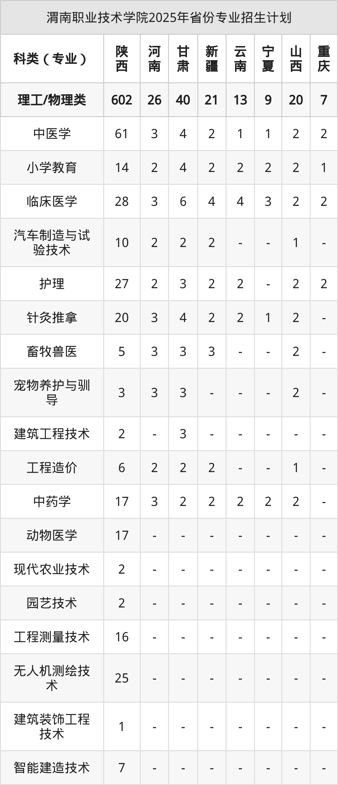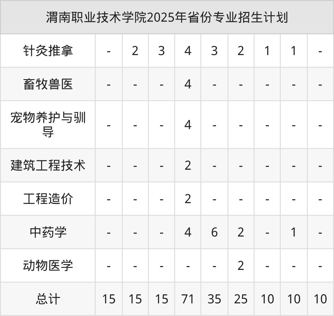 2026年渭南职业技术学院专科招生计划待公布,下面附上2025年数据,暂供参考: