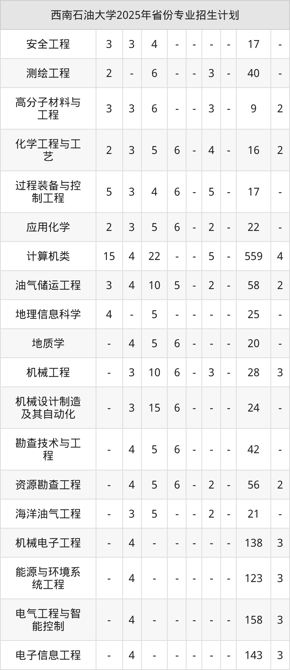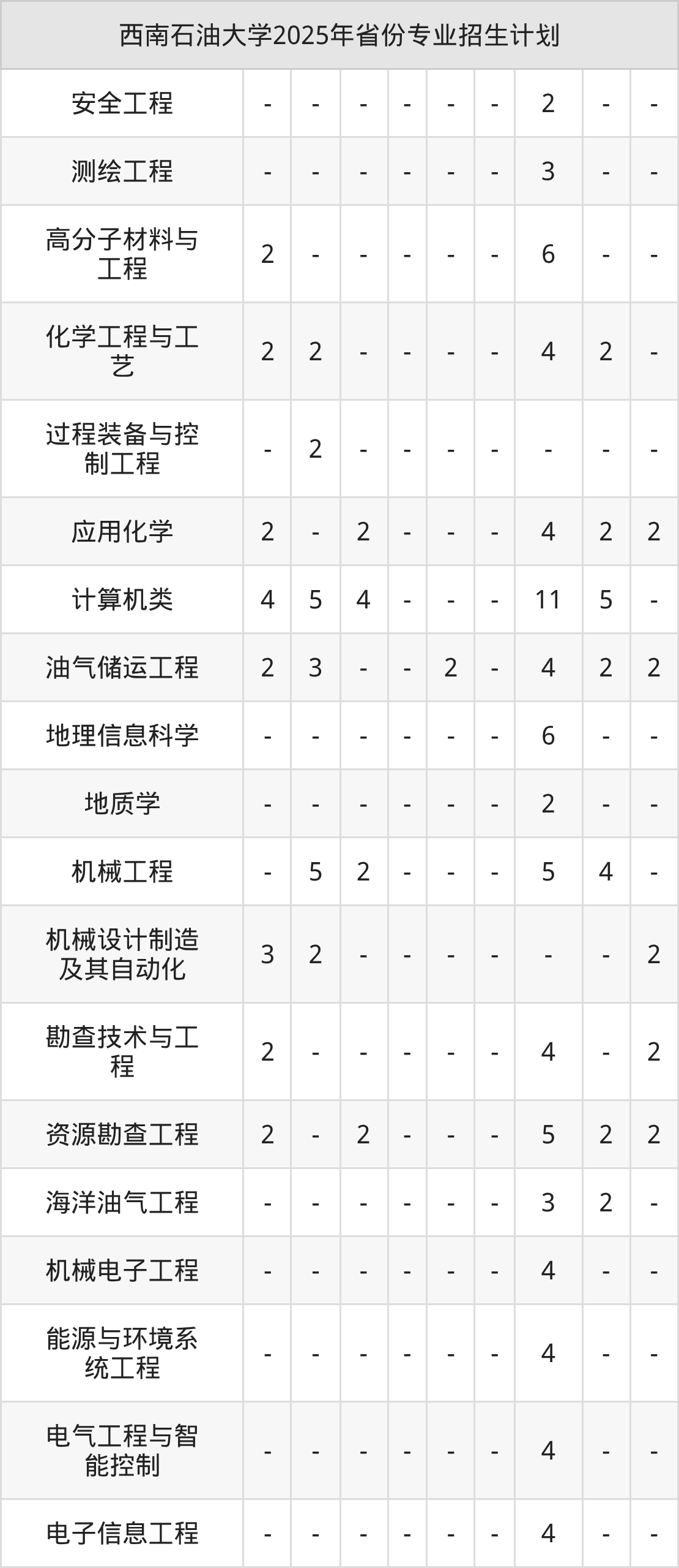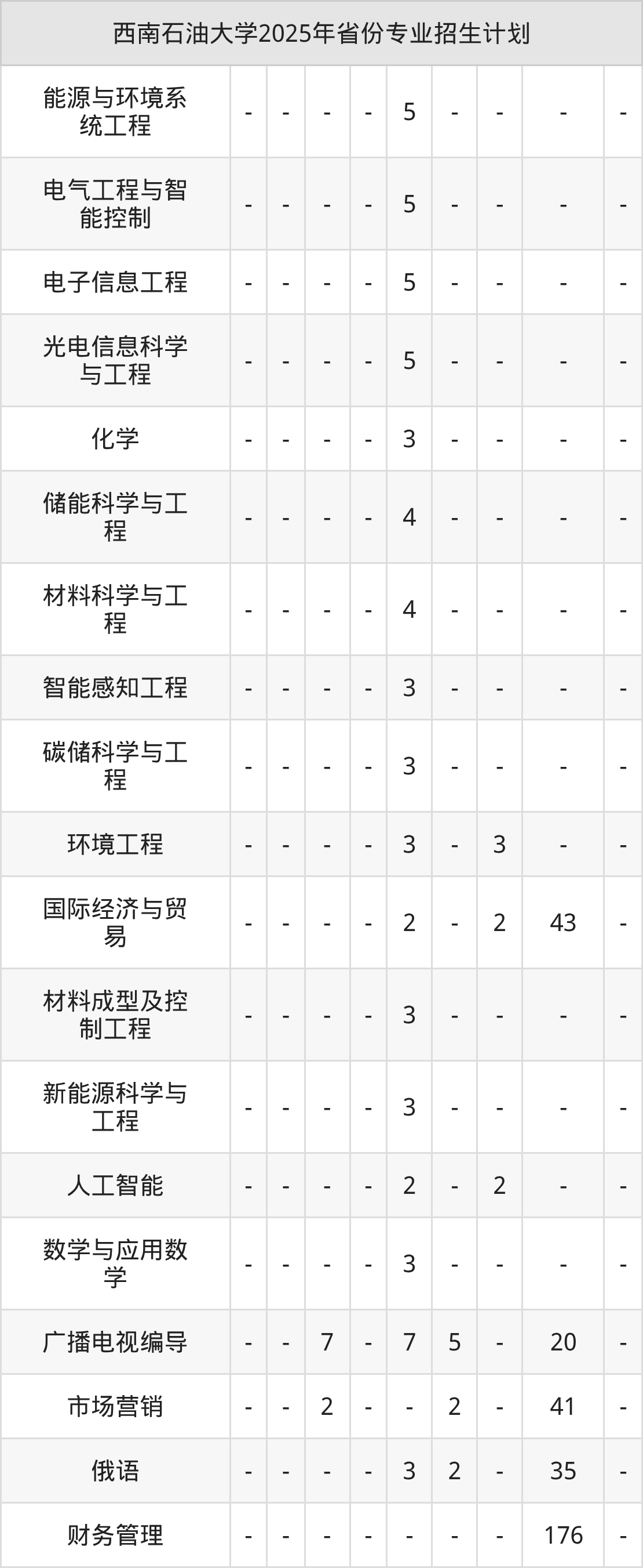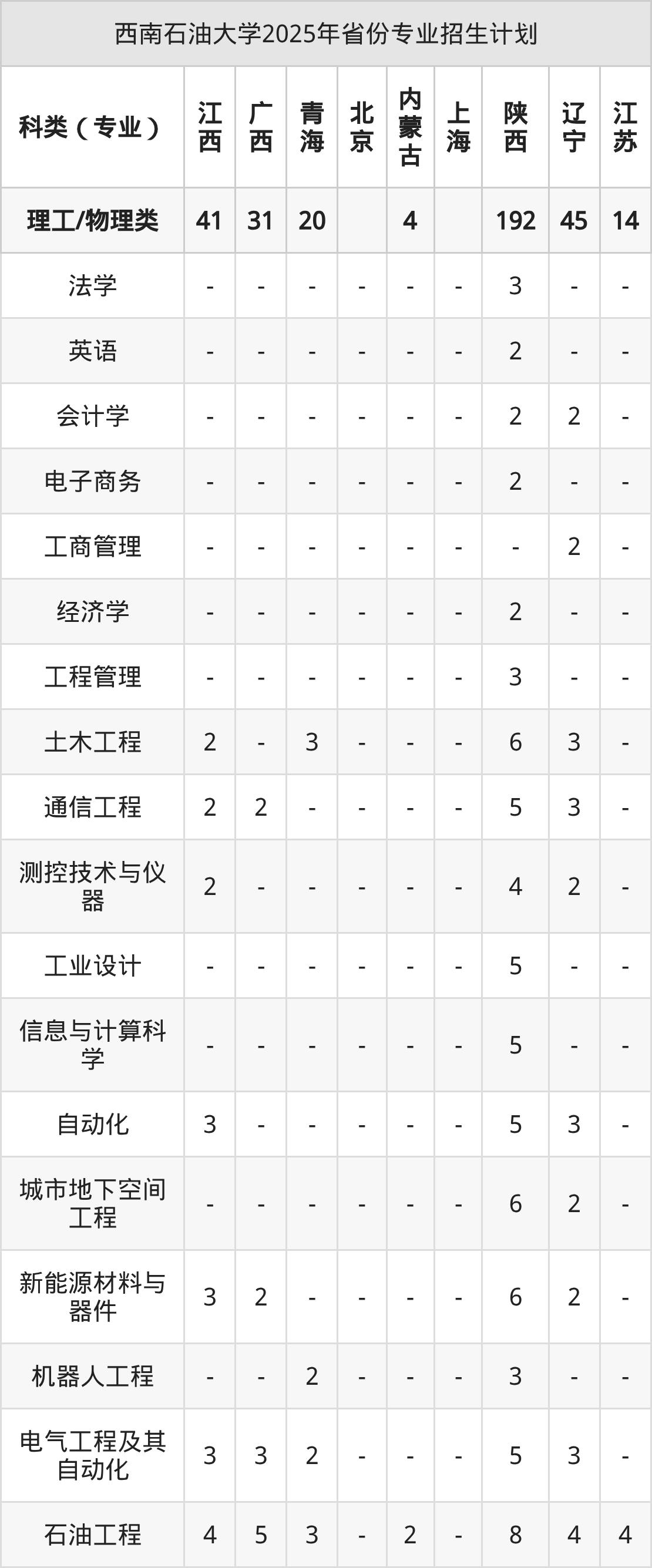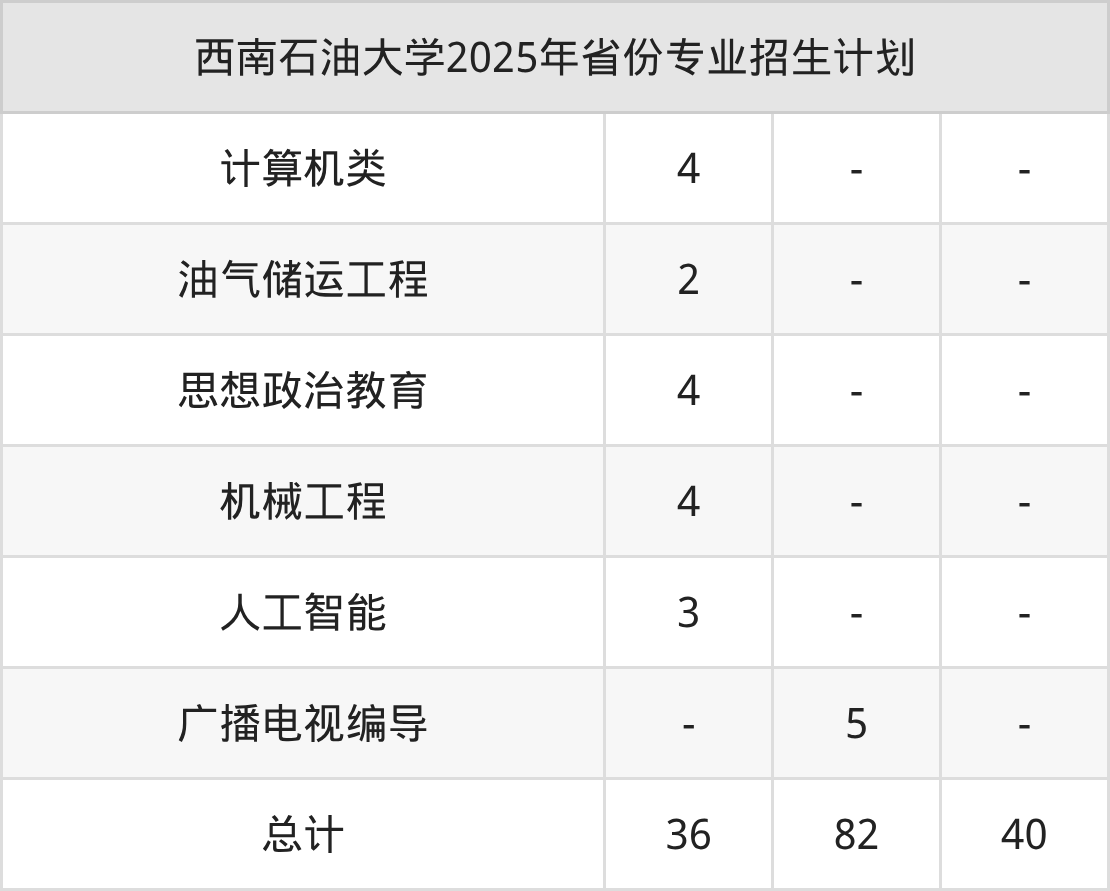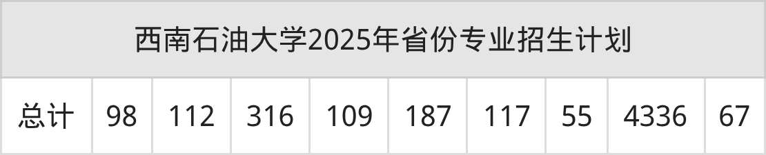 2026年西南石油大学本科招生计划待公布,下面附上2025年数据,暂供参考: