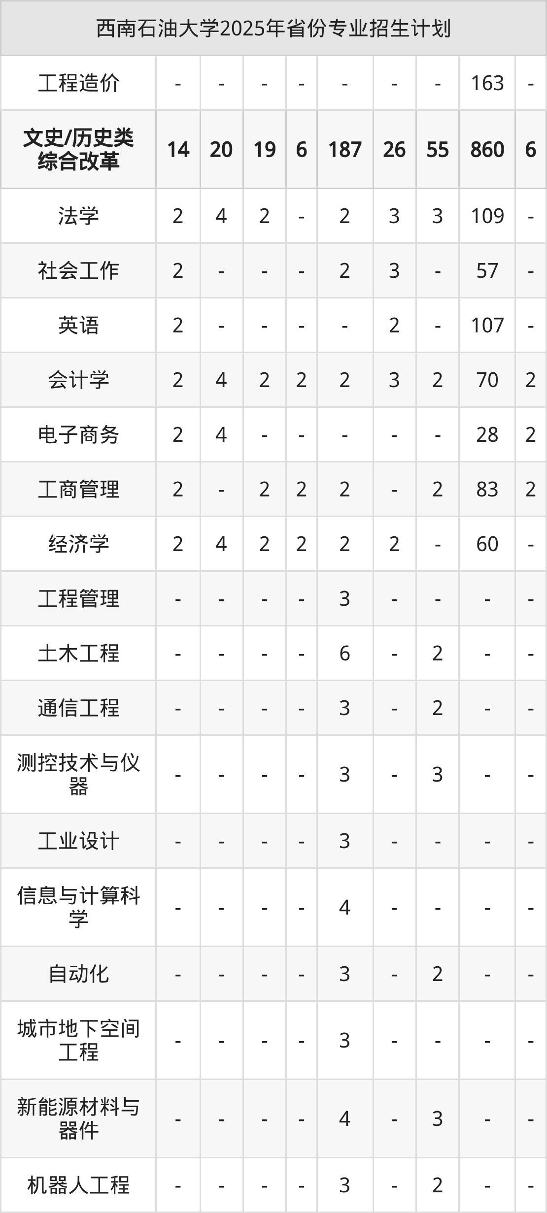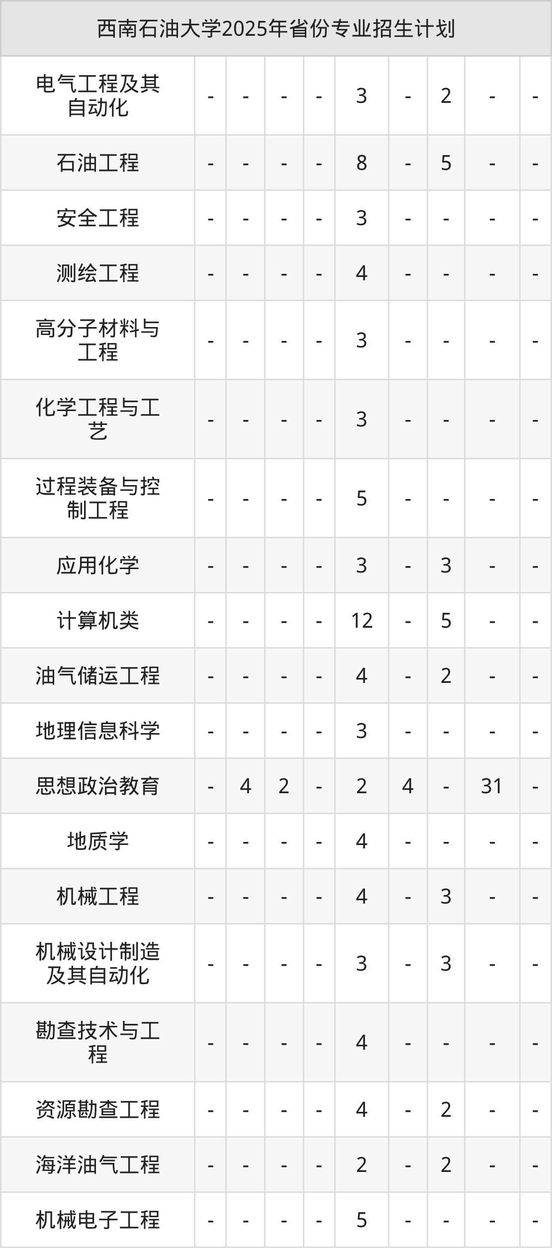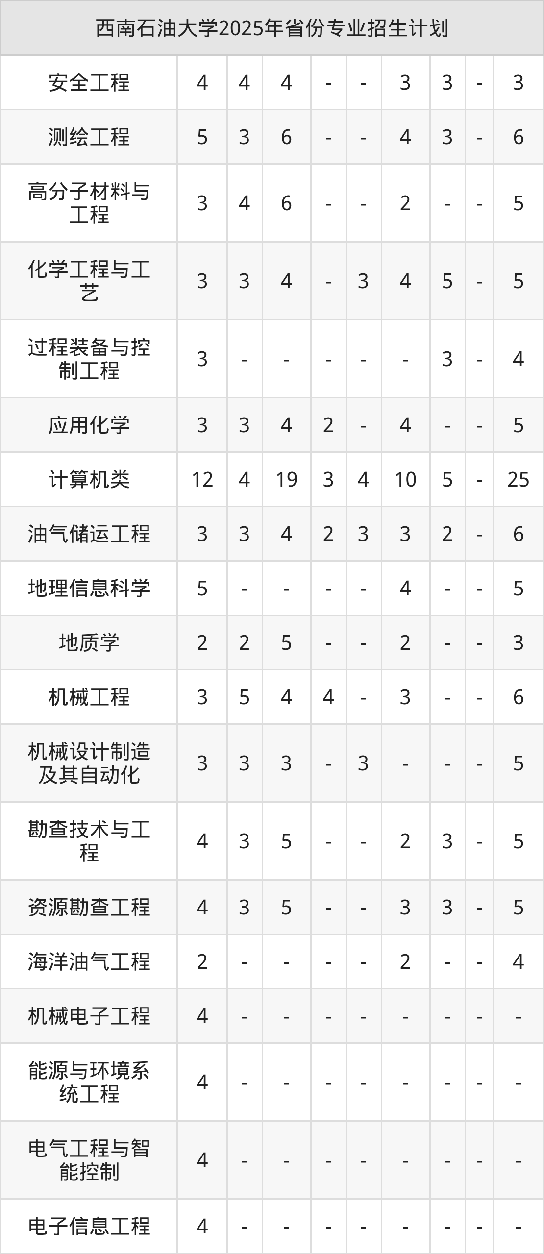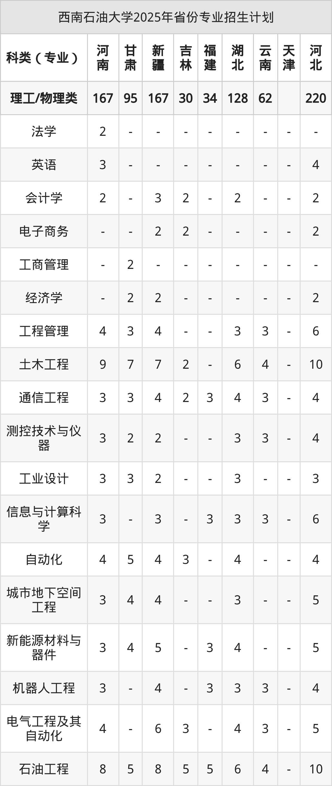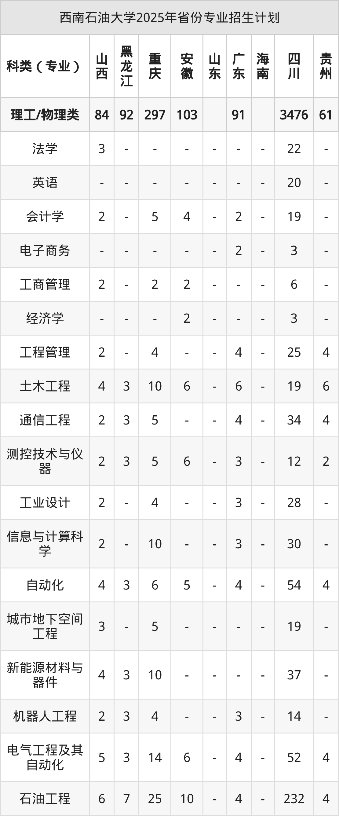 2026年西南石油大学本科招生计划待公布,下面附上2025年数据,暂供参考:
