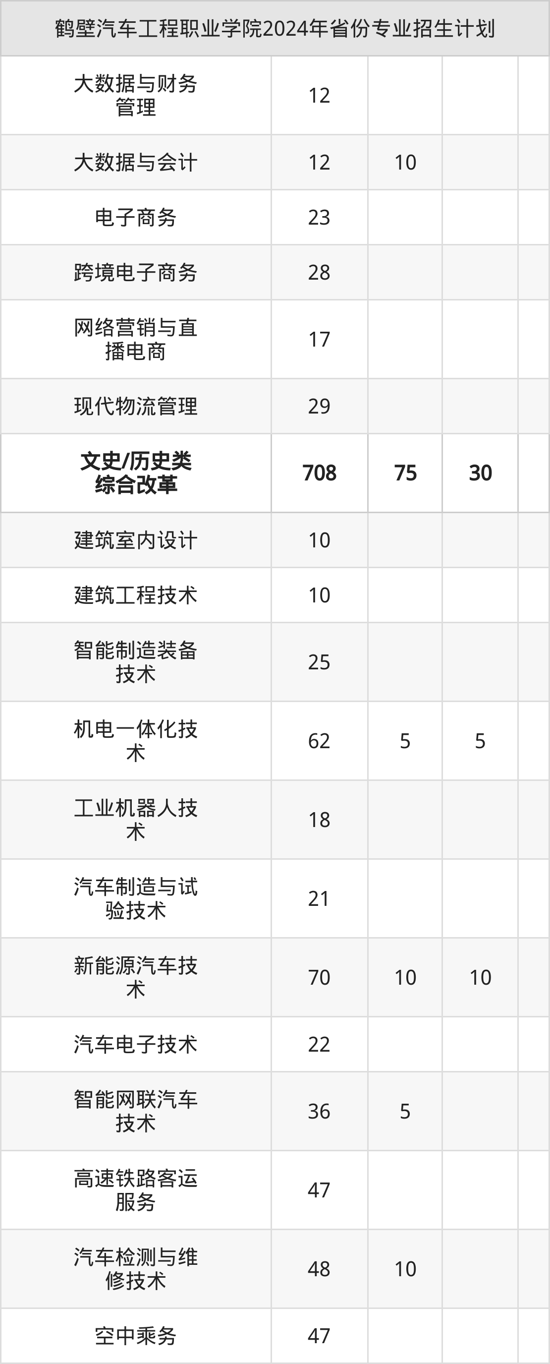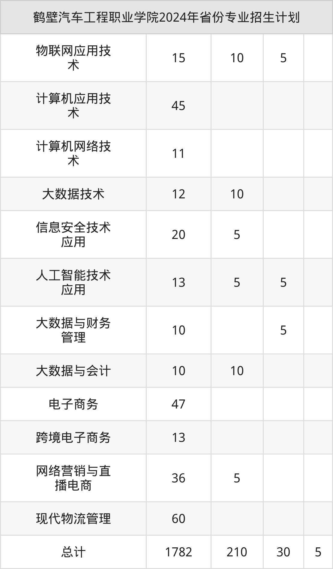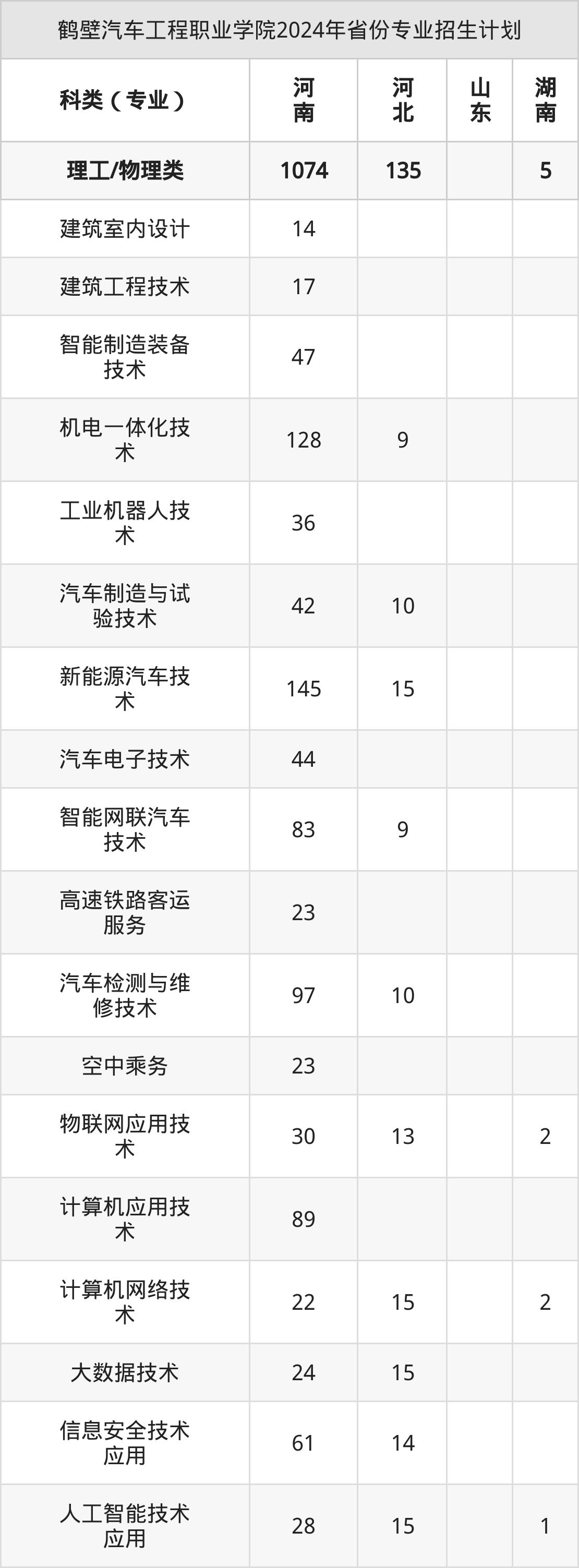 2025年鹤壁汽车工程职业学院专科招生计划待公布,下面附上2024年数据,暂供参考: