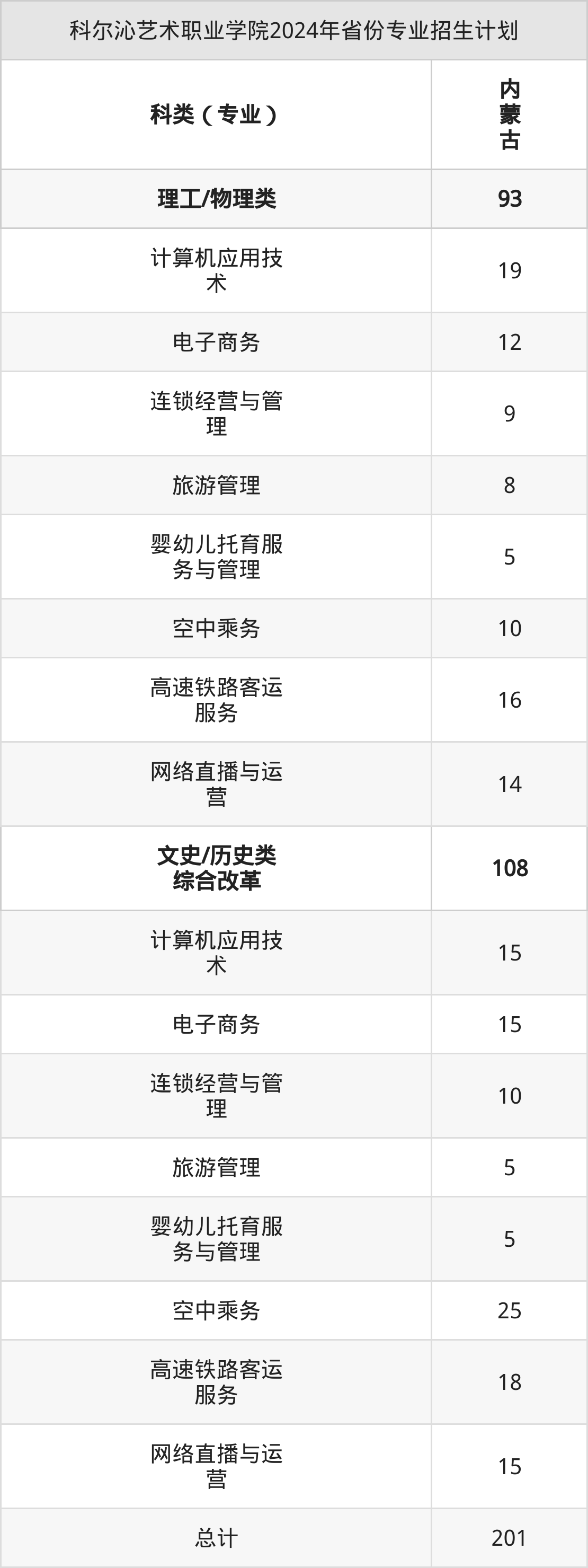 2025年科尔沁艺术职业学院专科招生计划待公布,下面附上2024年数据,暂供参考: