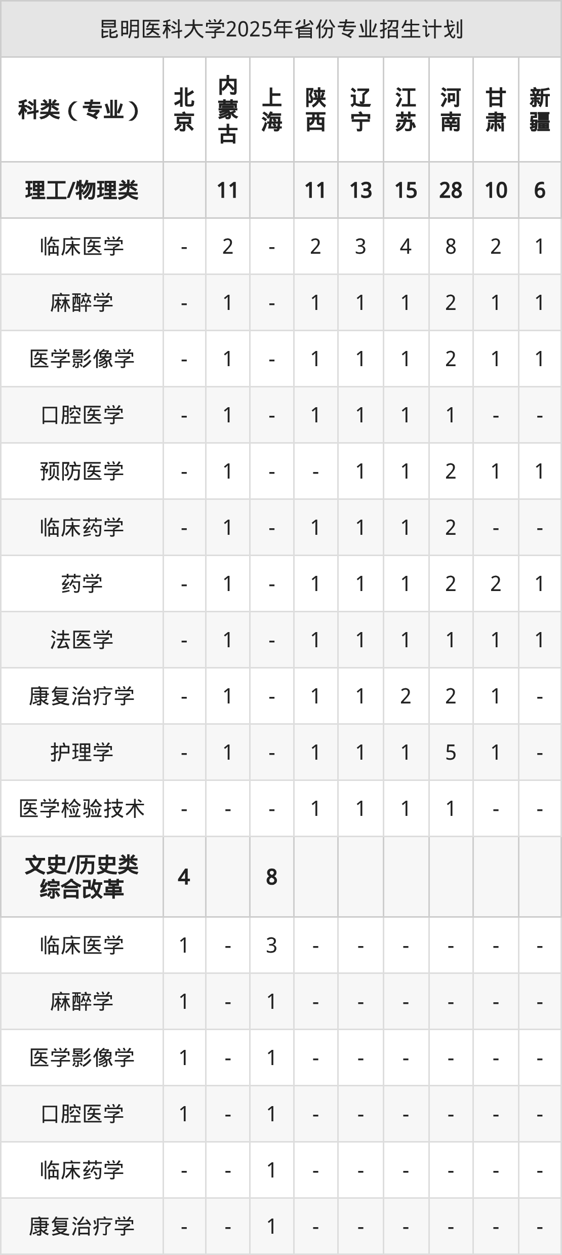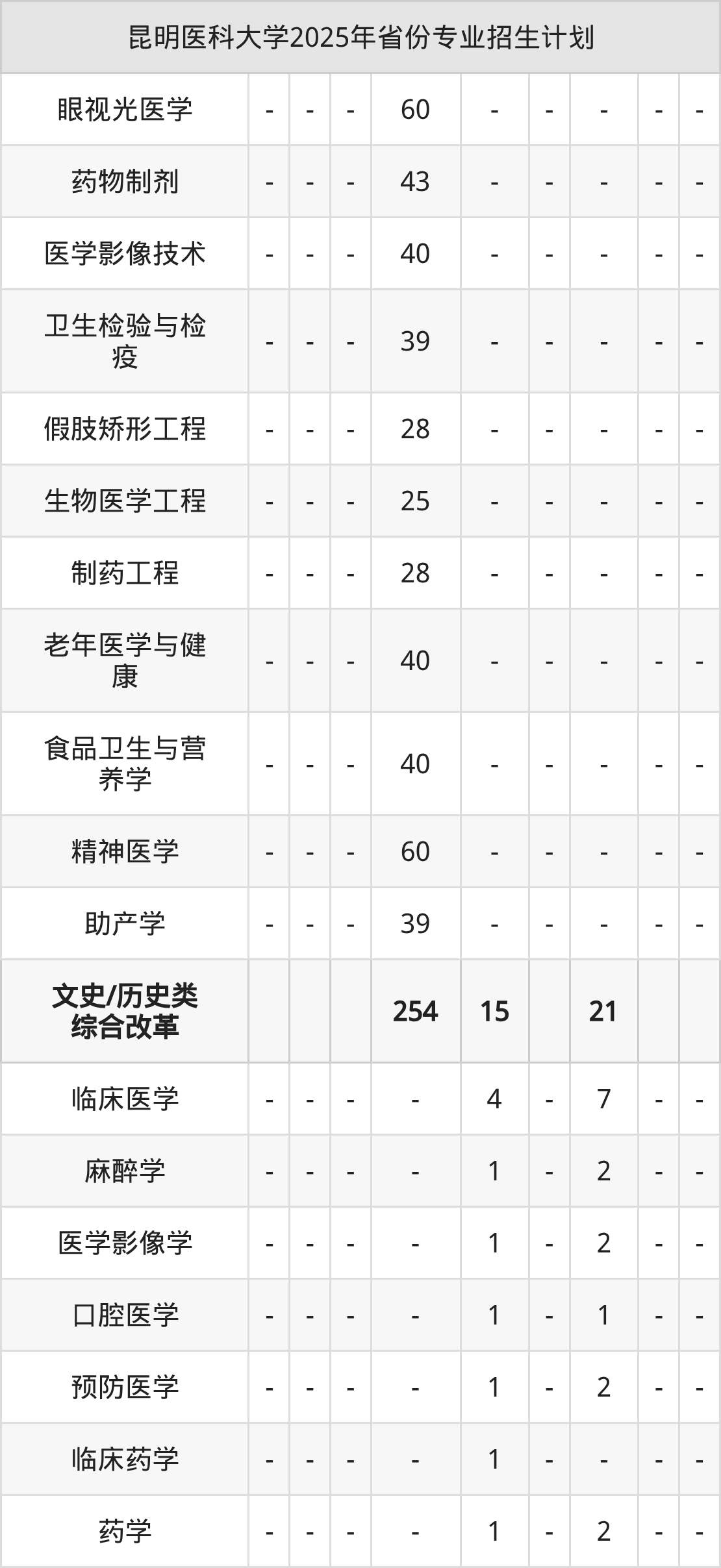 2026年昆明医科大学本科招生计划待公布,下面附上2025年数据,暂供参考: