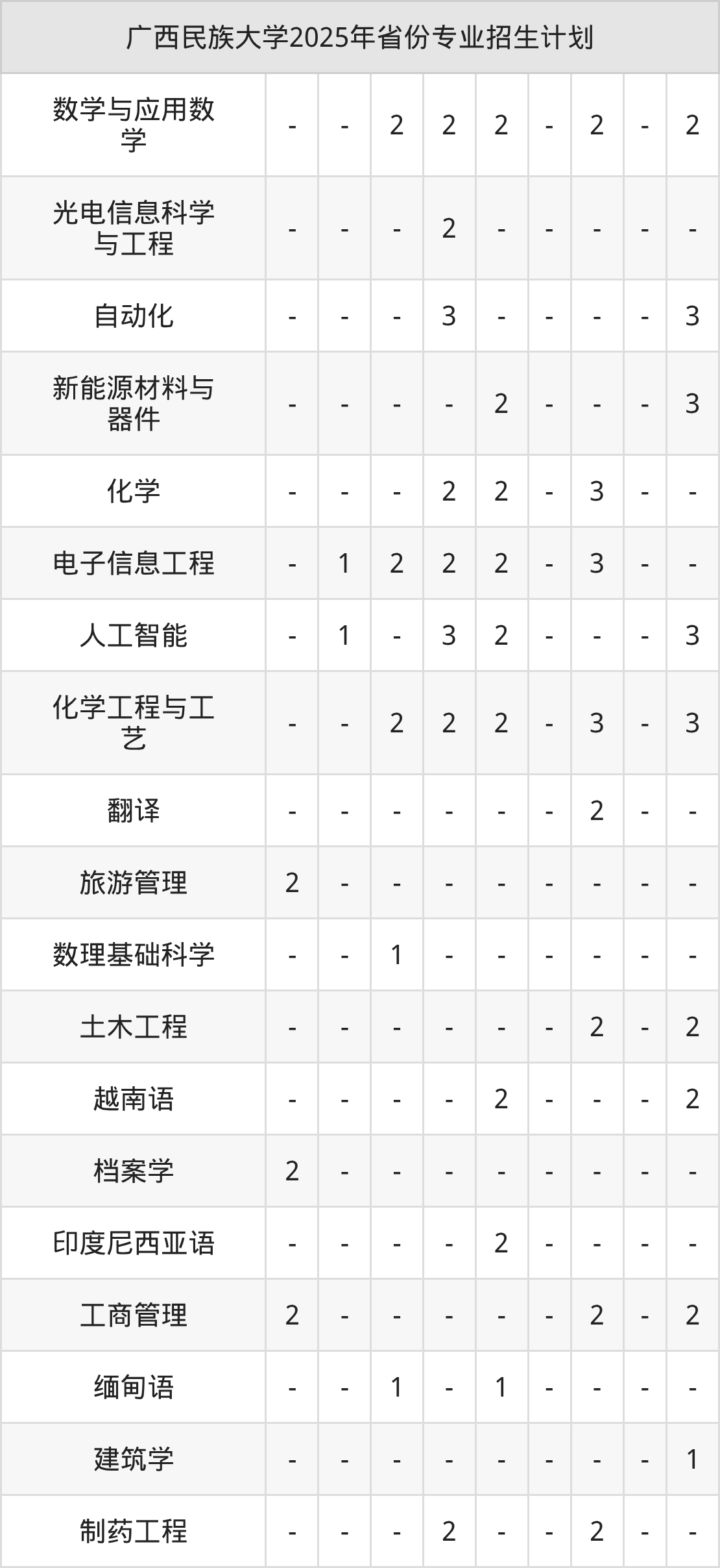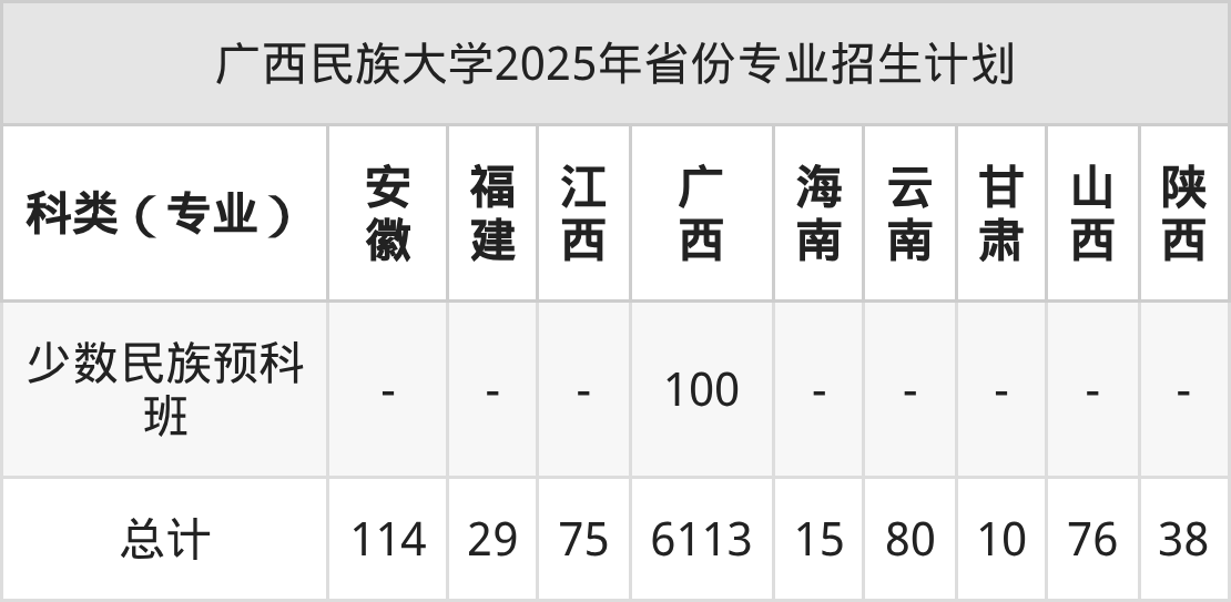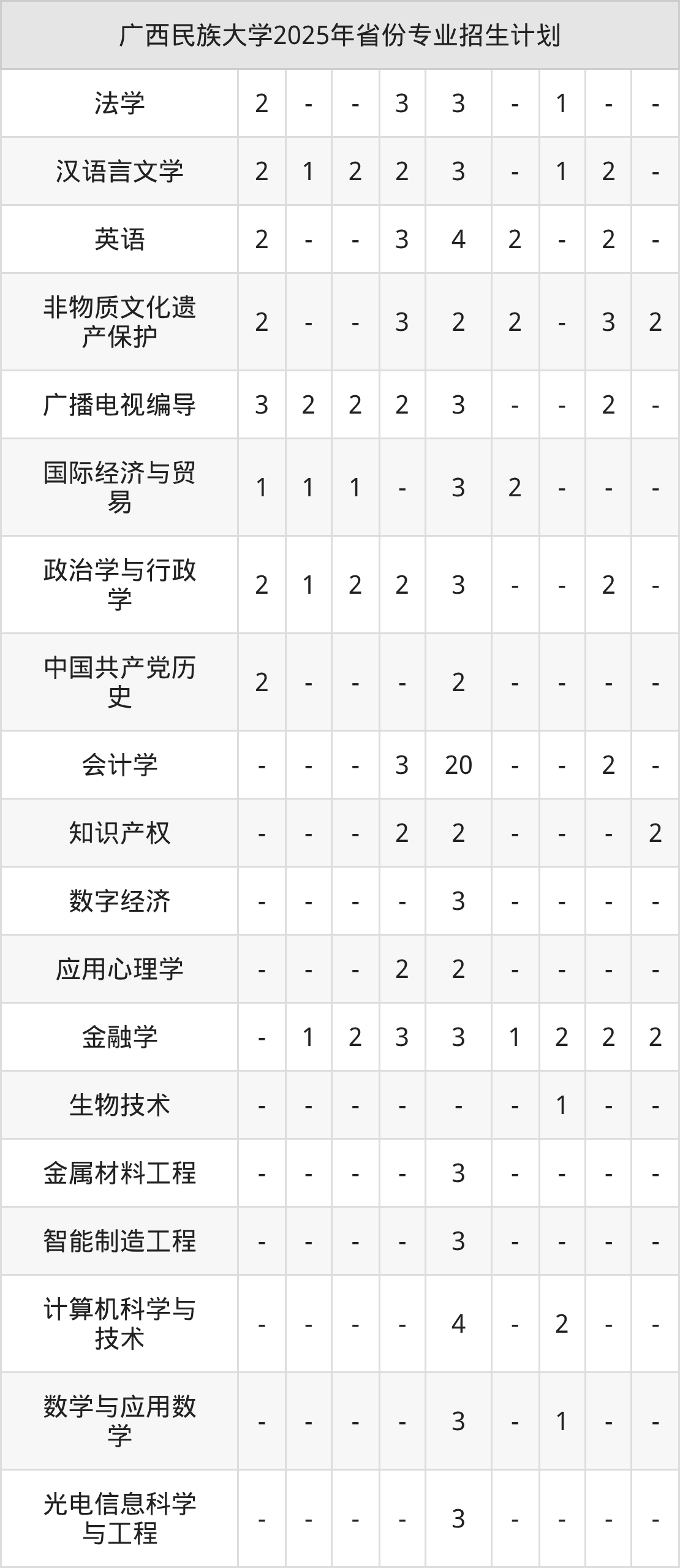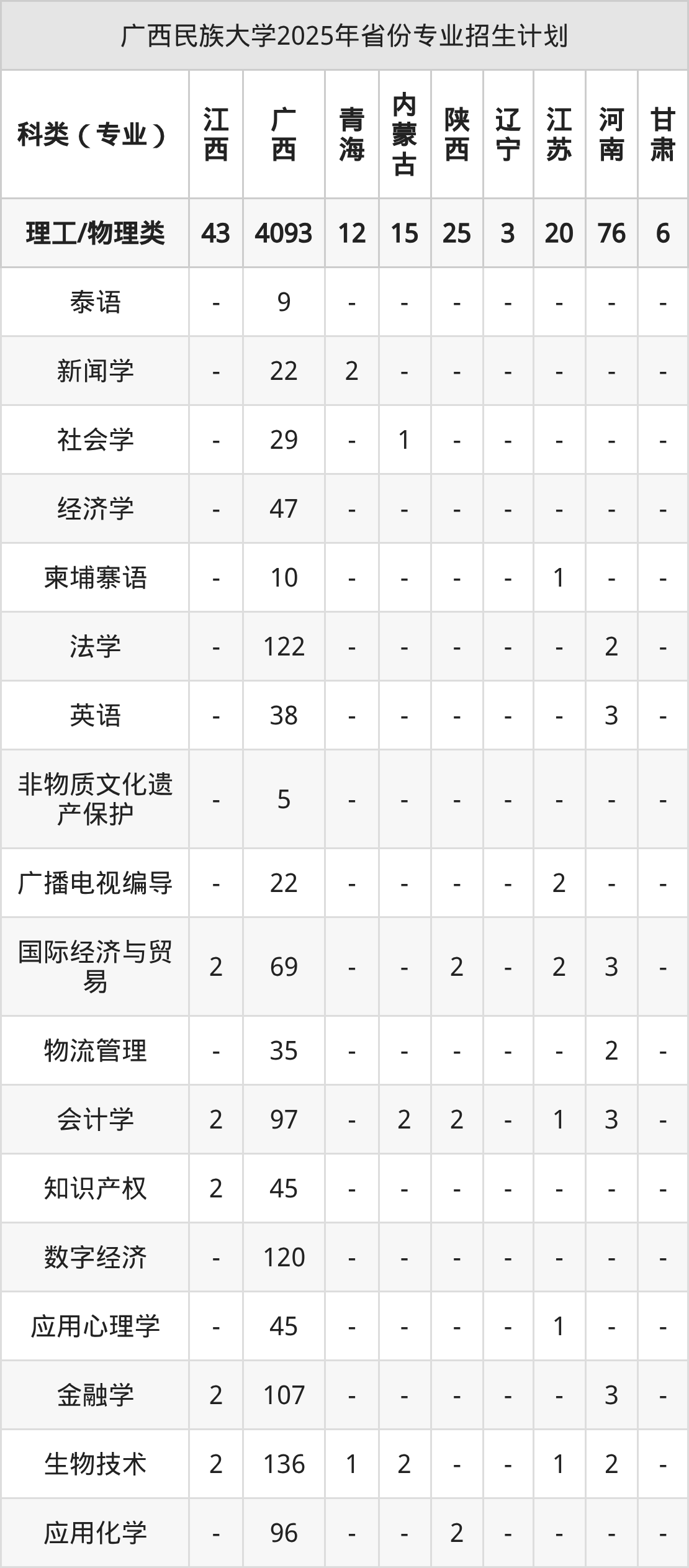 2026年广西民族大学本科招生计划待公布,下面附上2025年数据,暂供参考: