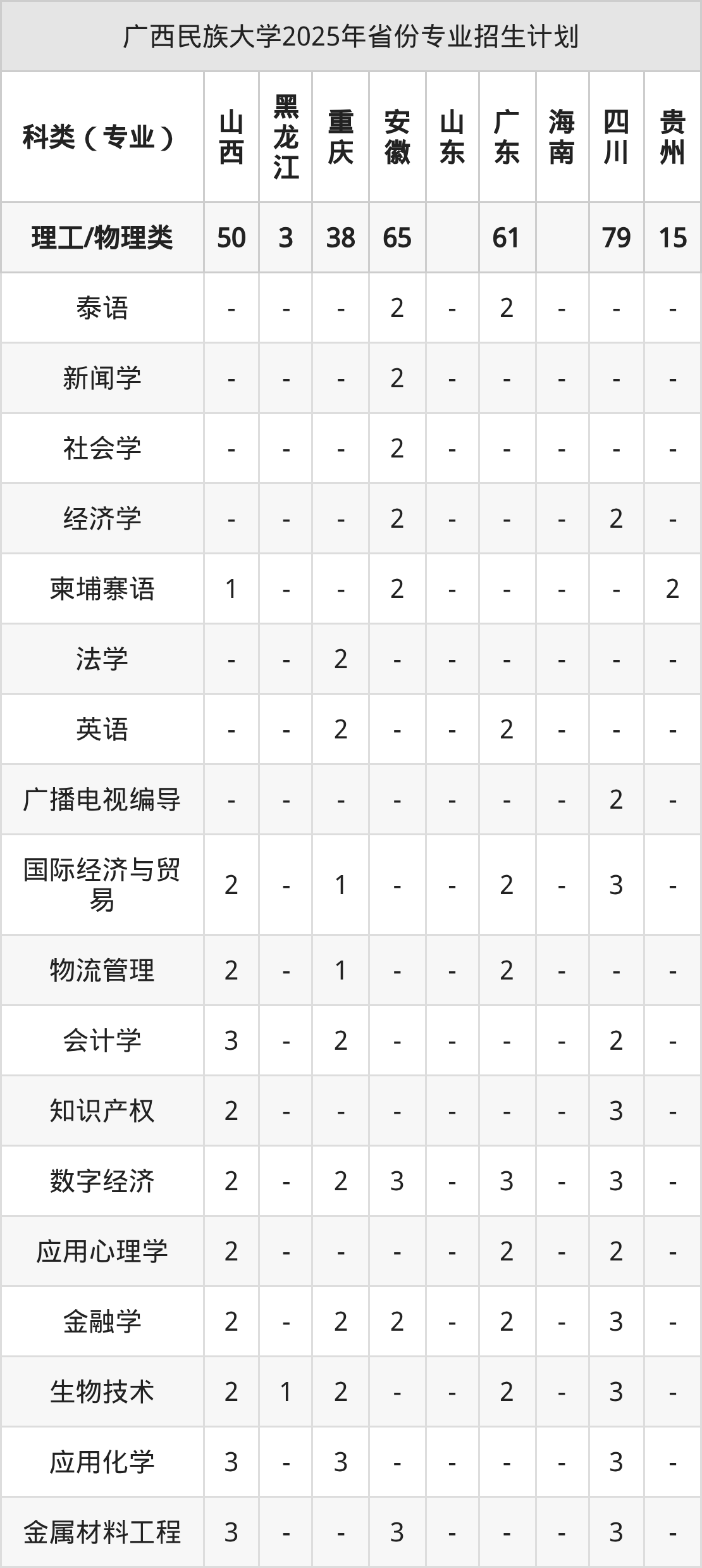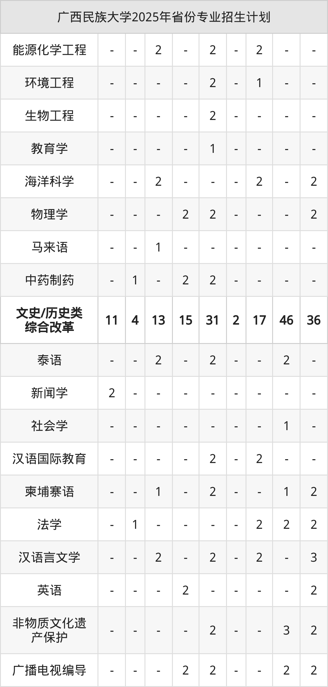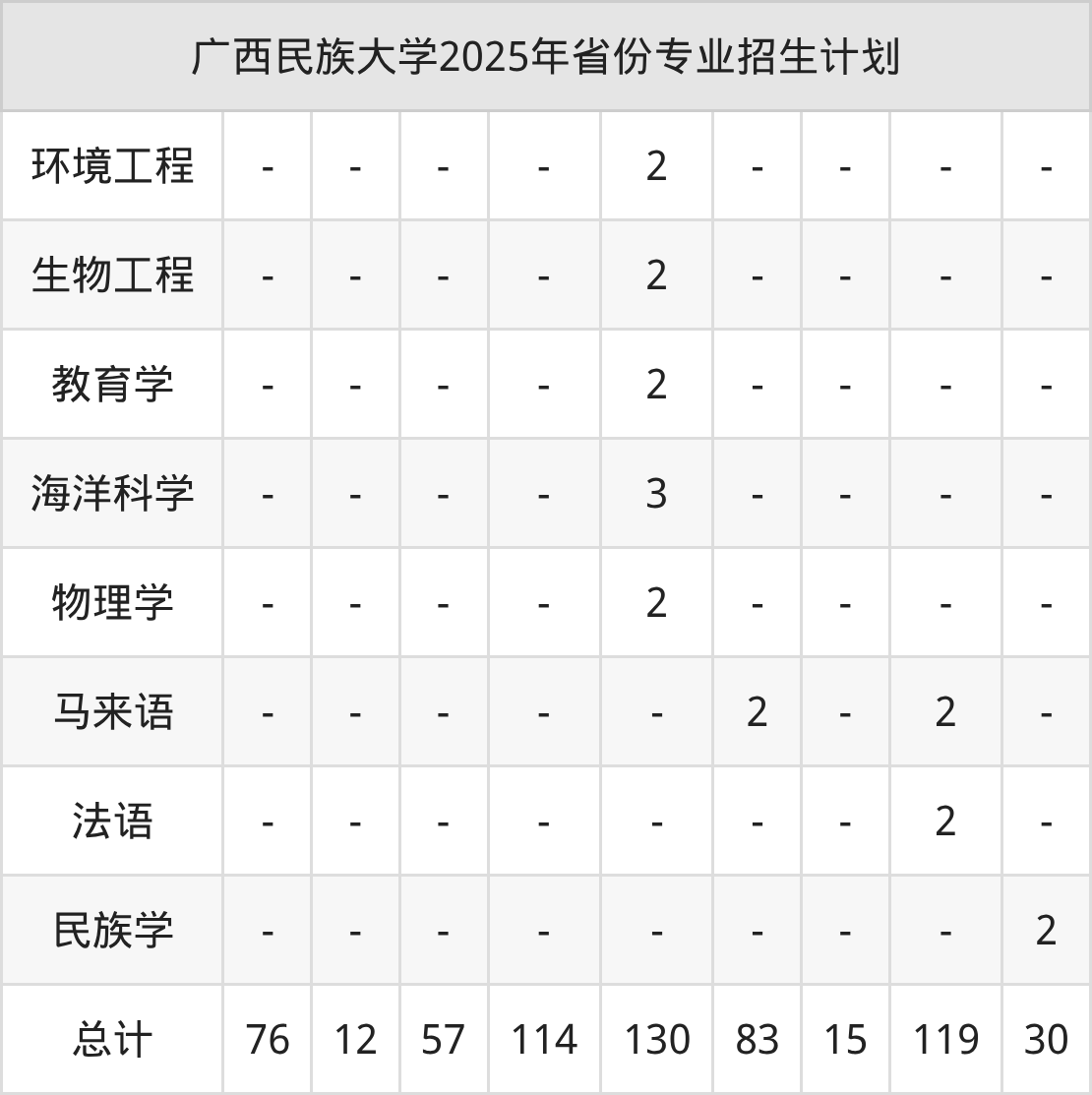 2026年广西民族大学本科招生计划待公布,下面附上2025年数据,暂供参考: