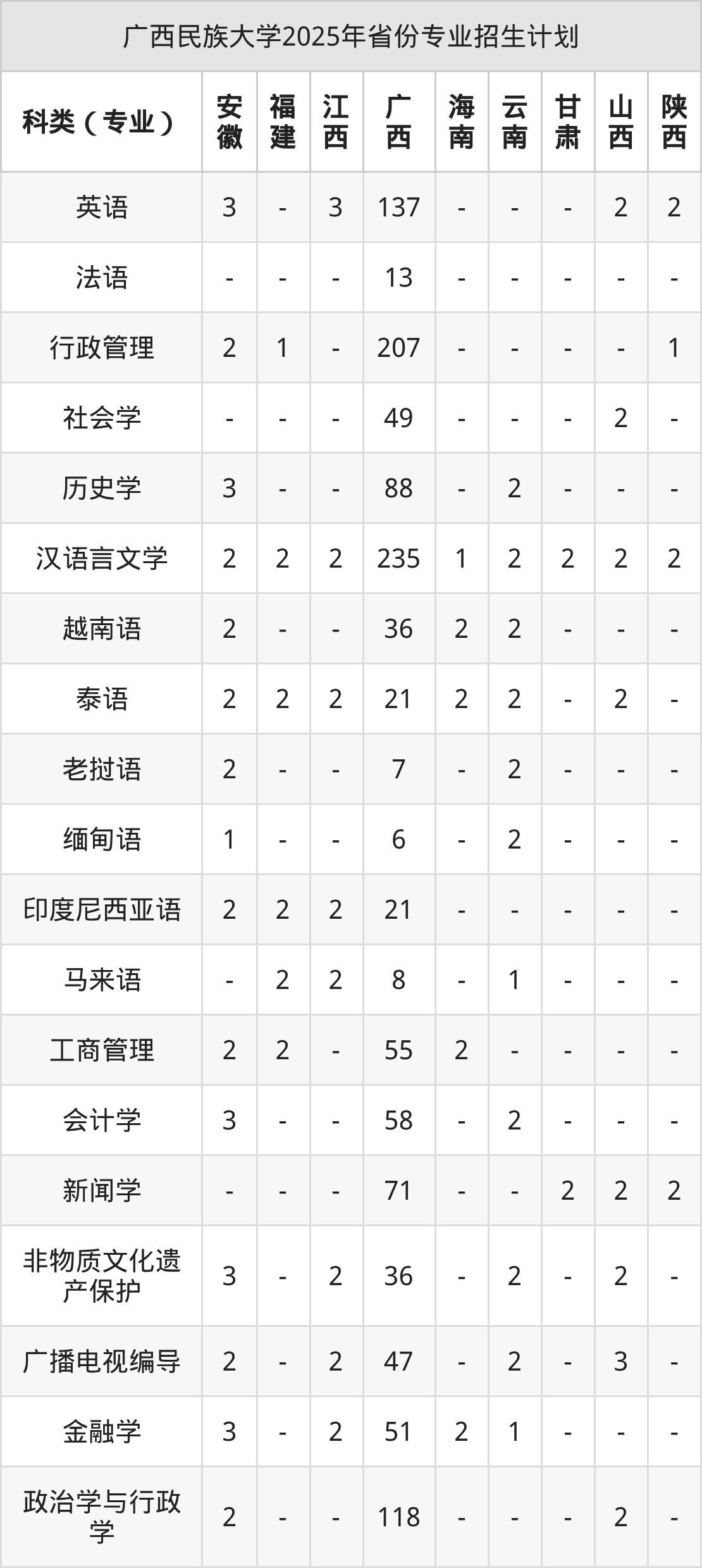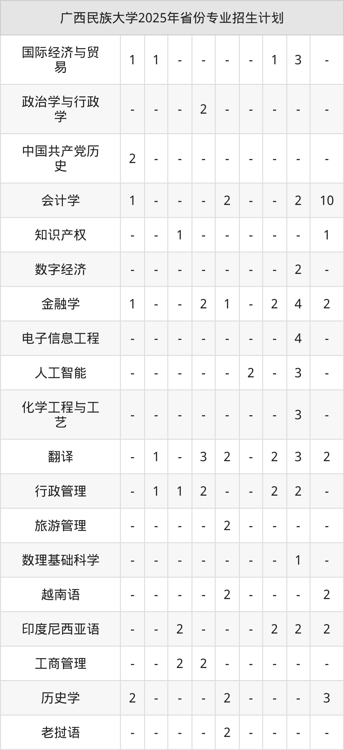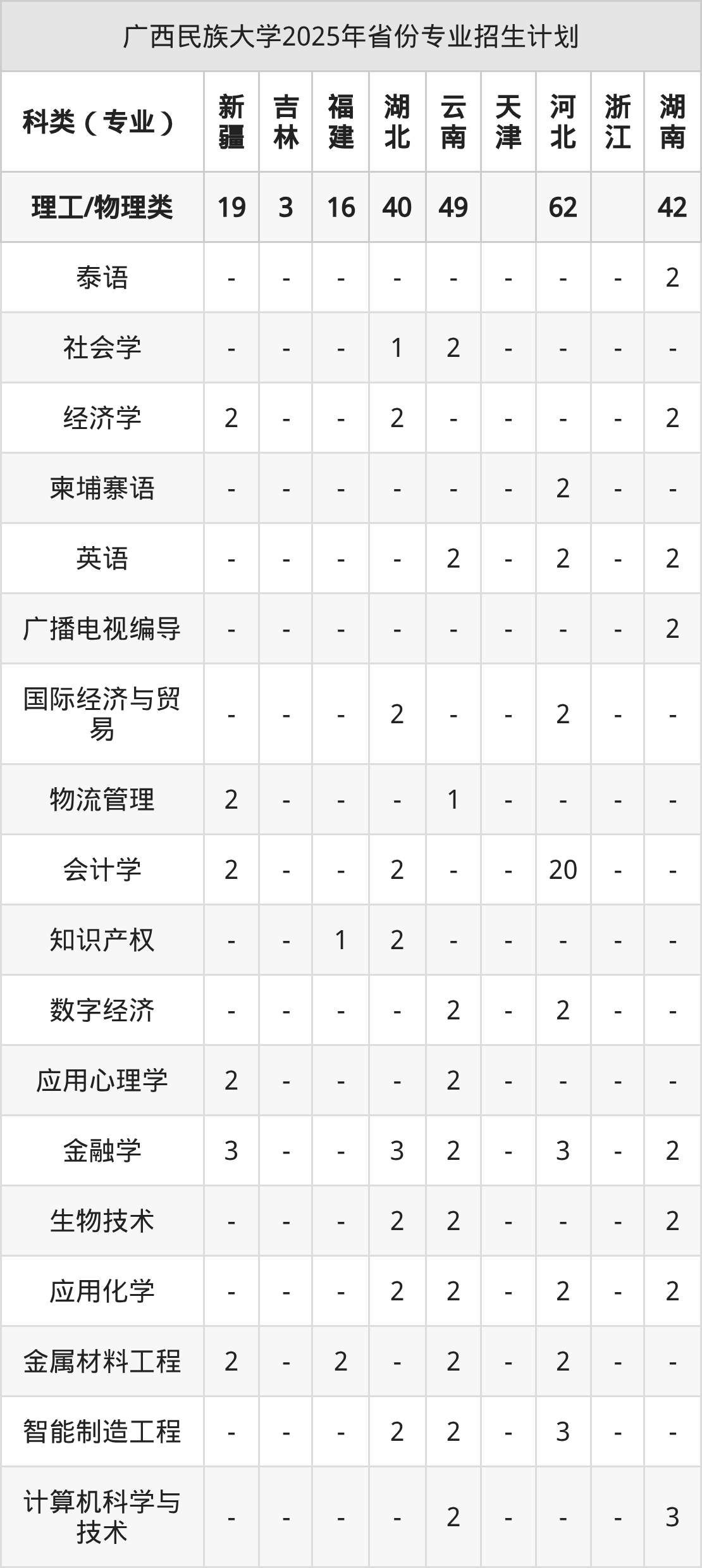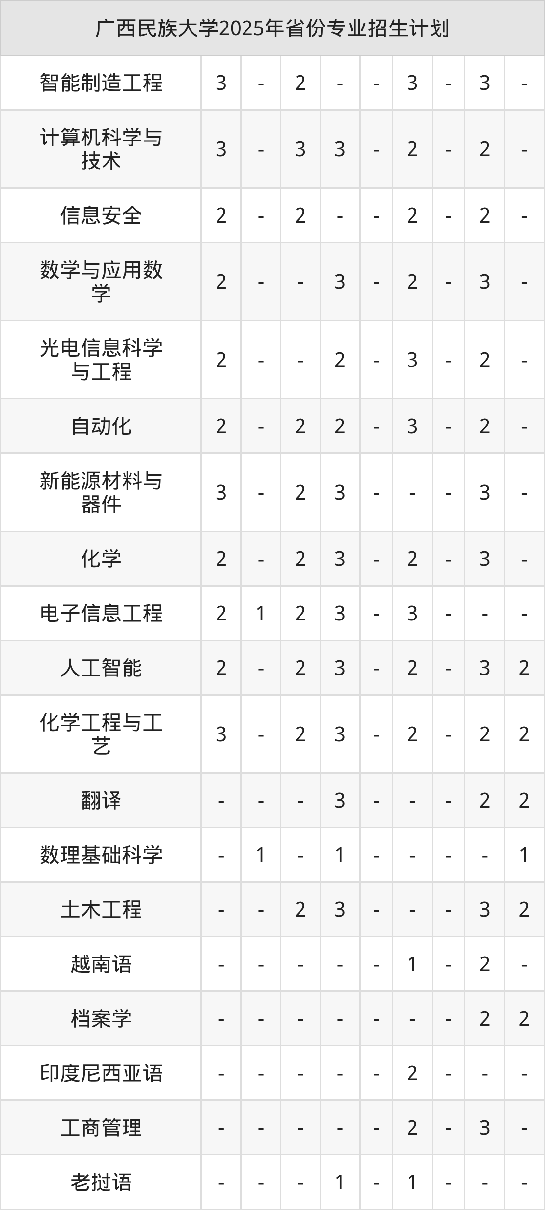 2026年广西民族大学本科招生计划待公布,下面附上2025年数据,暂供参考: