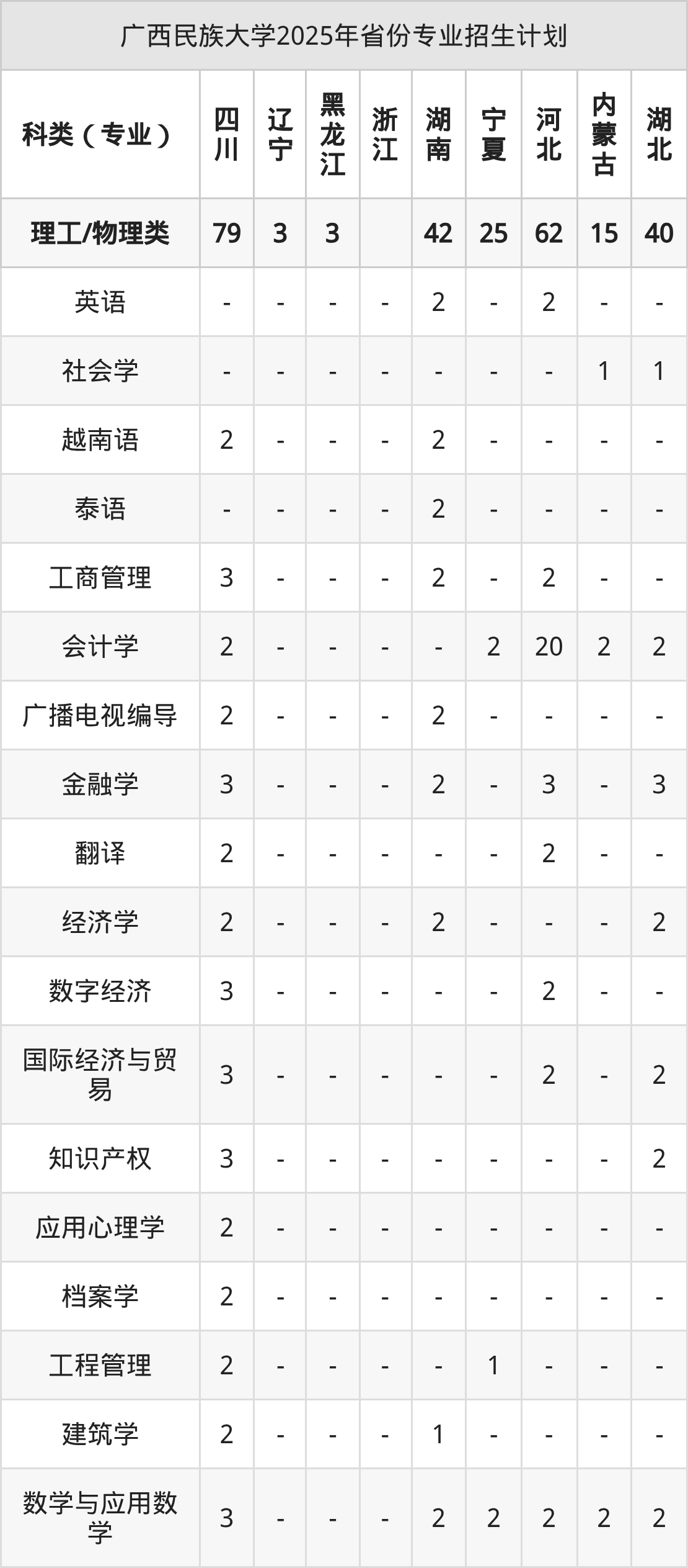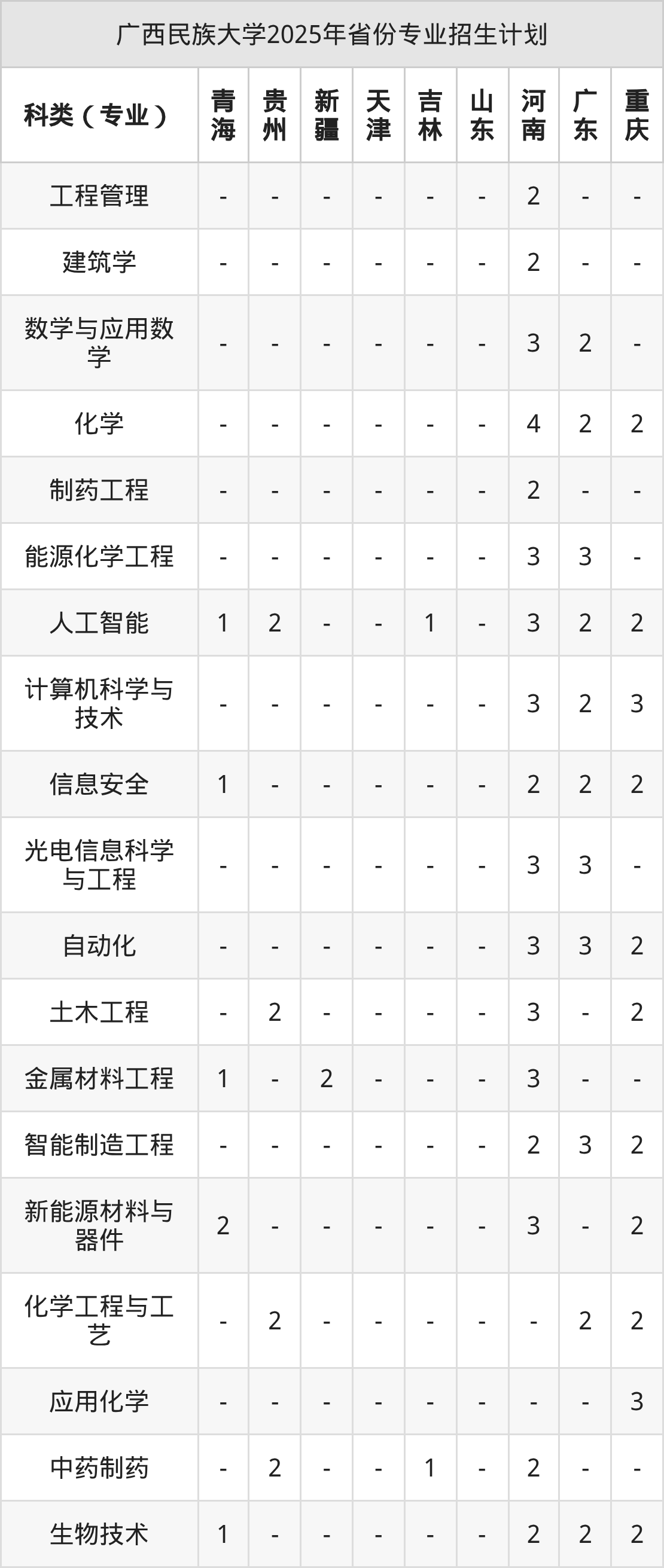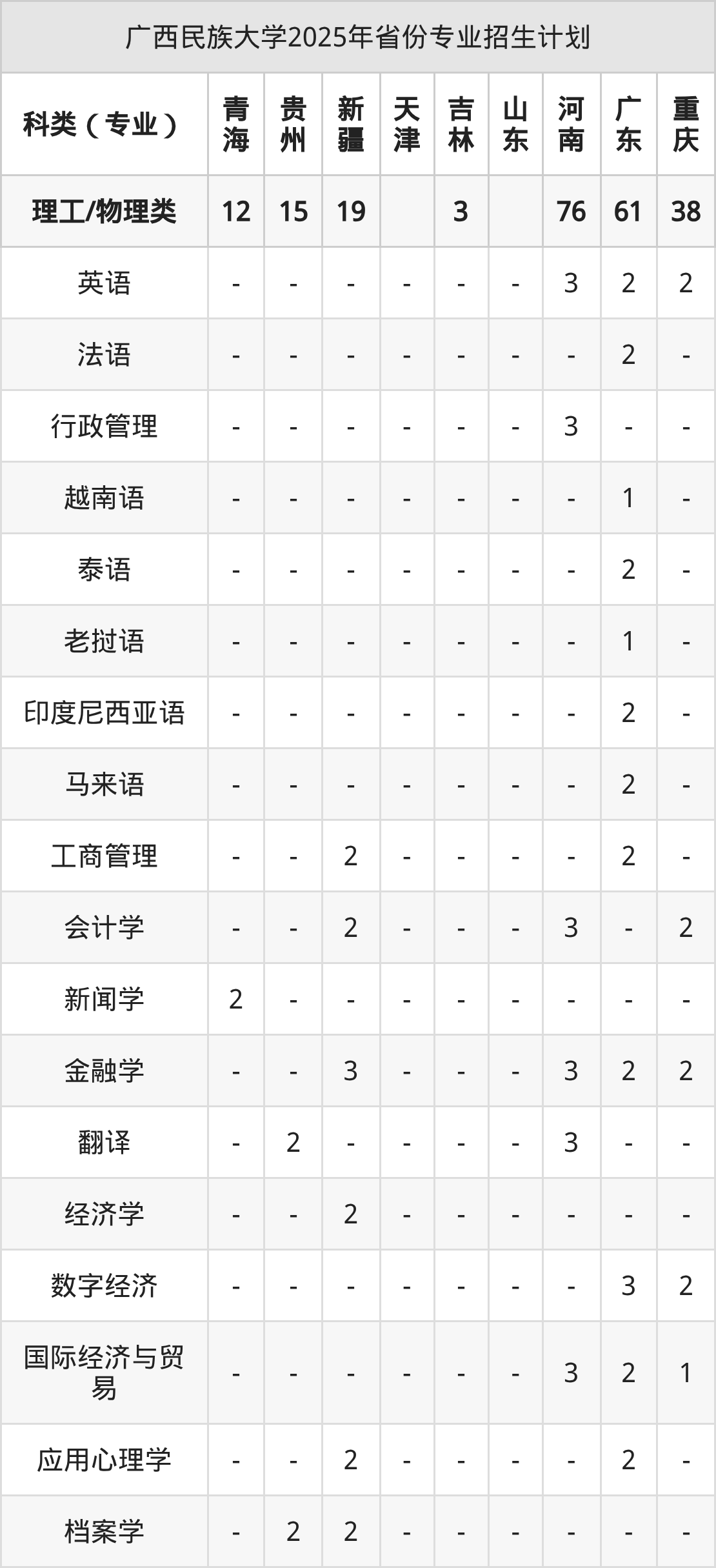 而各省份的招生计划数为山东130人,广东83人,福建29人,广西6113人,青海20人等。
