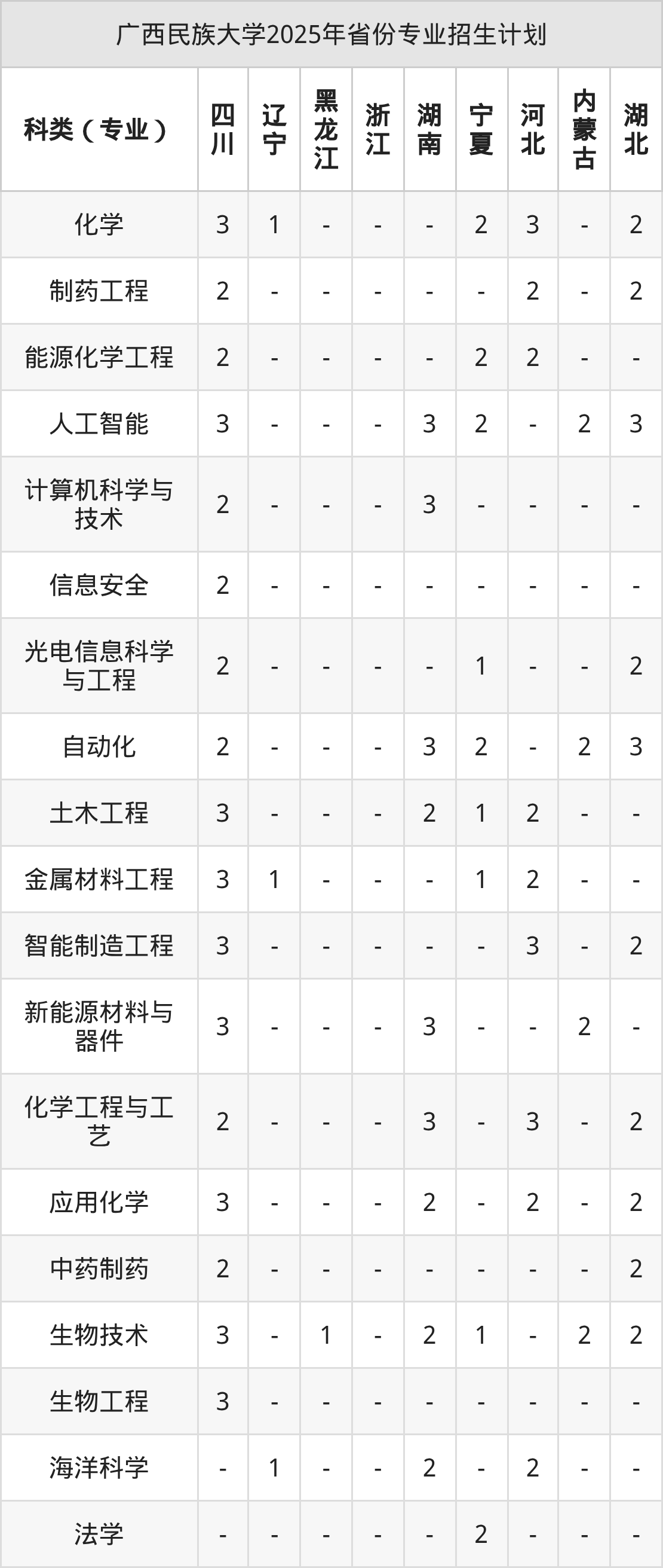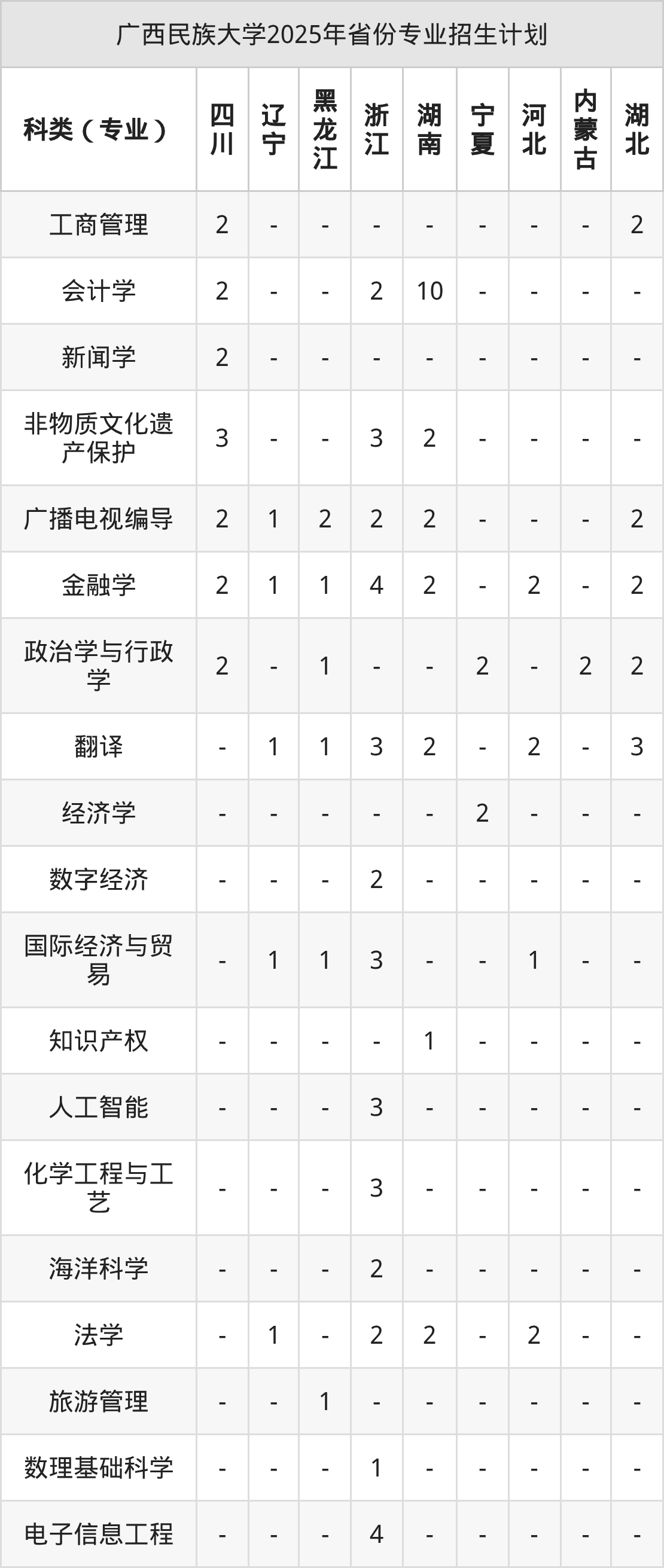 | 广西民族大学本科招生专业 | |