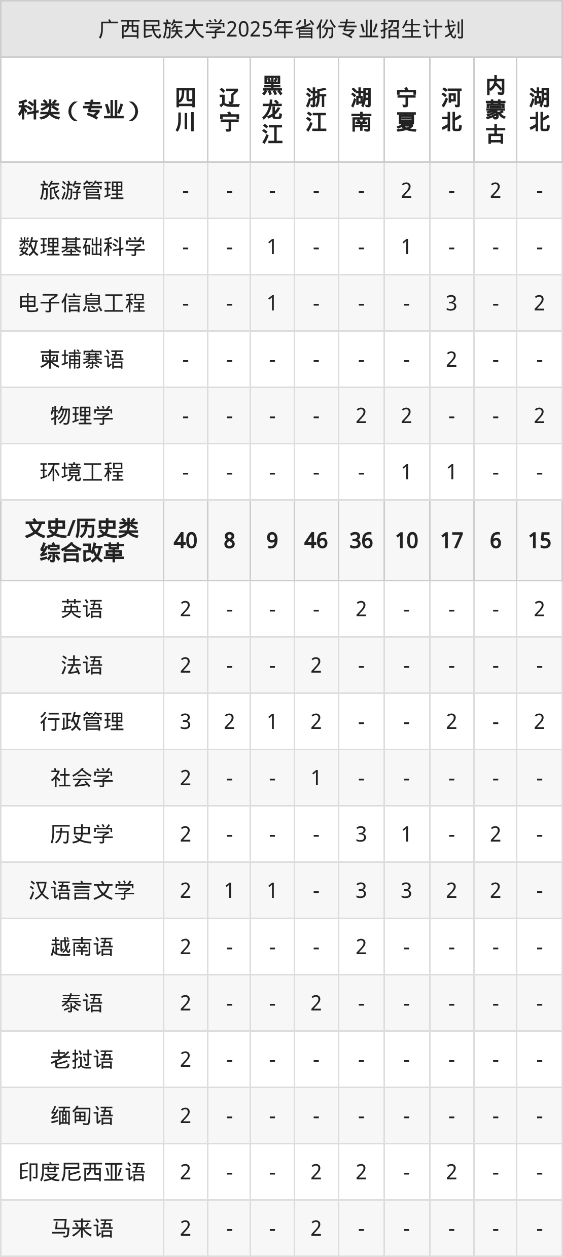 | 省份 | 综合改革/历史类/文史 | |||