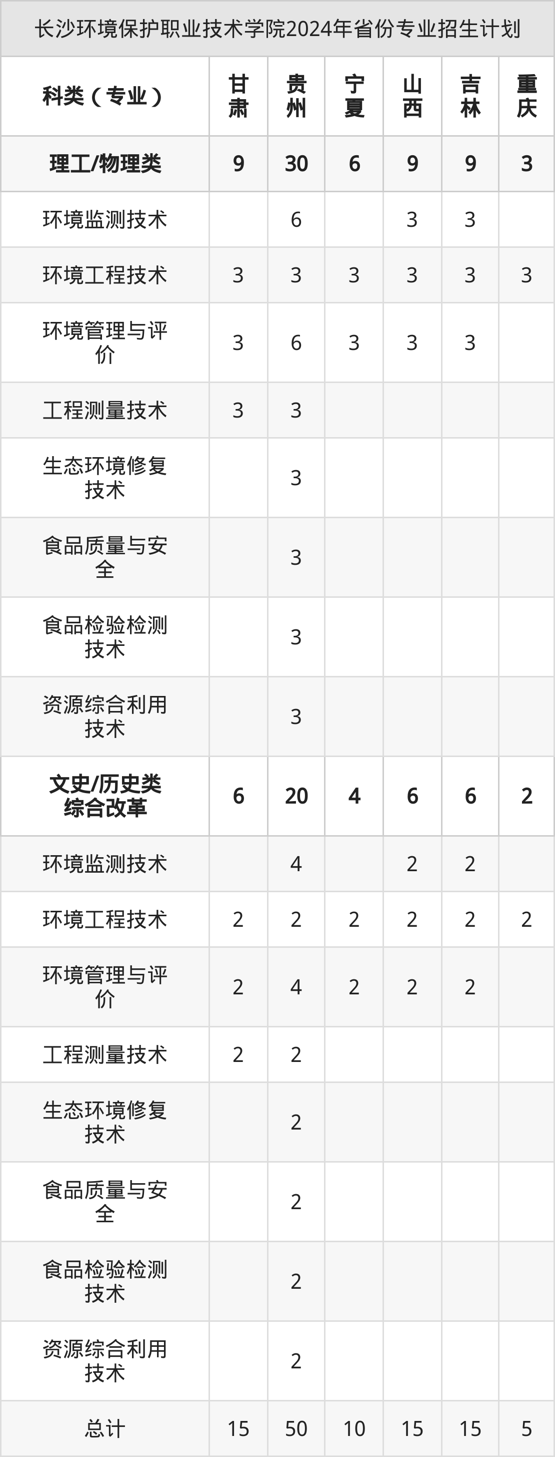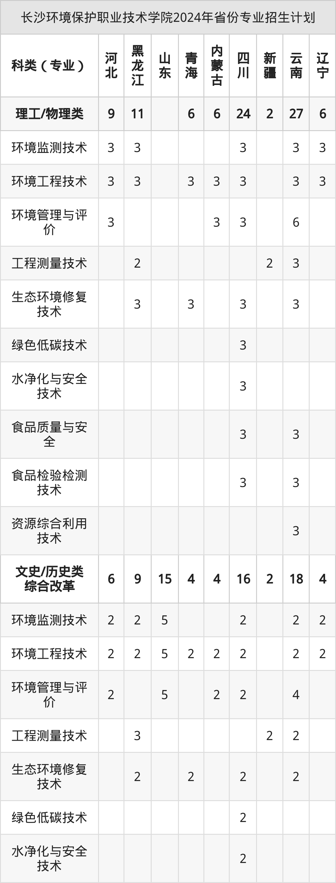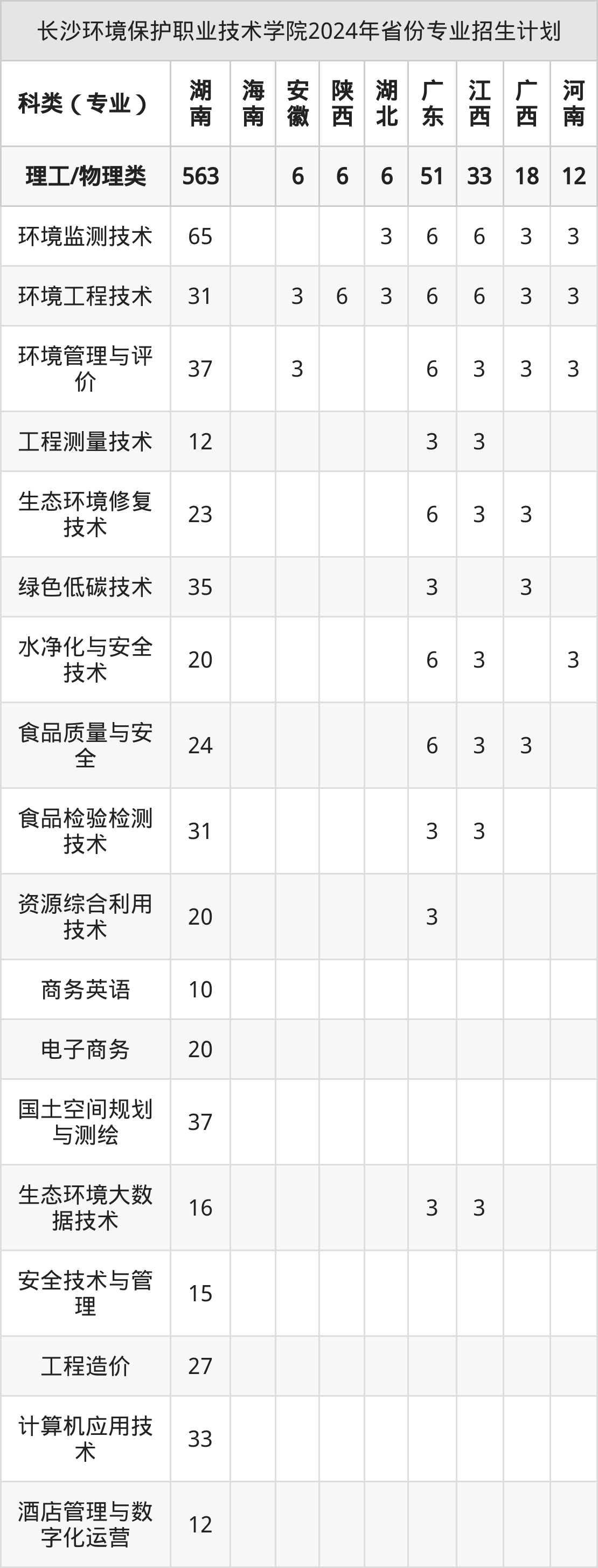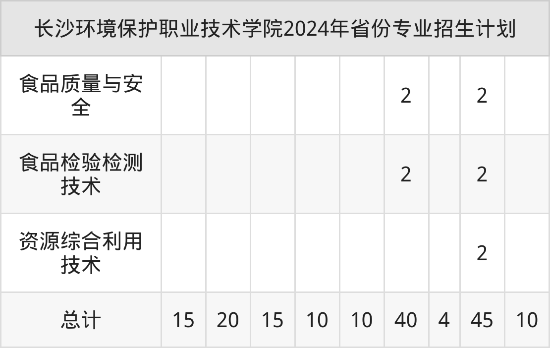 2025年长沙环境保护职业技术学院专科招生计划待公布,下面附上2024年数据,暂供参考: