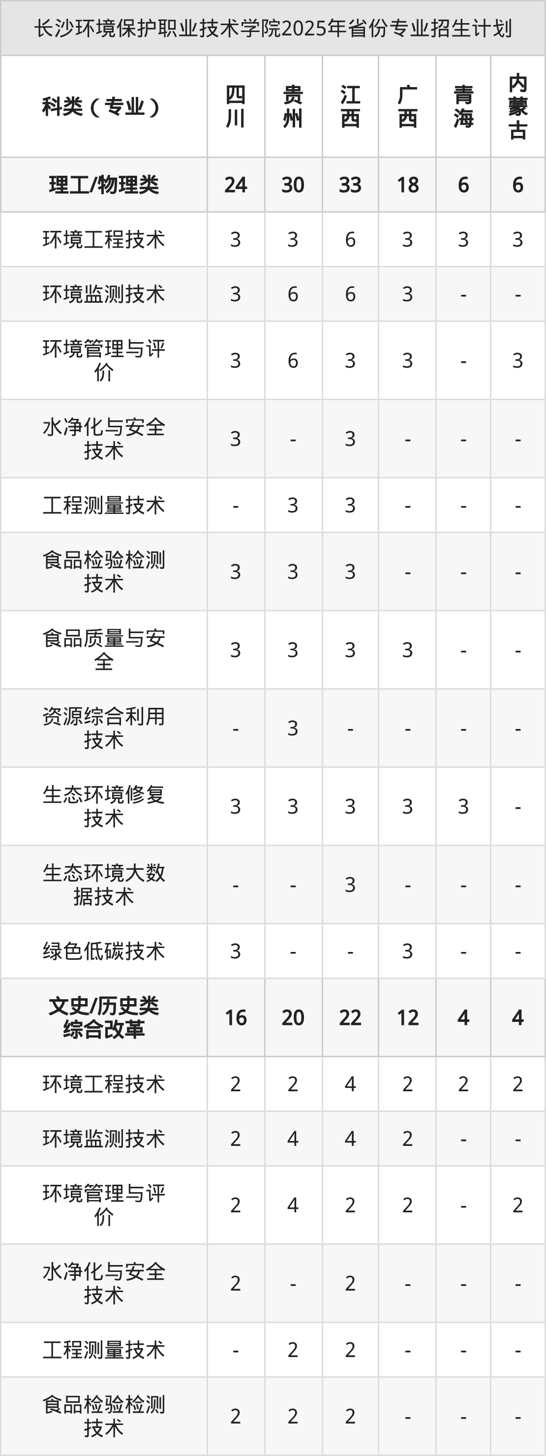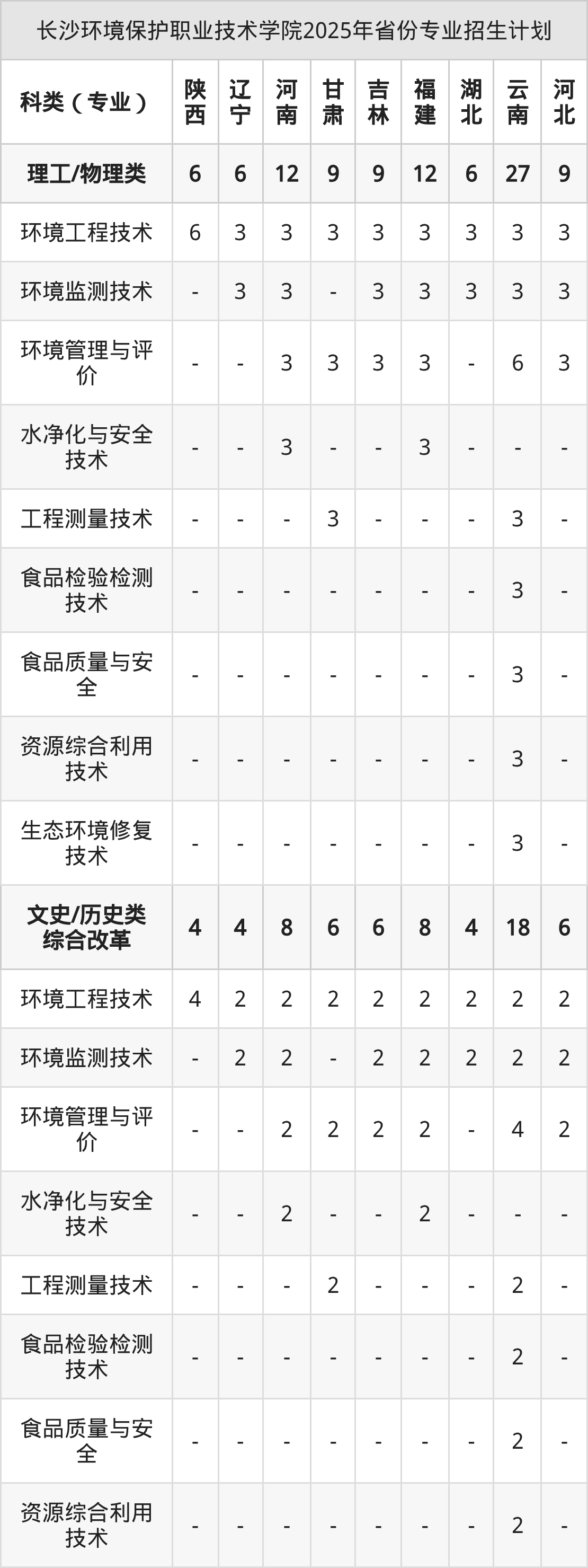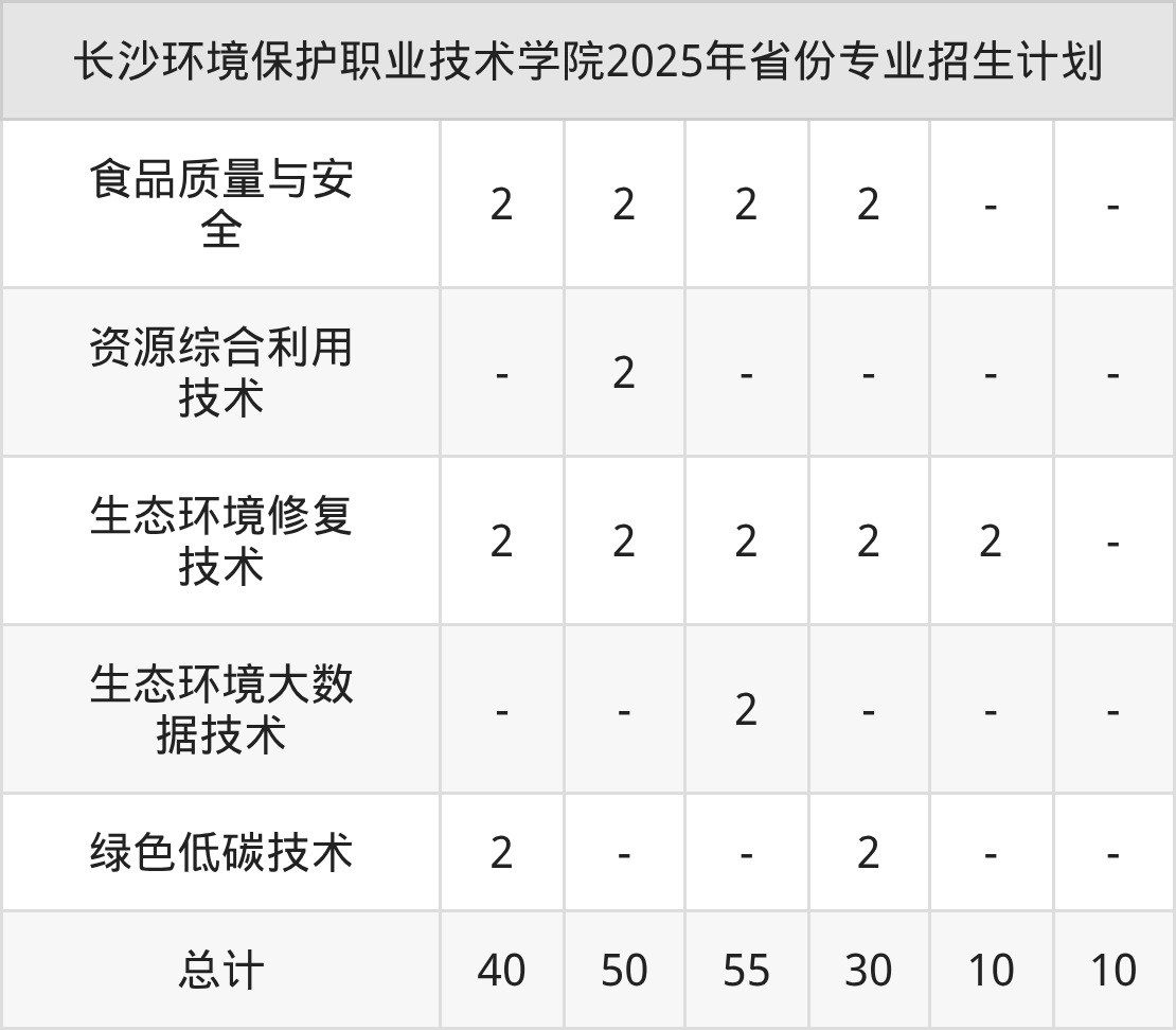 2026年长沙环境保护职业技术学院专科招生计划待公布,下面附上2025年数据,暂供参考: