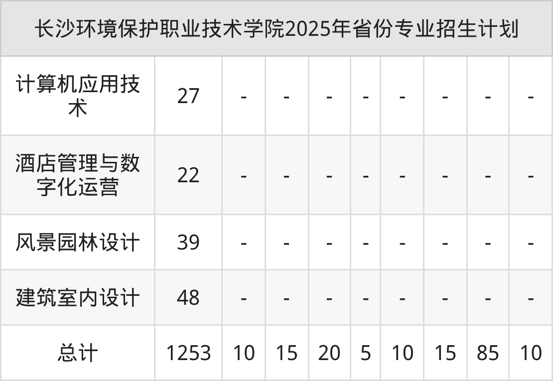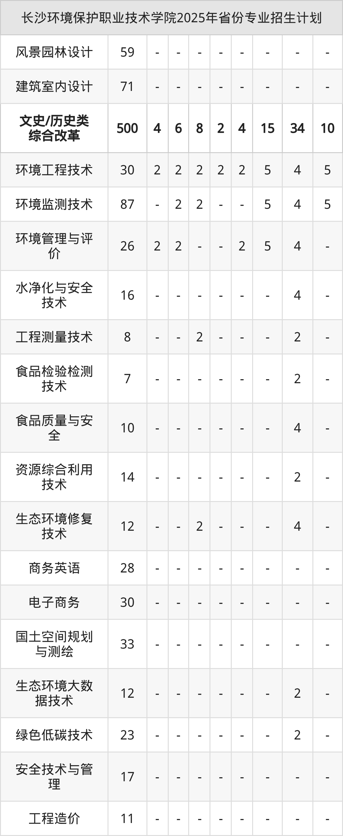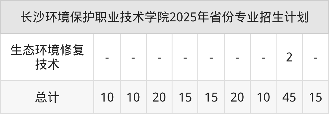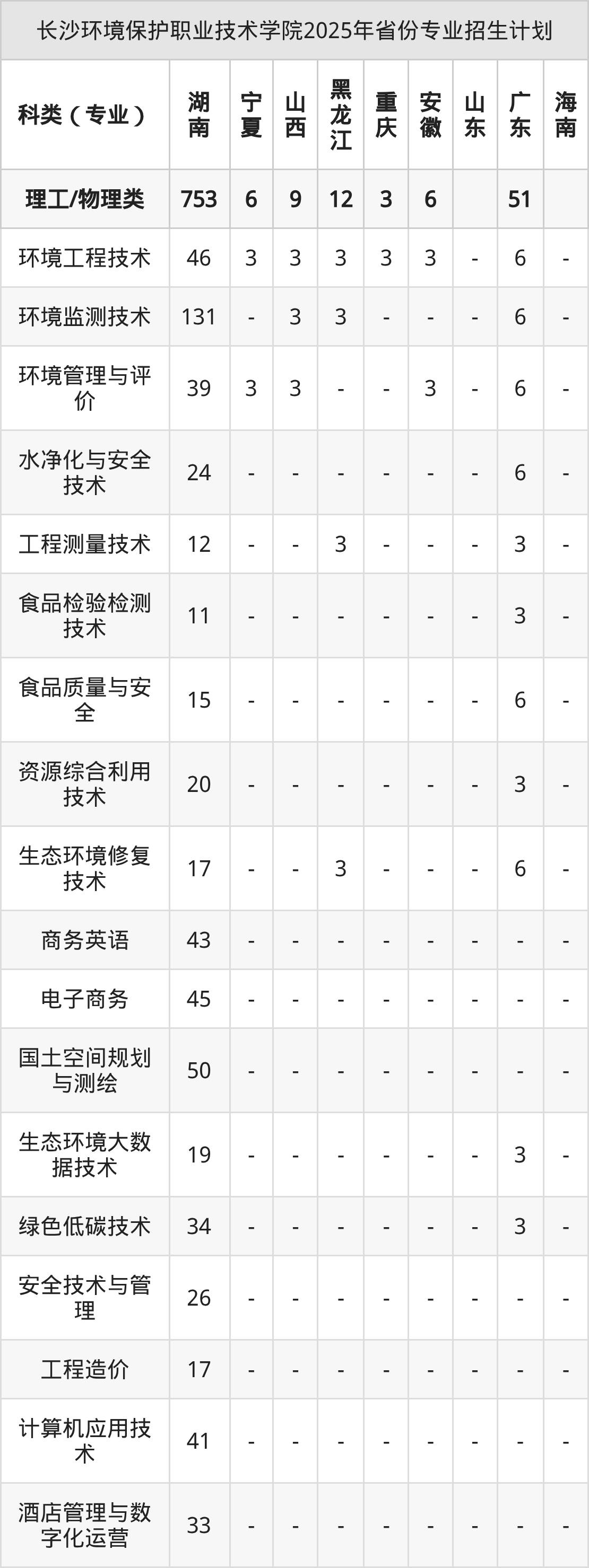 2026年长沙环境保护职业技术学院专科招生计划待公布,下面附上2025年数据,暂供参考: