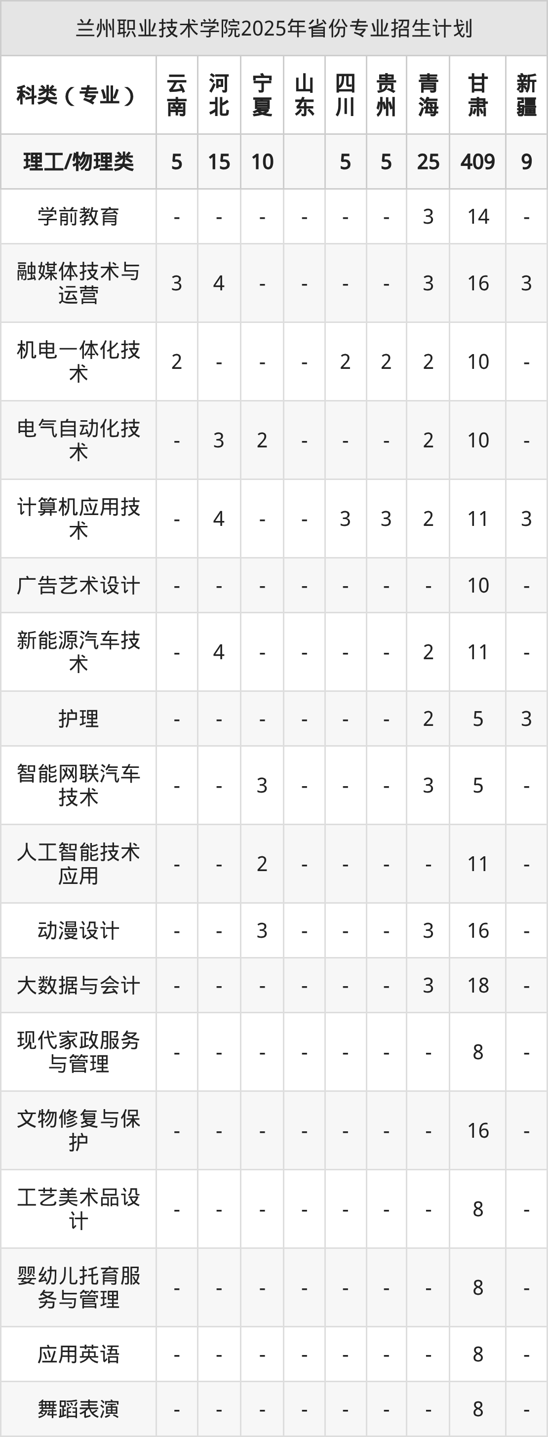 2026年兰州职业技术学院专科招生计划待公布,下面附上2025年数据,暂供参考: