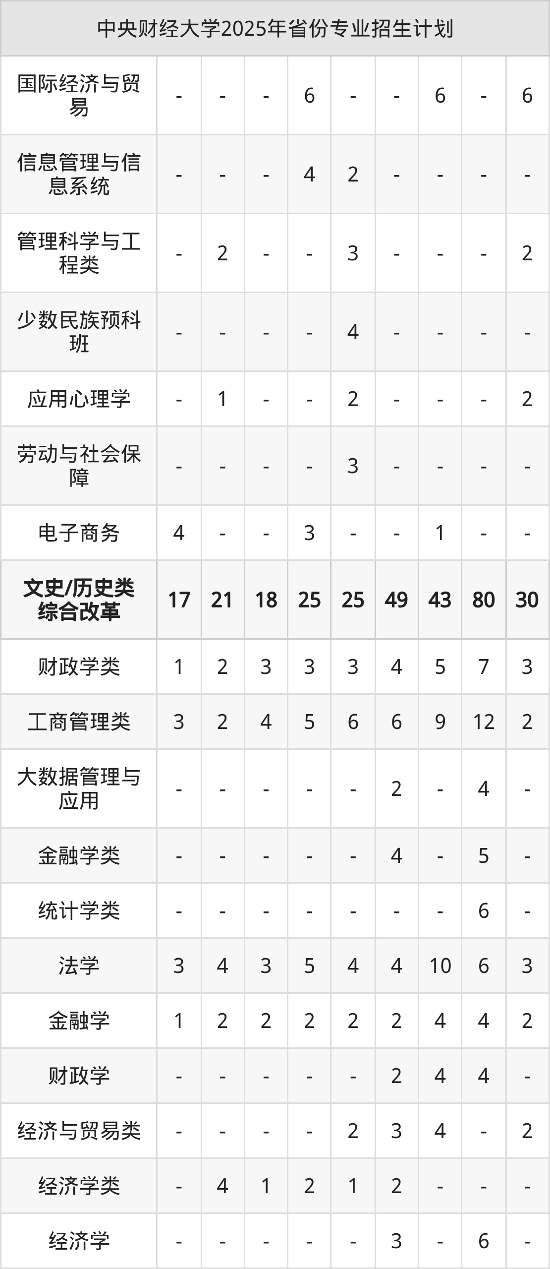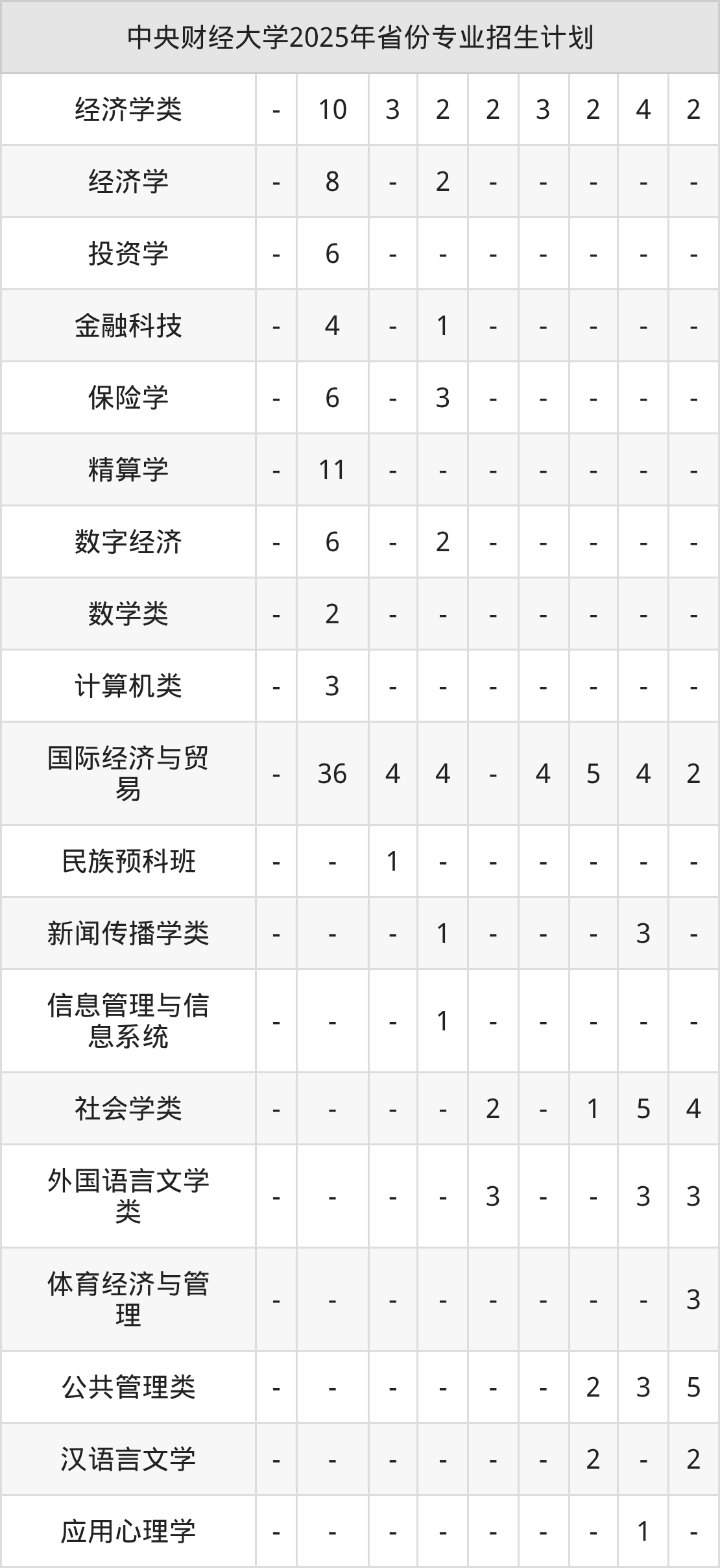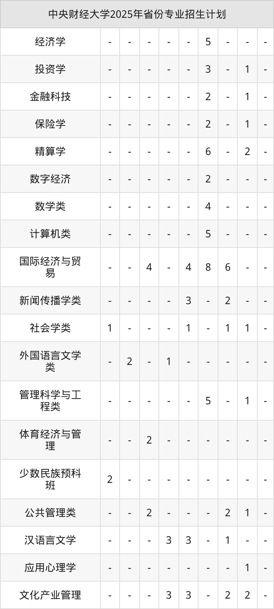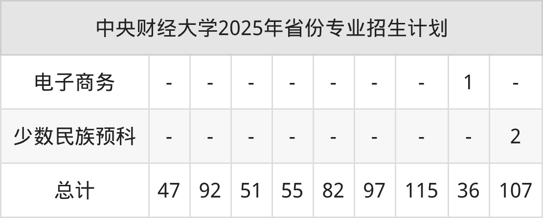 2026年中央财经大学本科招生计划待公布,下面附上2025年数据,暂供参考: