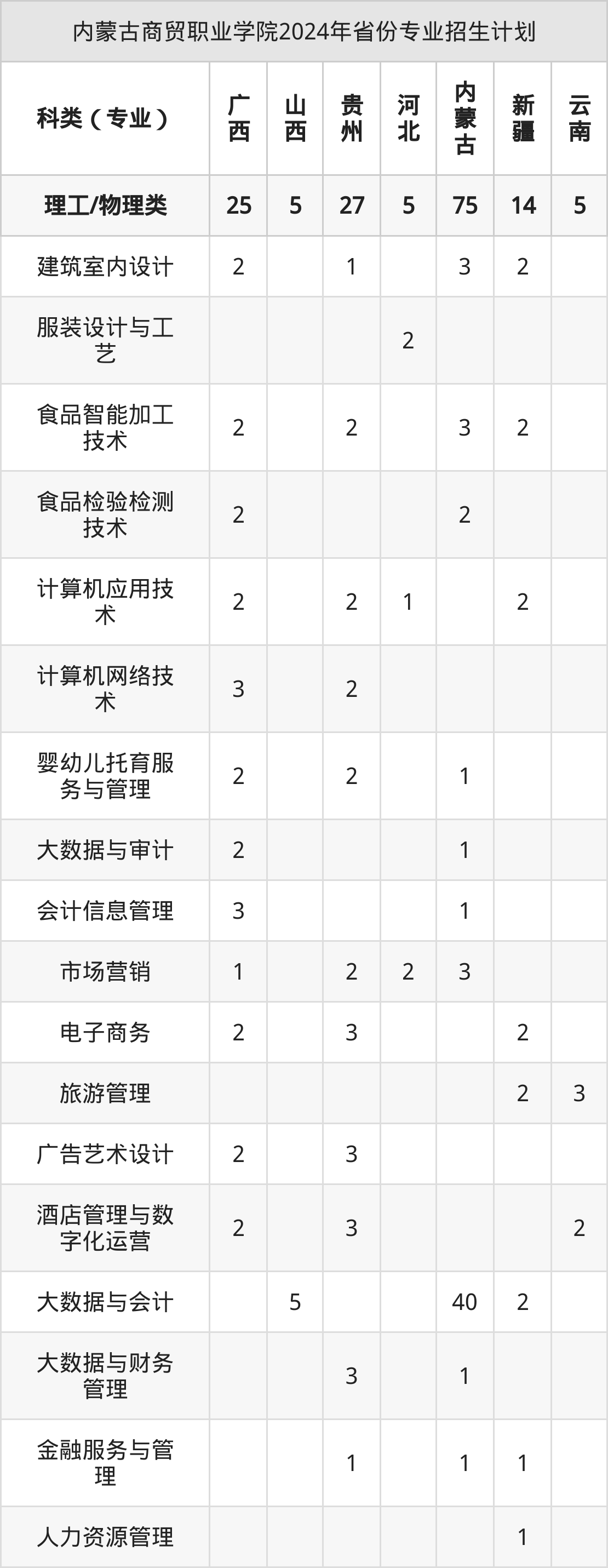 2025年内蒙古商贸职业学院专科招生计划待公布,下面附上2024年数据,暂供参考: