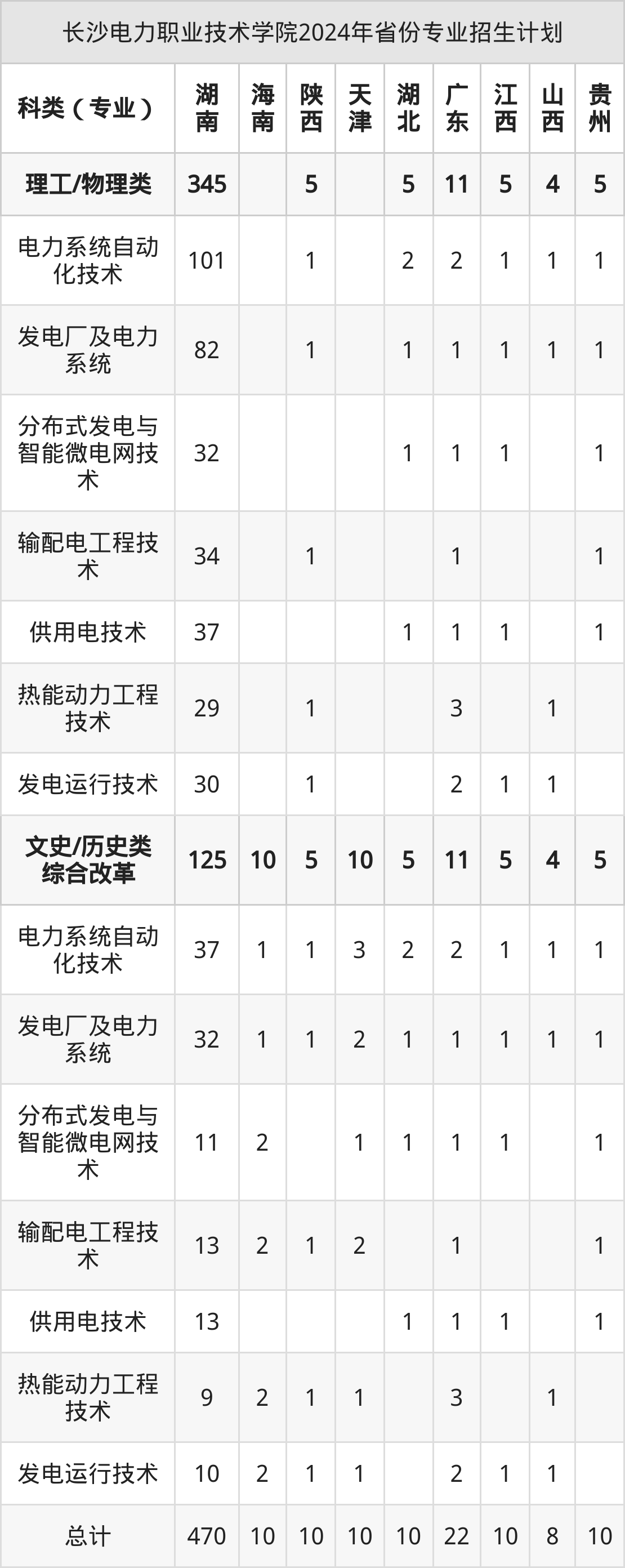 而各省份的招生计划数为湖南470人,海南10人,天津10人,湖北10人,贵州10人等。