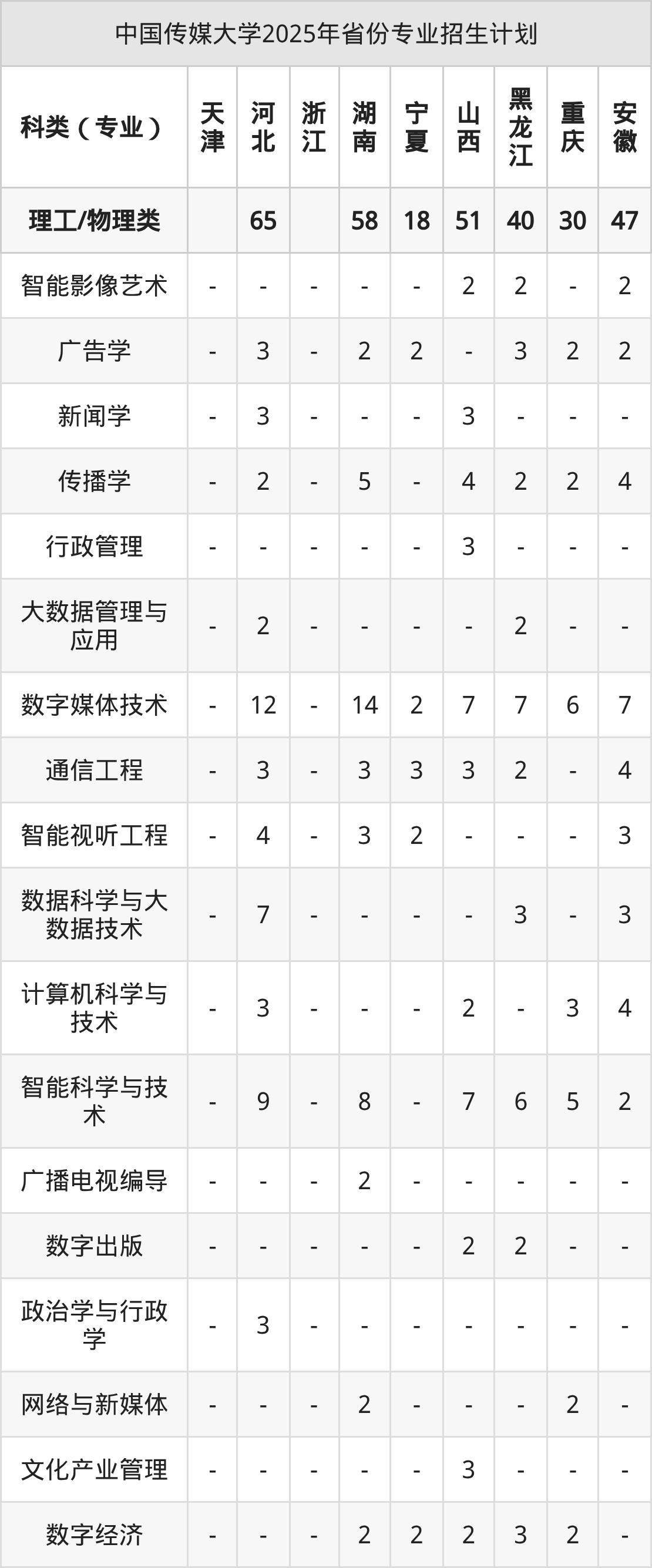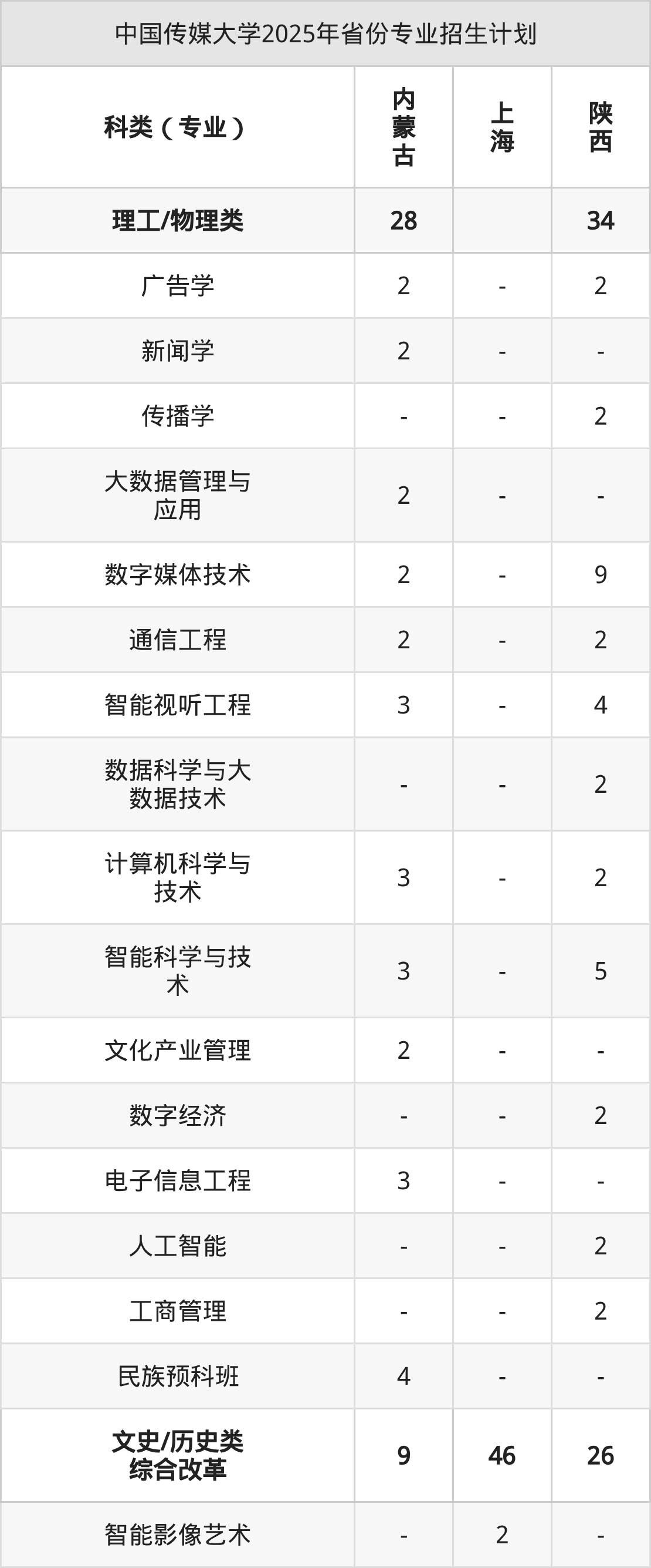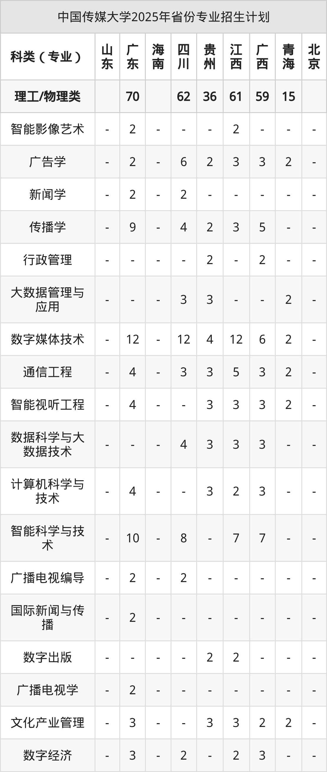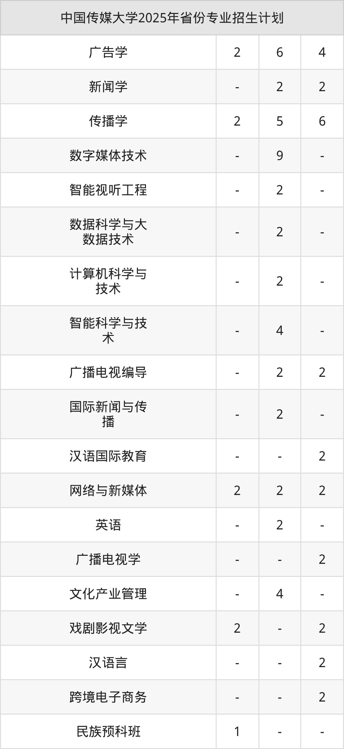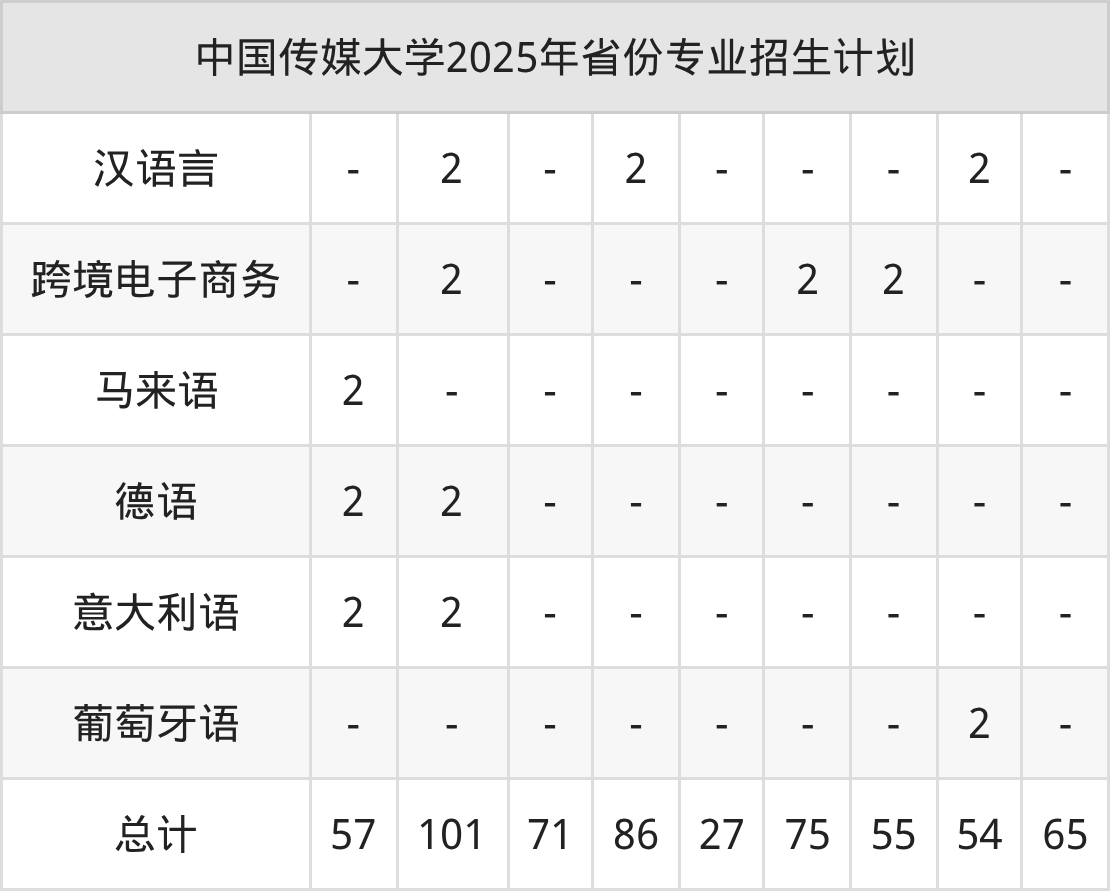 2026年中国传媒大学本科招生计划待公布,下面附上2025年数据,暂供参考: