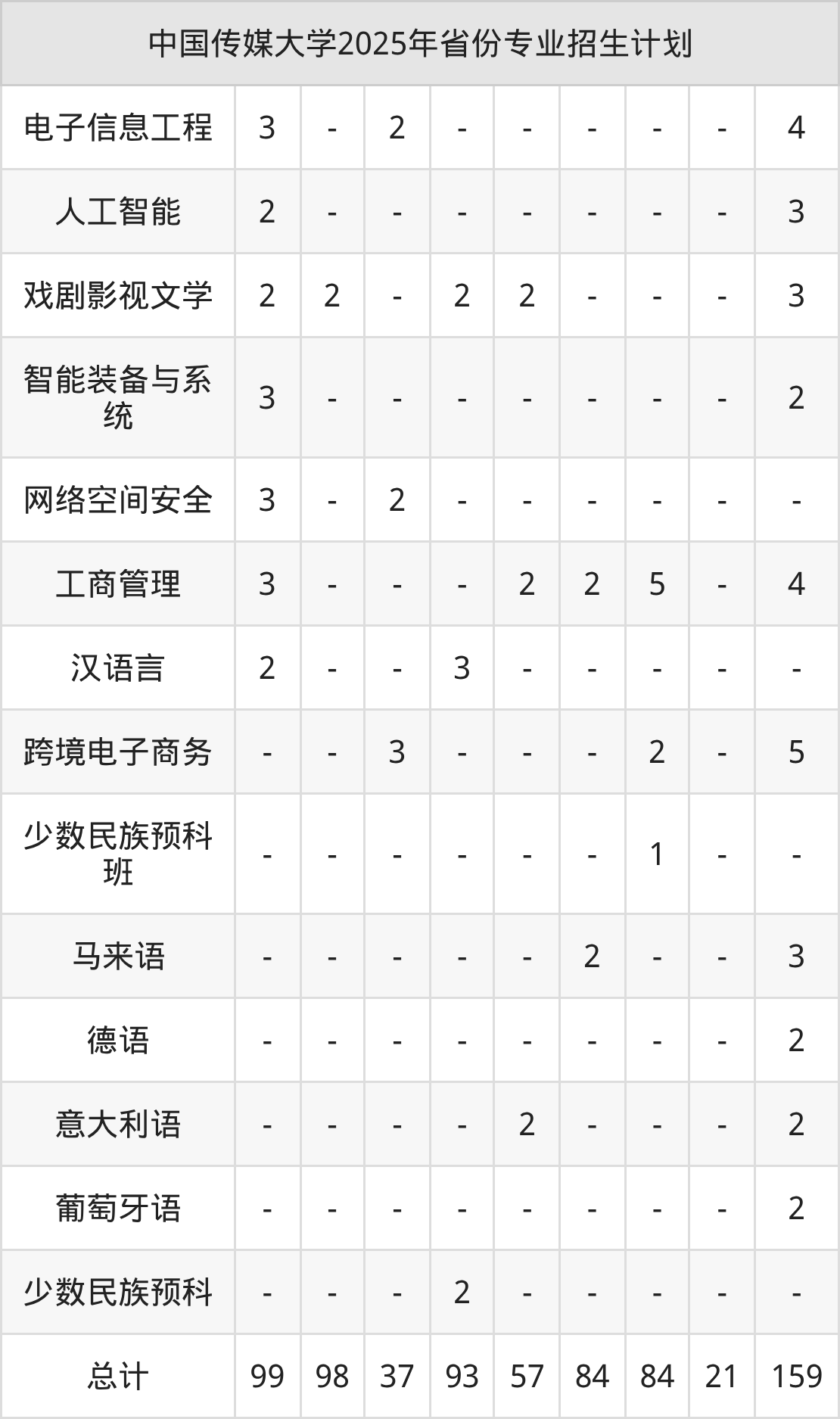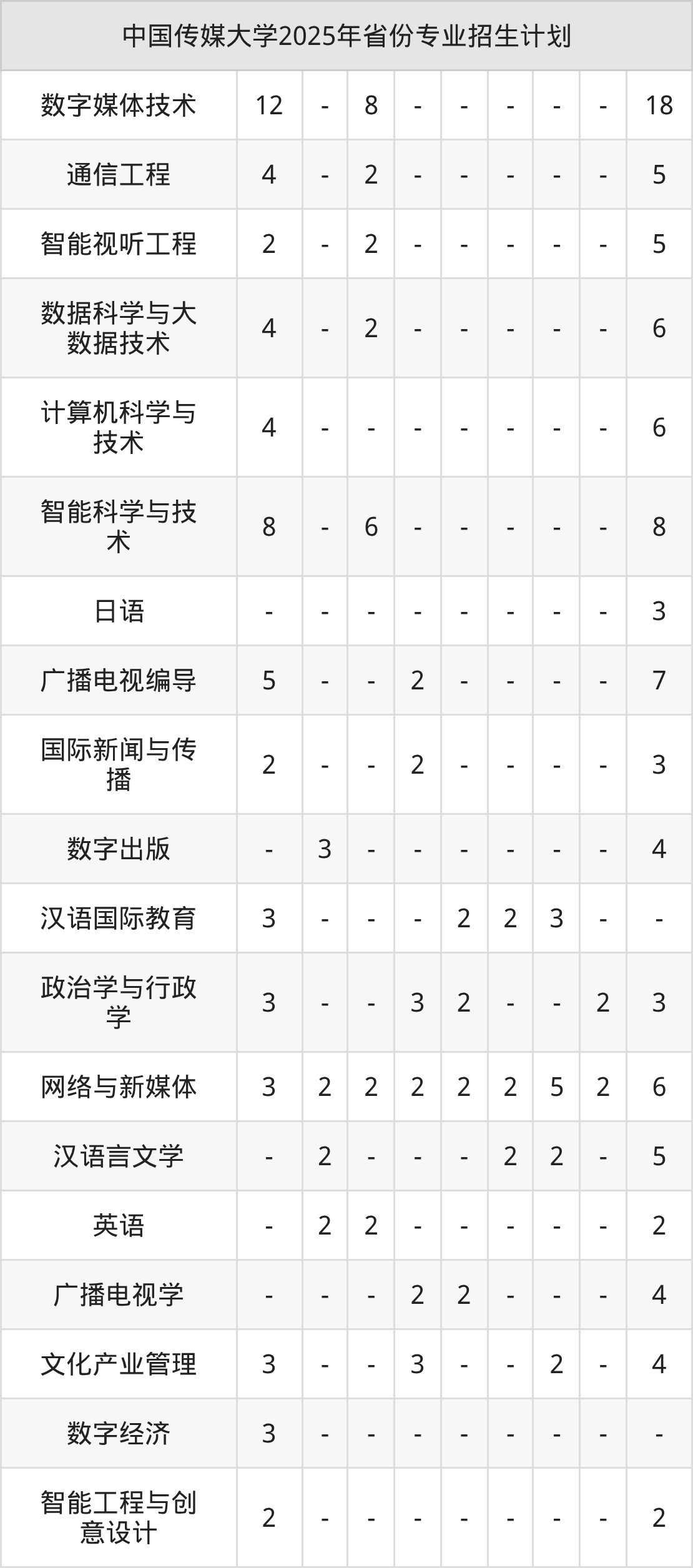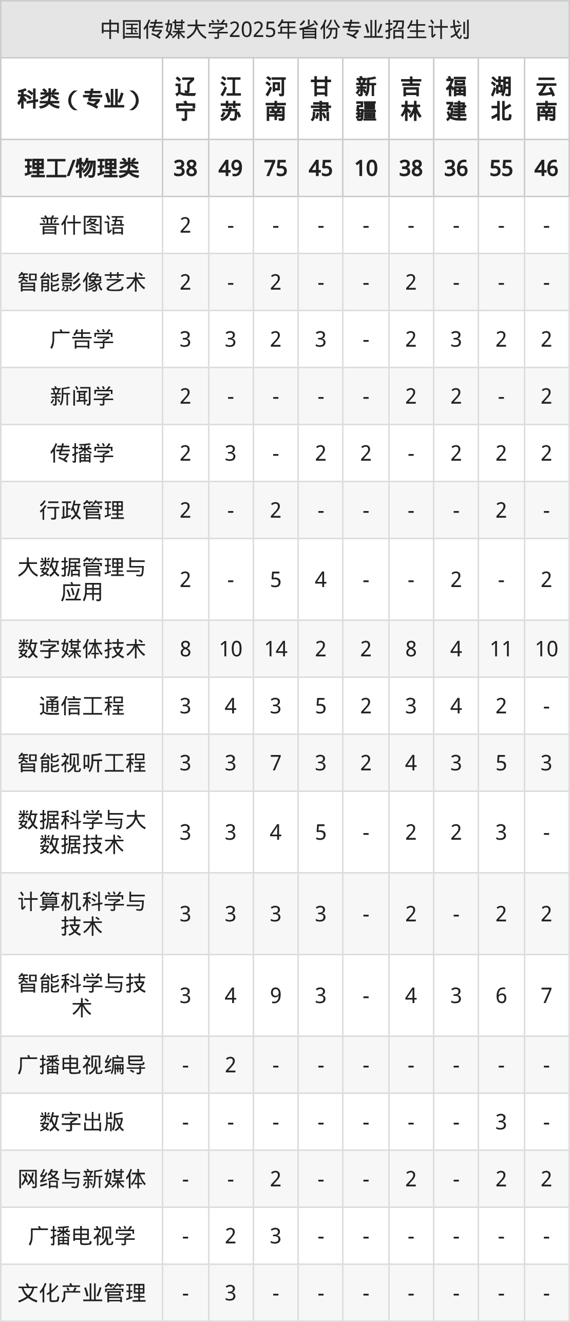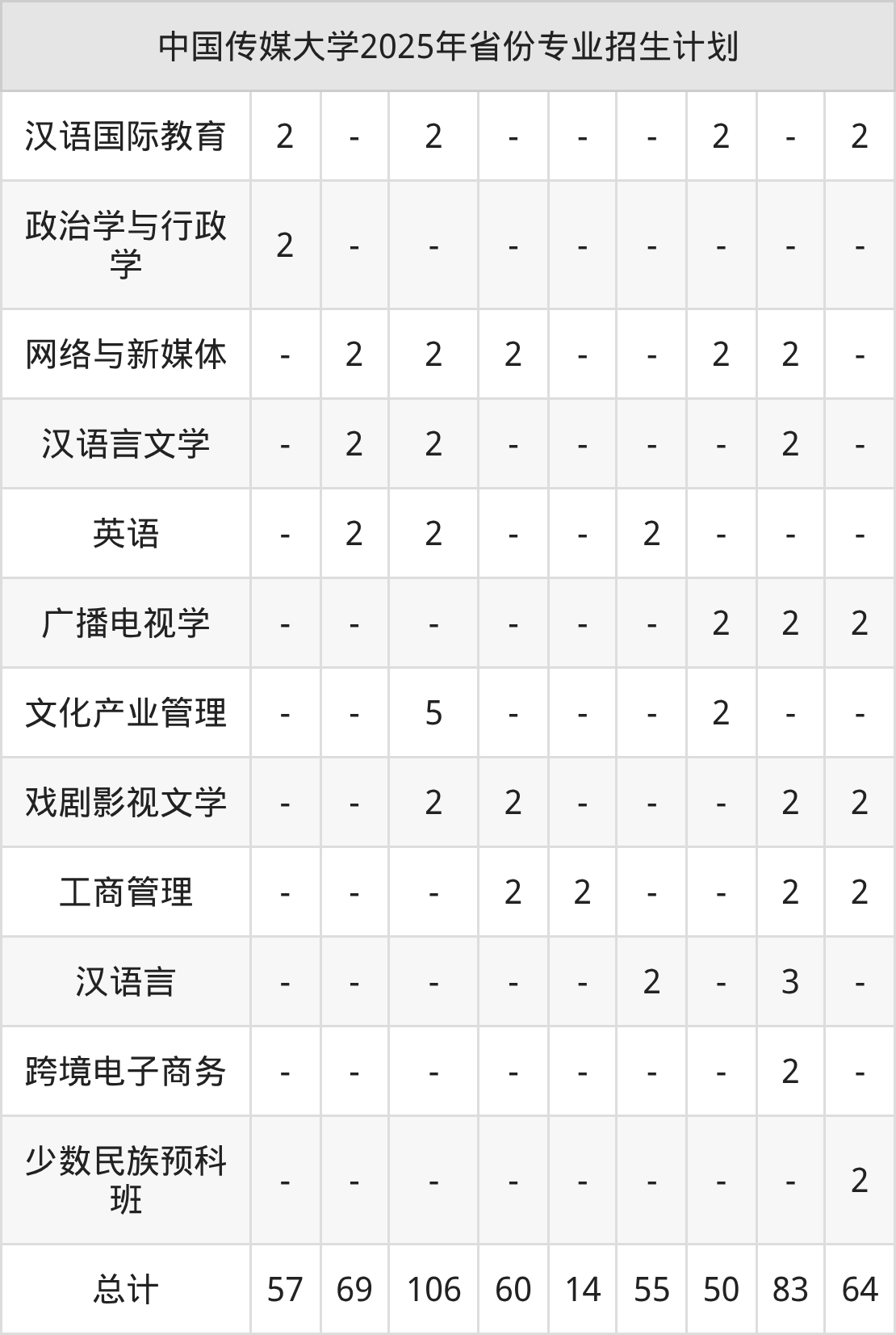 2026年中国传媒大学本科招生计划待公布,下面附上2025年数据,暂供参考: