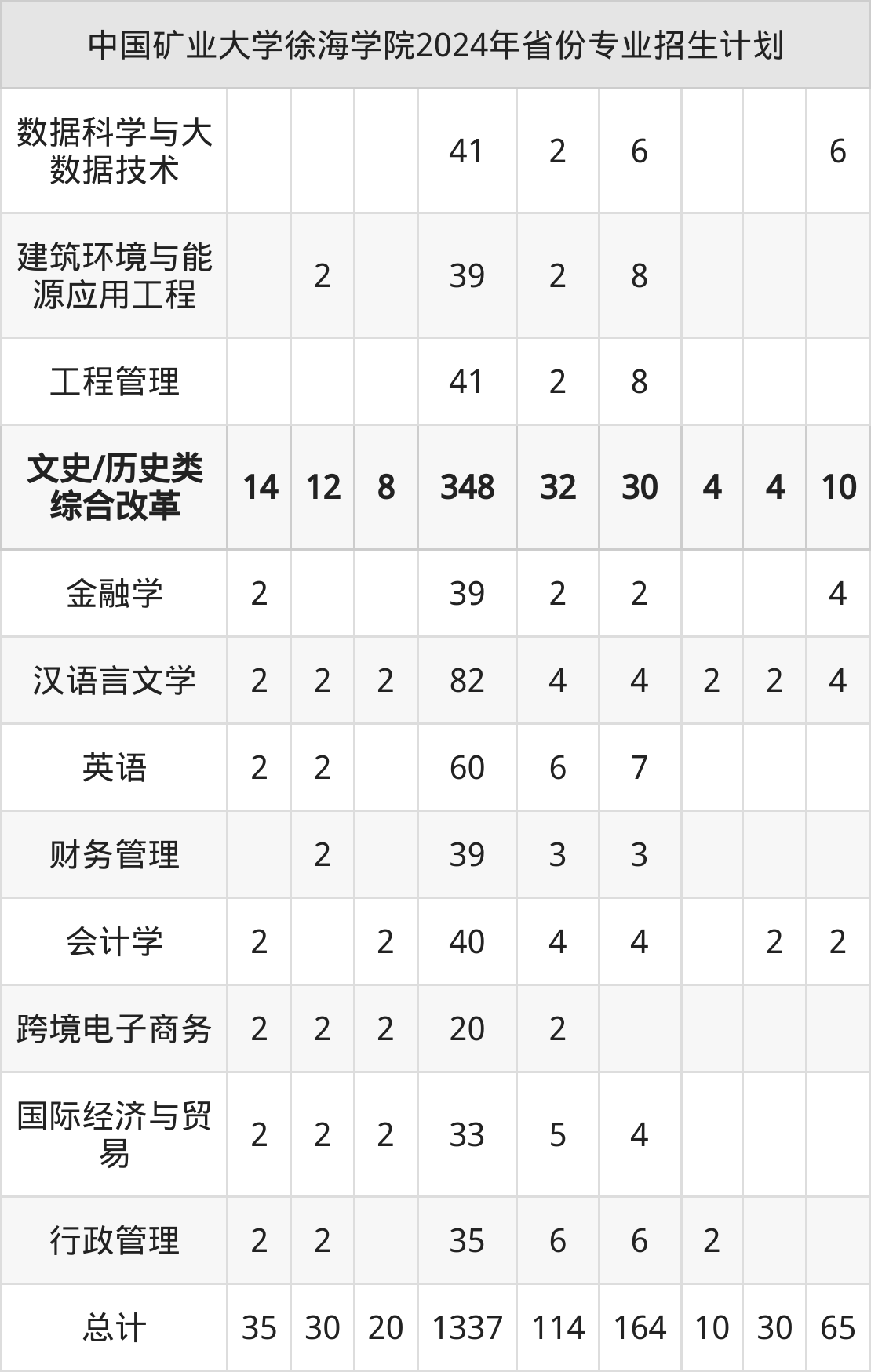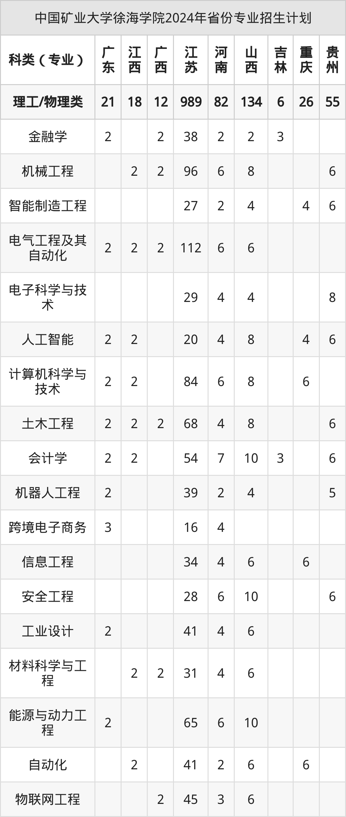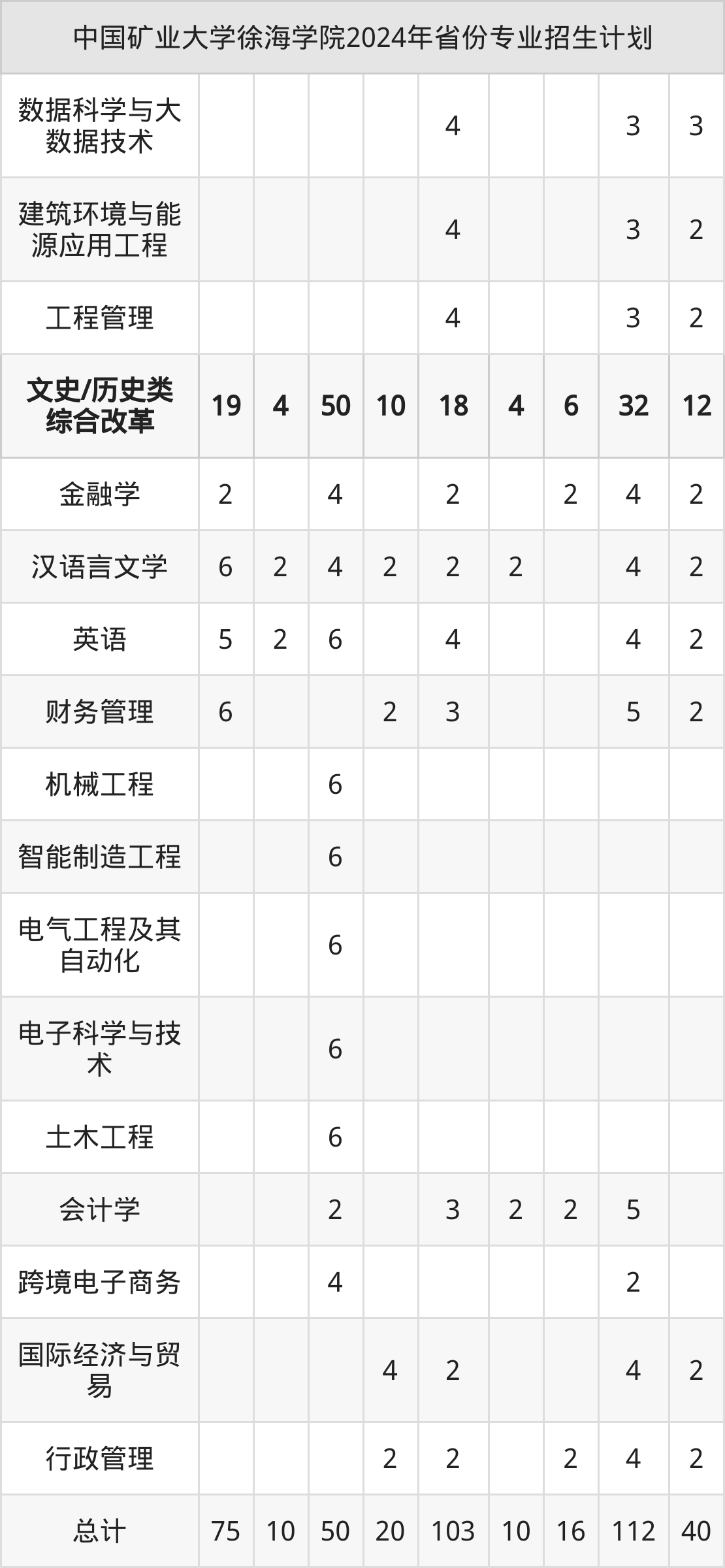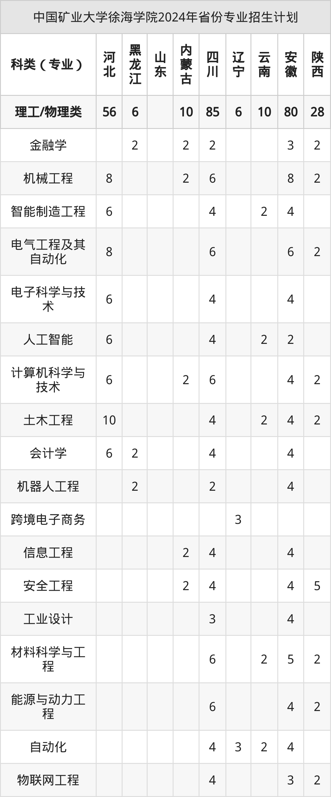 2025年中国矿业大学徐海学院本科招生计划待公布,下面附上2024年数据,暂供参考: