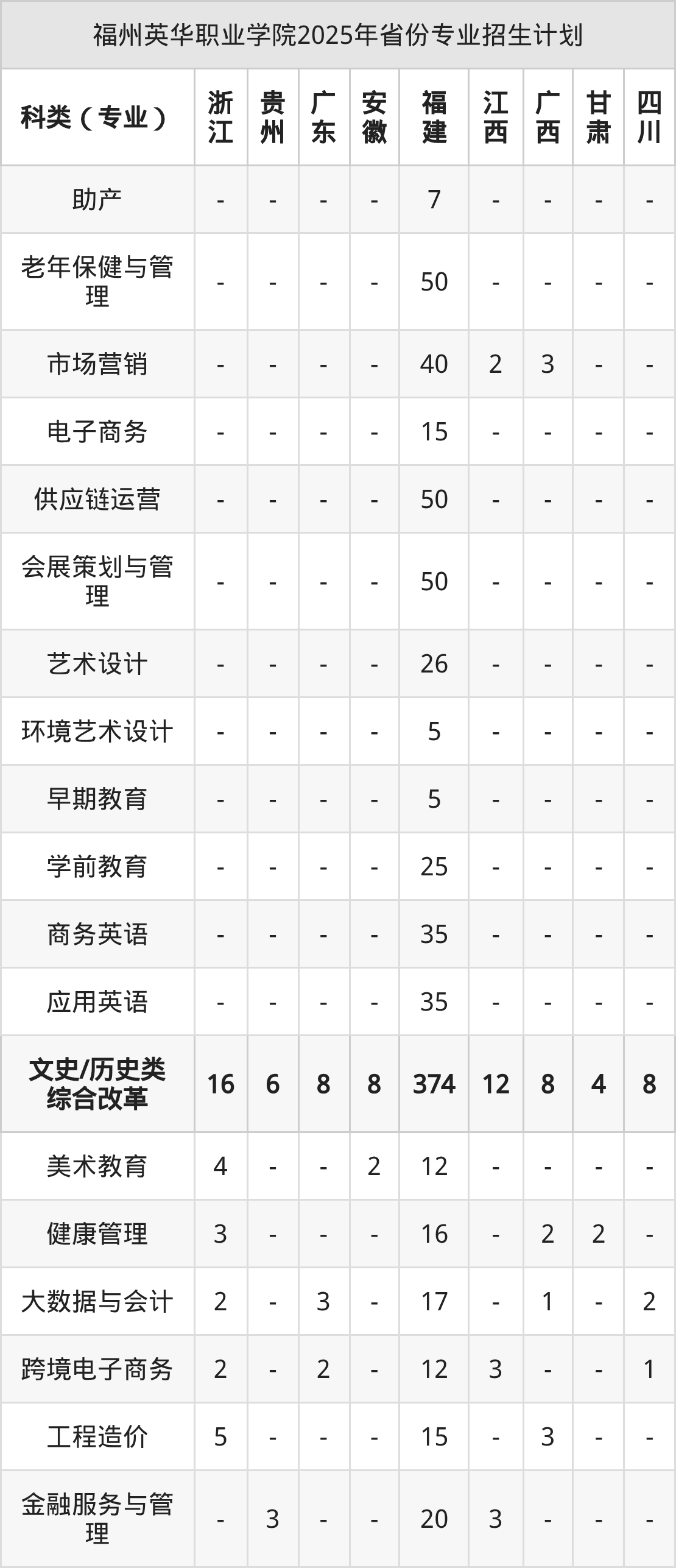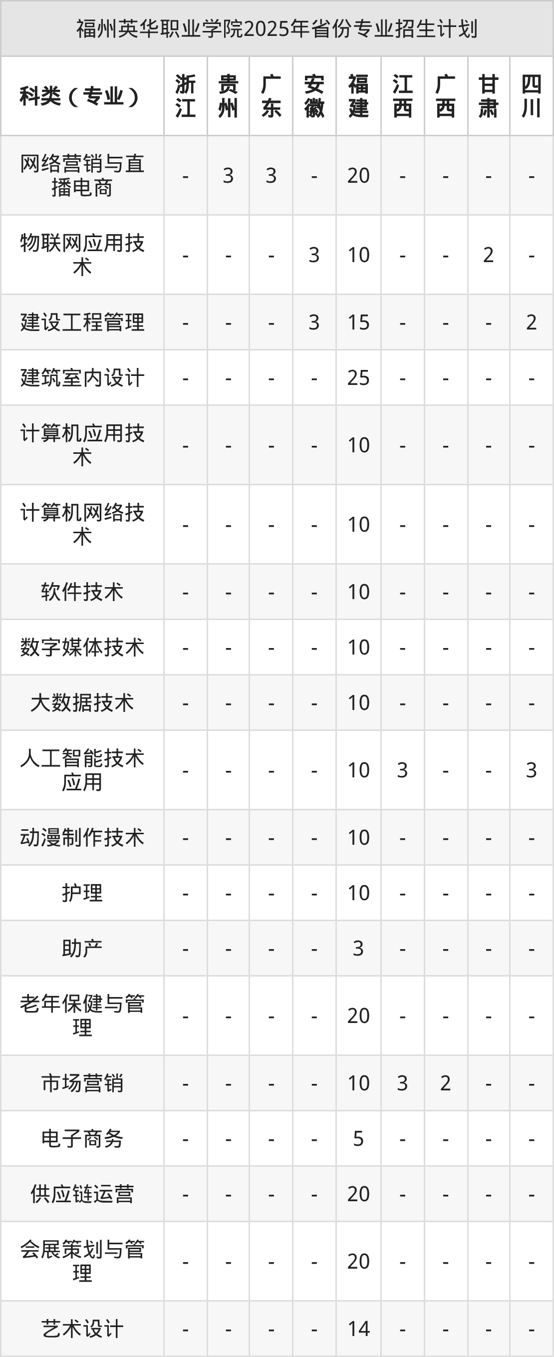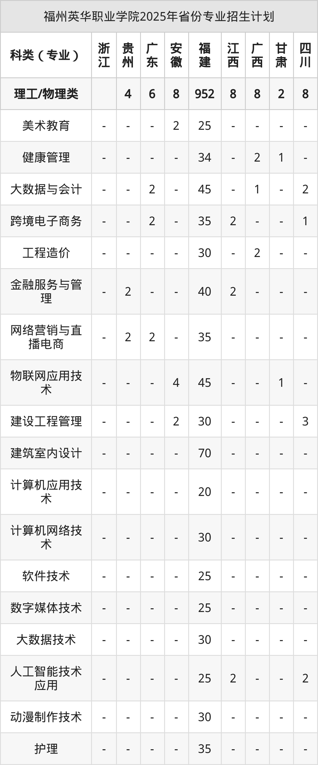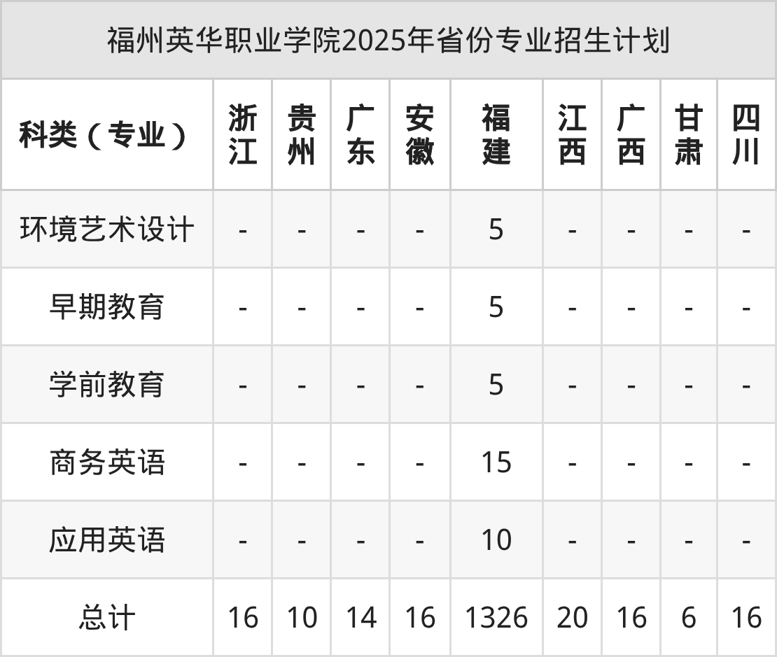 2026年福州英华职业学院专科招生计划待公布,下面附上2025年数据,暂供参考: