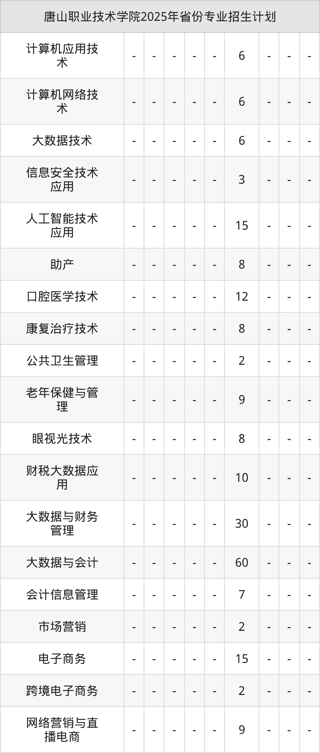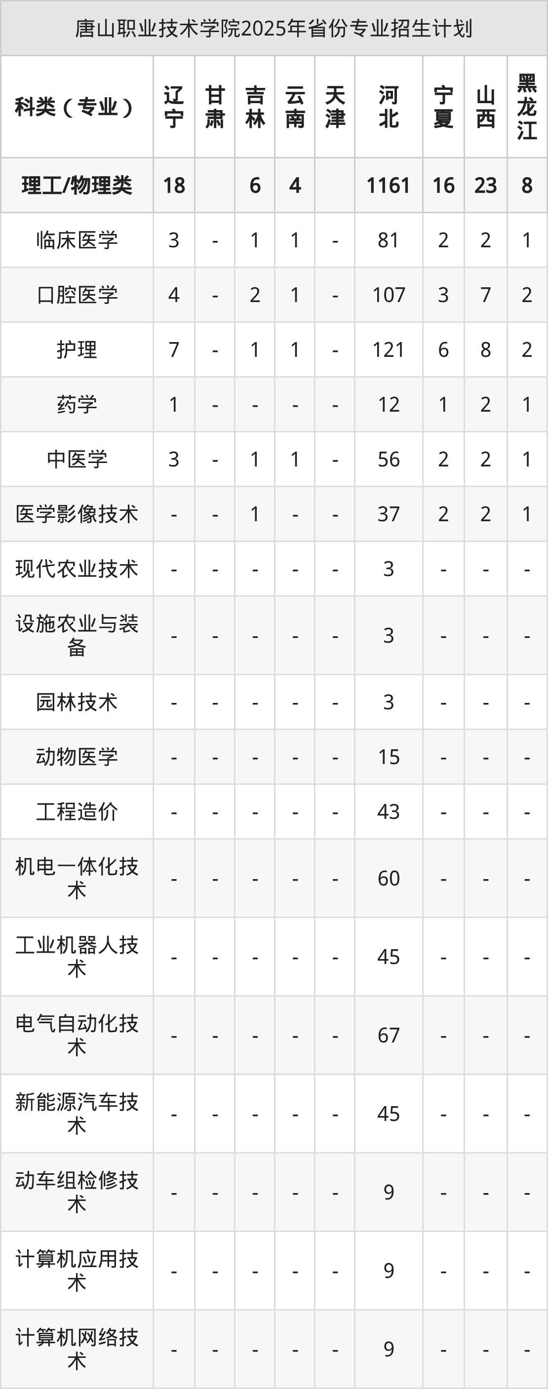 2026年唐山职业技术学院专科招生计划待公布,下面附上2025年数据,暂供参考: