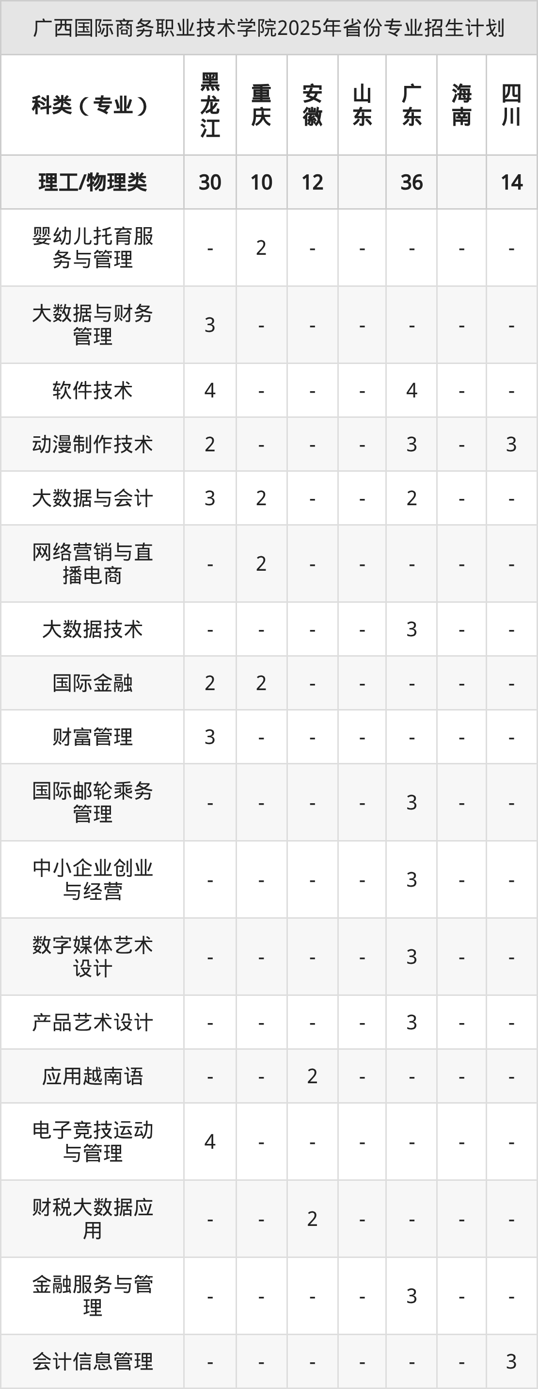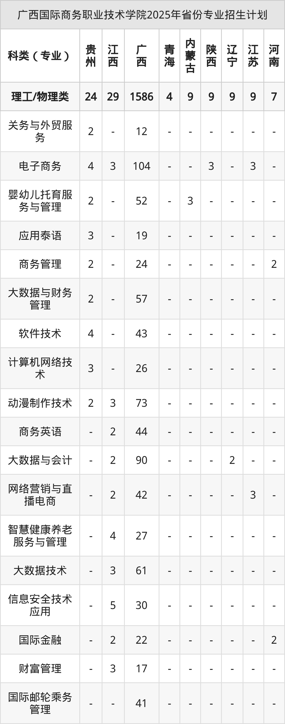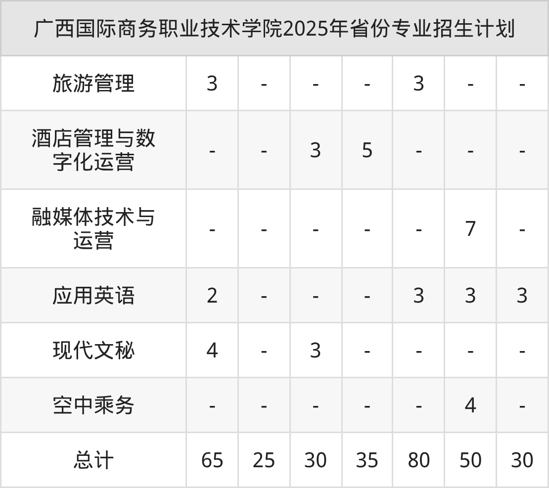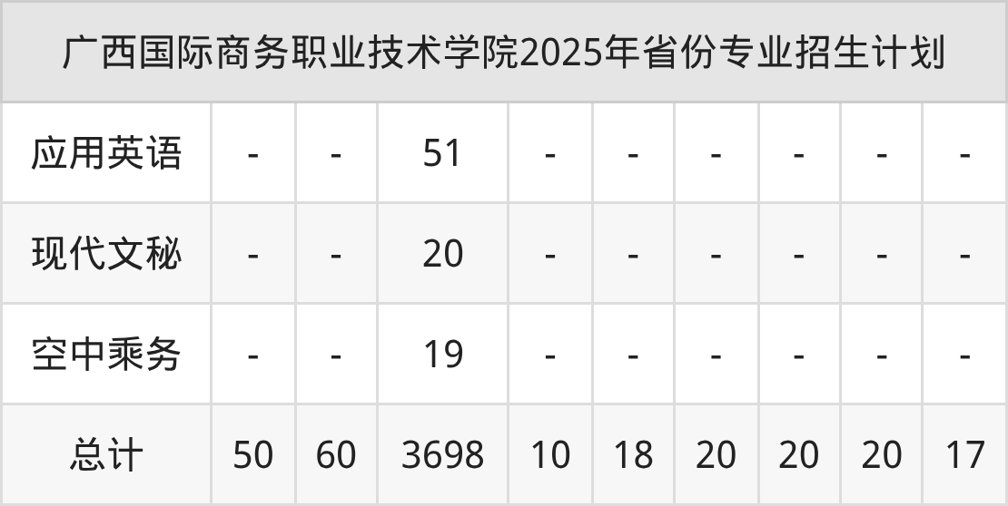 2026年广西国际商务职业技术学院专科招生计划待公布,下面附上2025年数据,暂供参考: