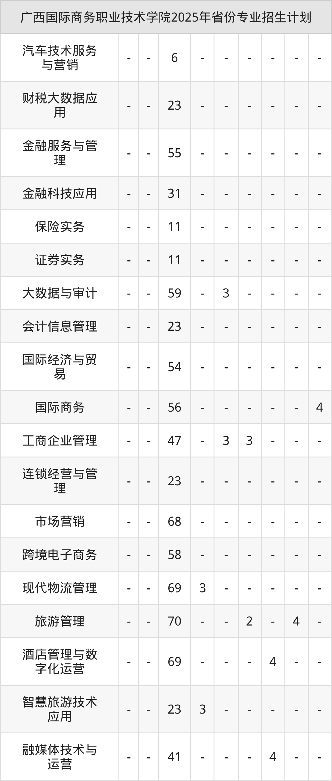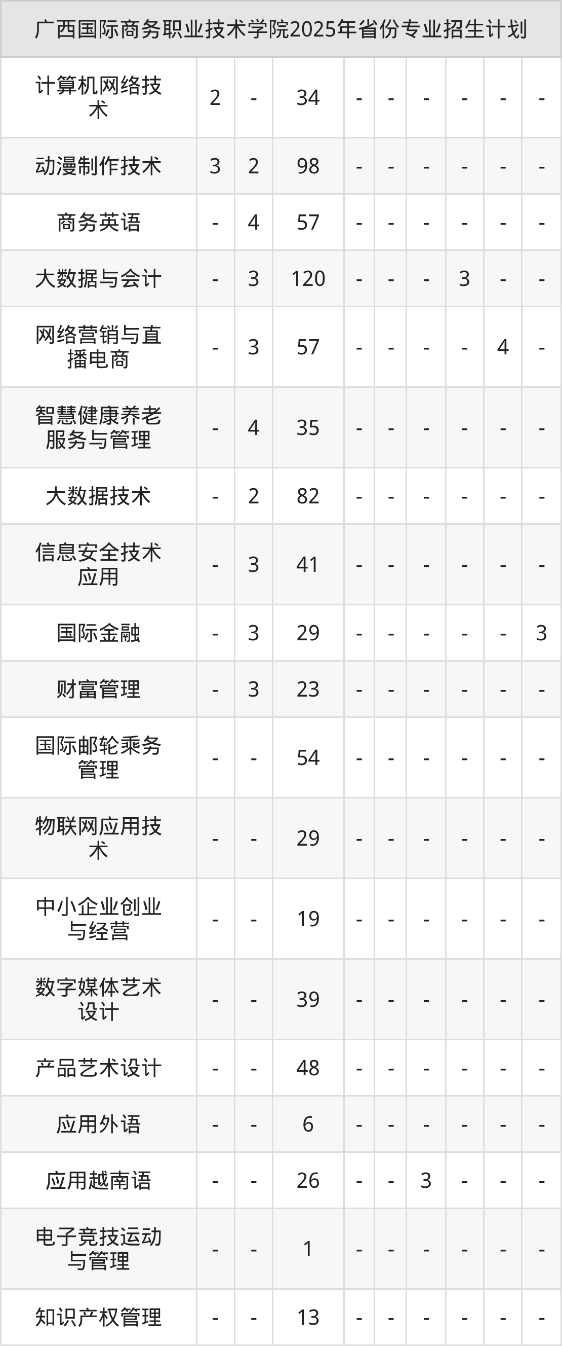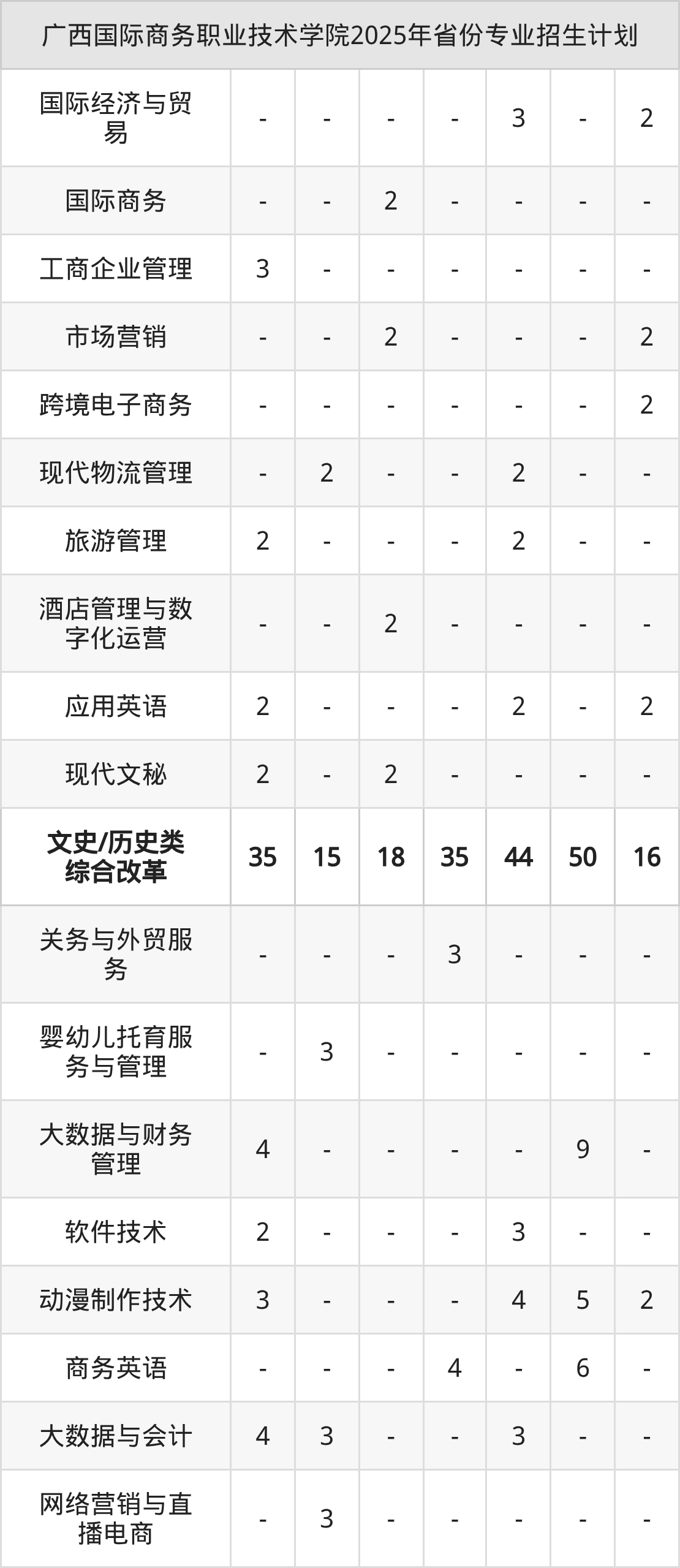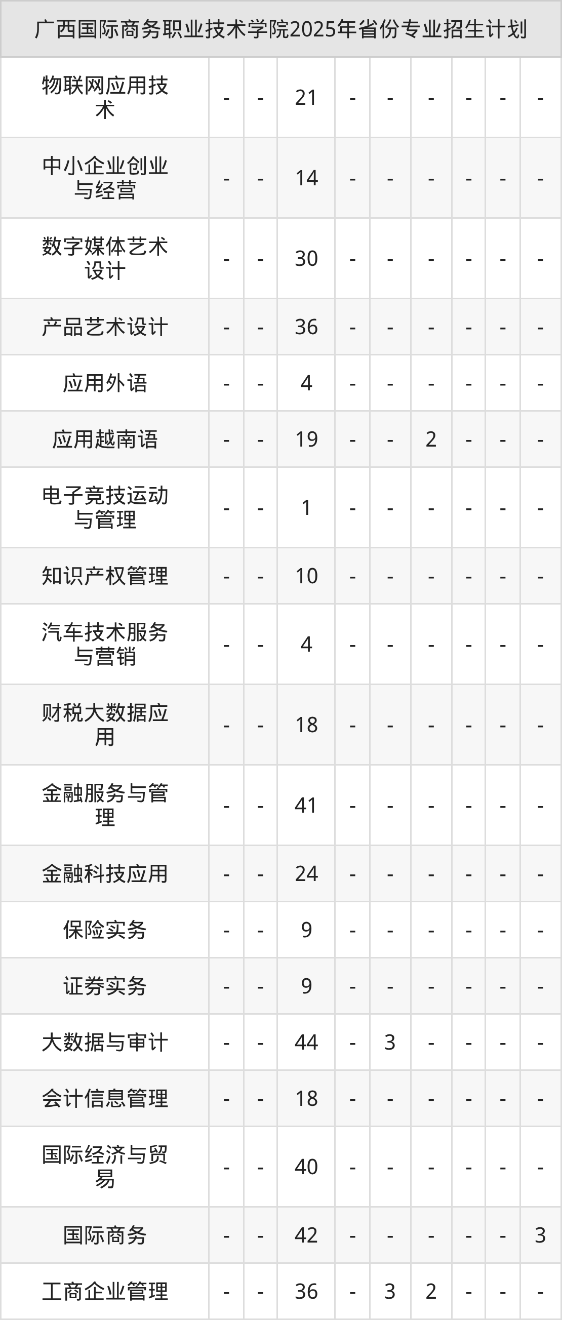 2026年广西国际商务职业技术学院专科招生计划待公布,下面附上2025年数据,暂供参考: