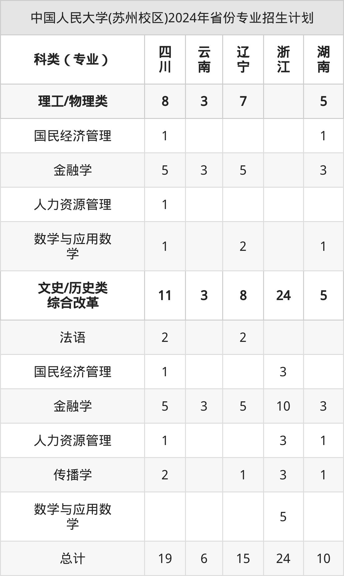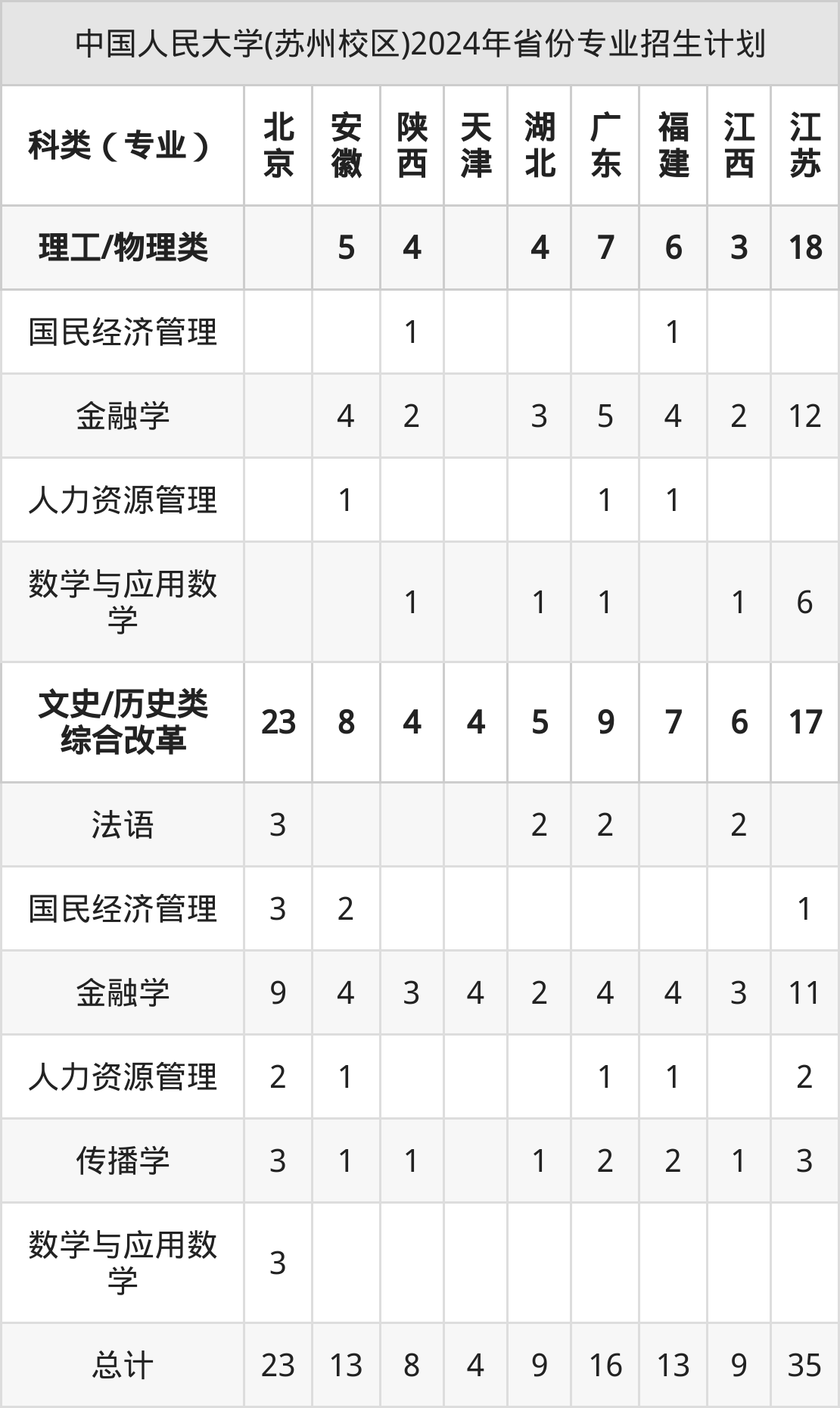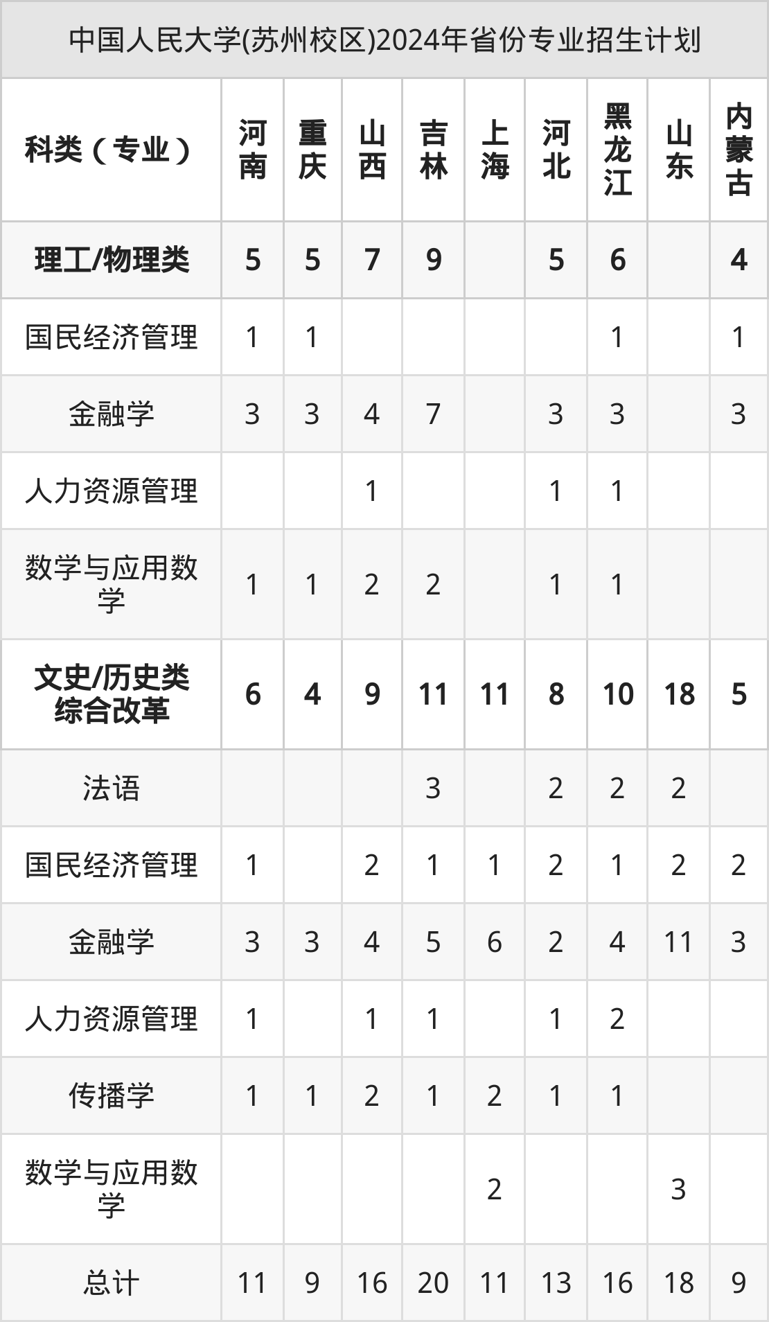 2025年中国人民大学(苏州校区)本科招生计划待公布,下面附上2024年数据,暂供参考: