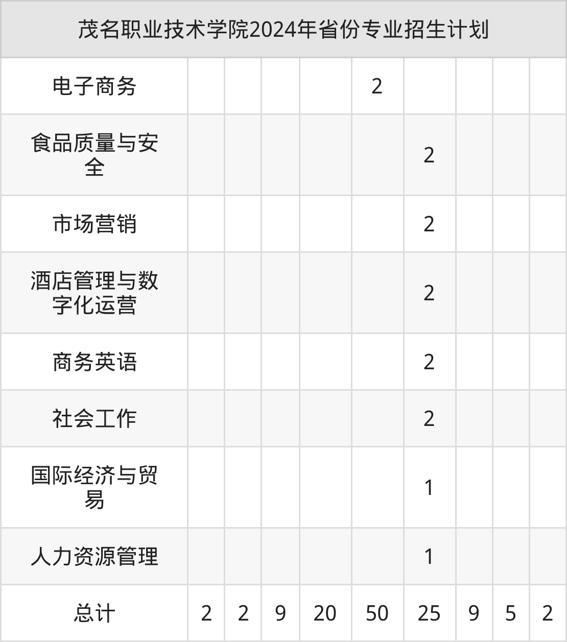 而各省份的招生计划数为青海9人,广东1418人,湖南9人,河北20人,新疆25人等。