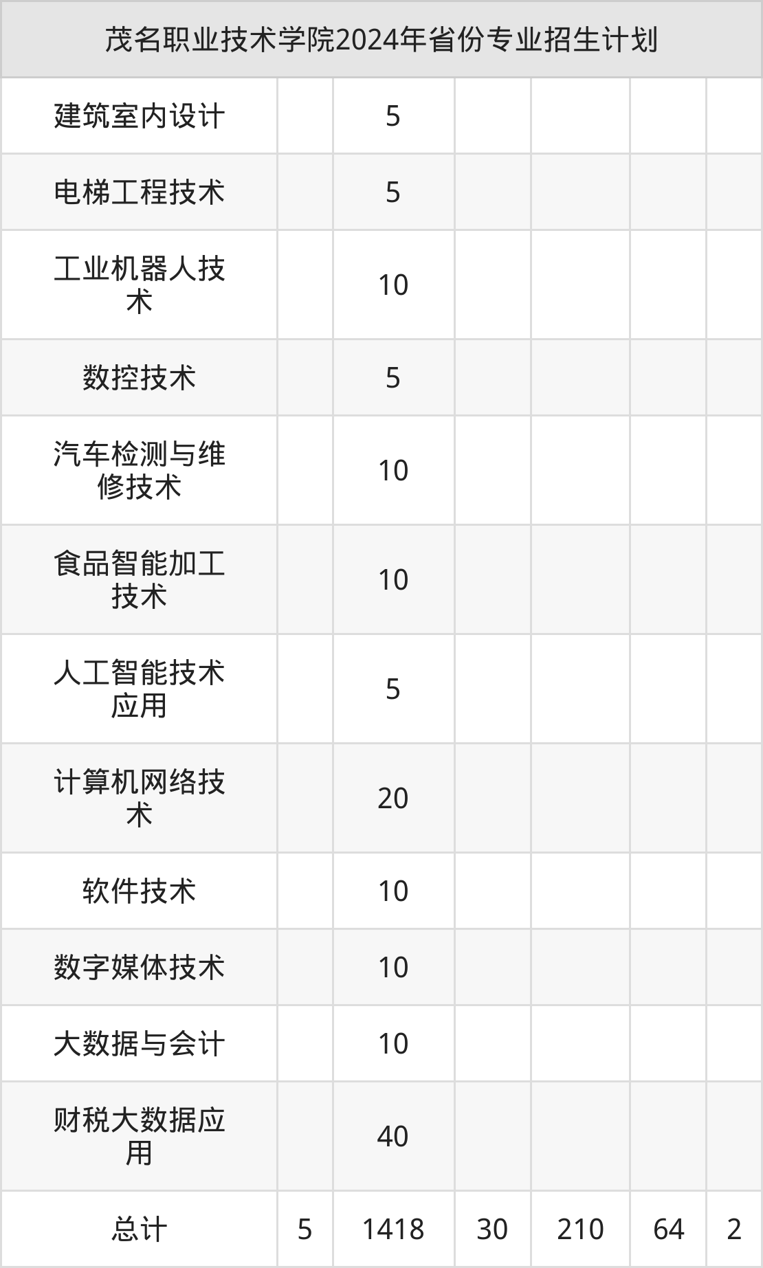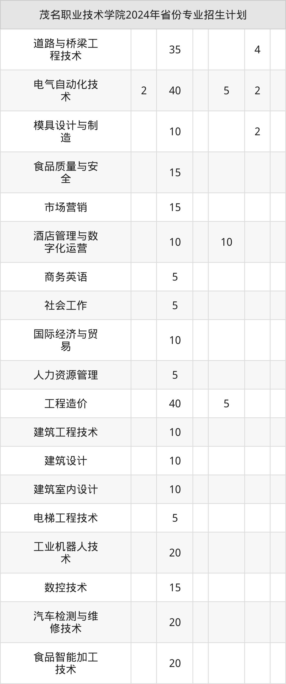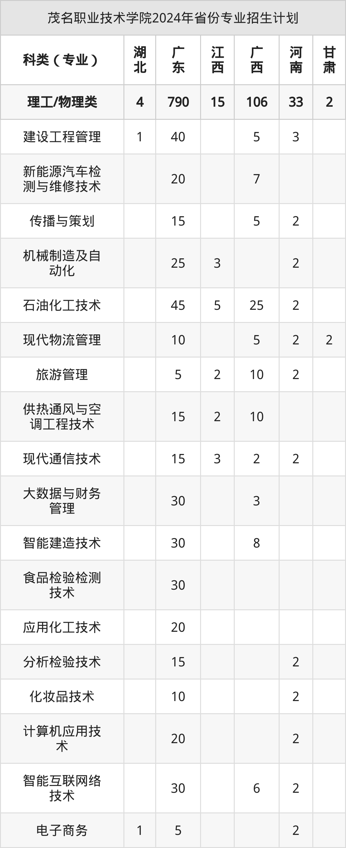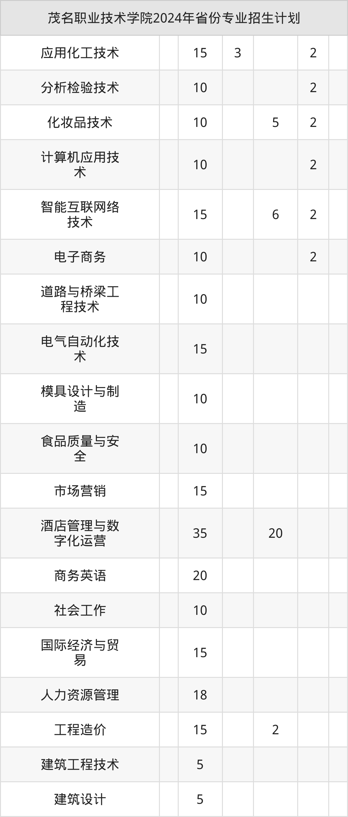 2025年茂名职业技术学院专科招生计划待公布,下面附上2024年数据,暂供参考: