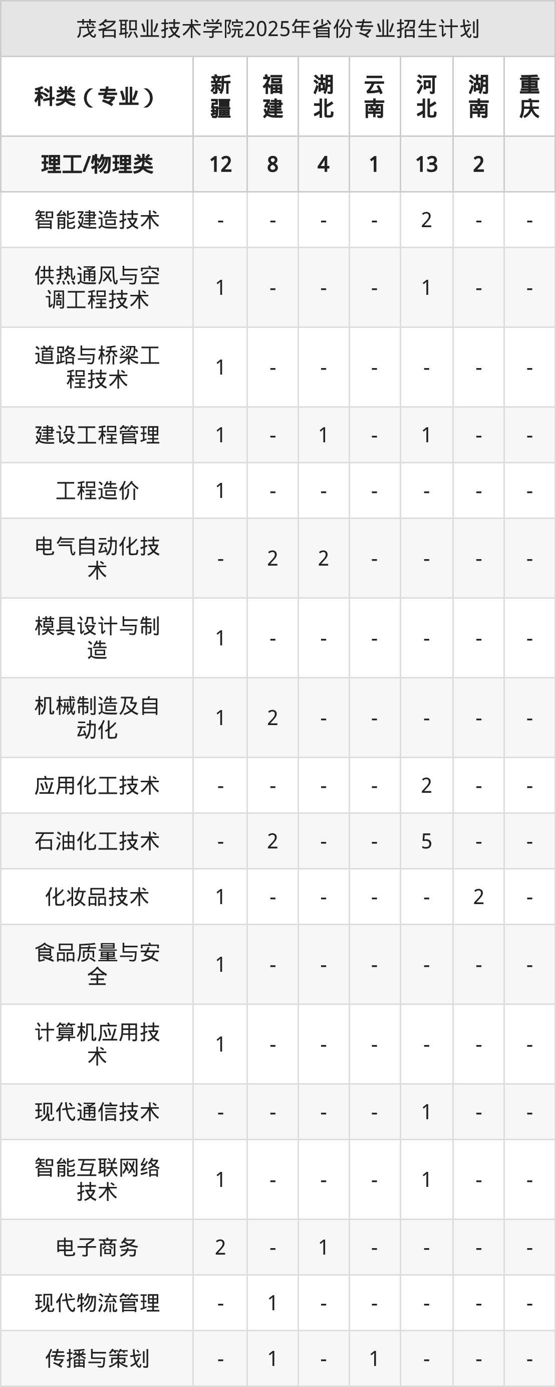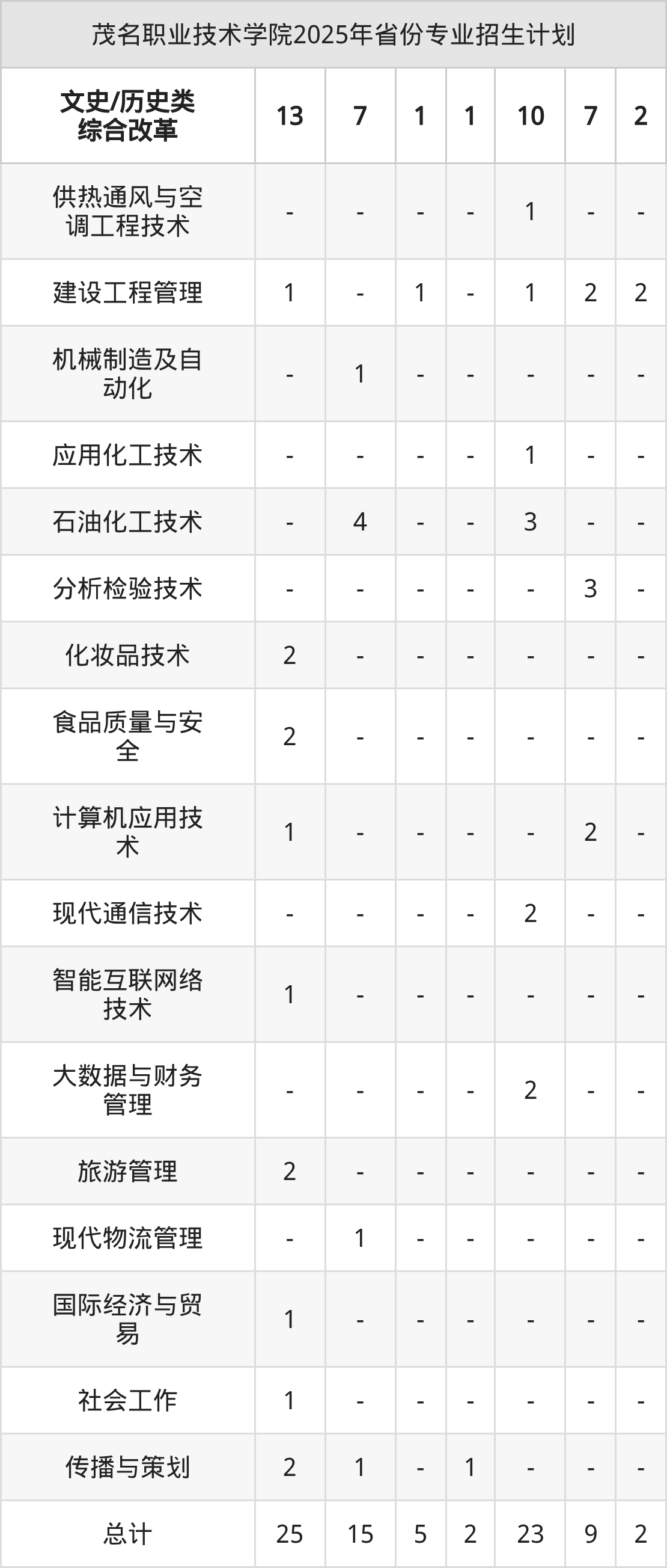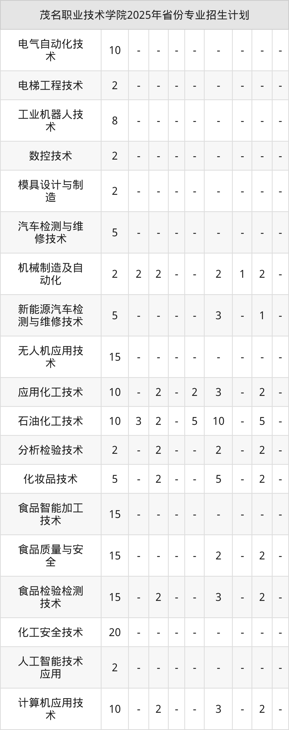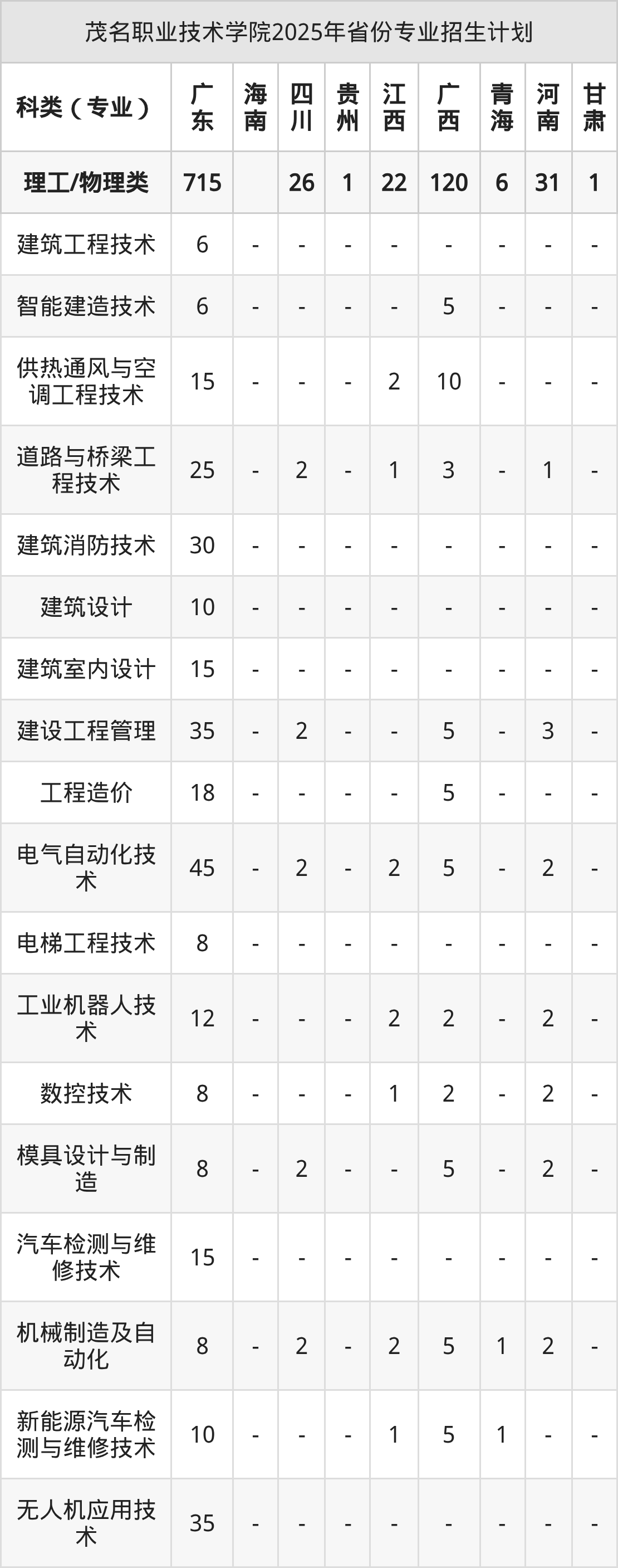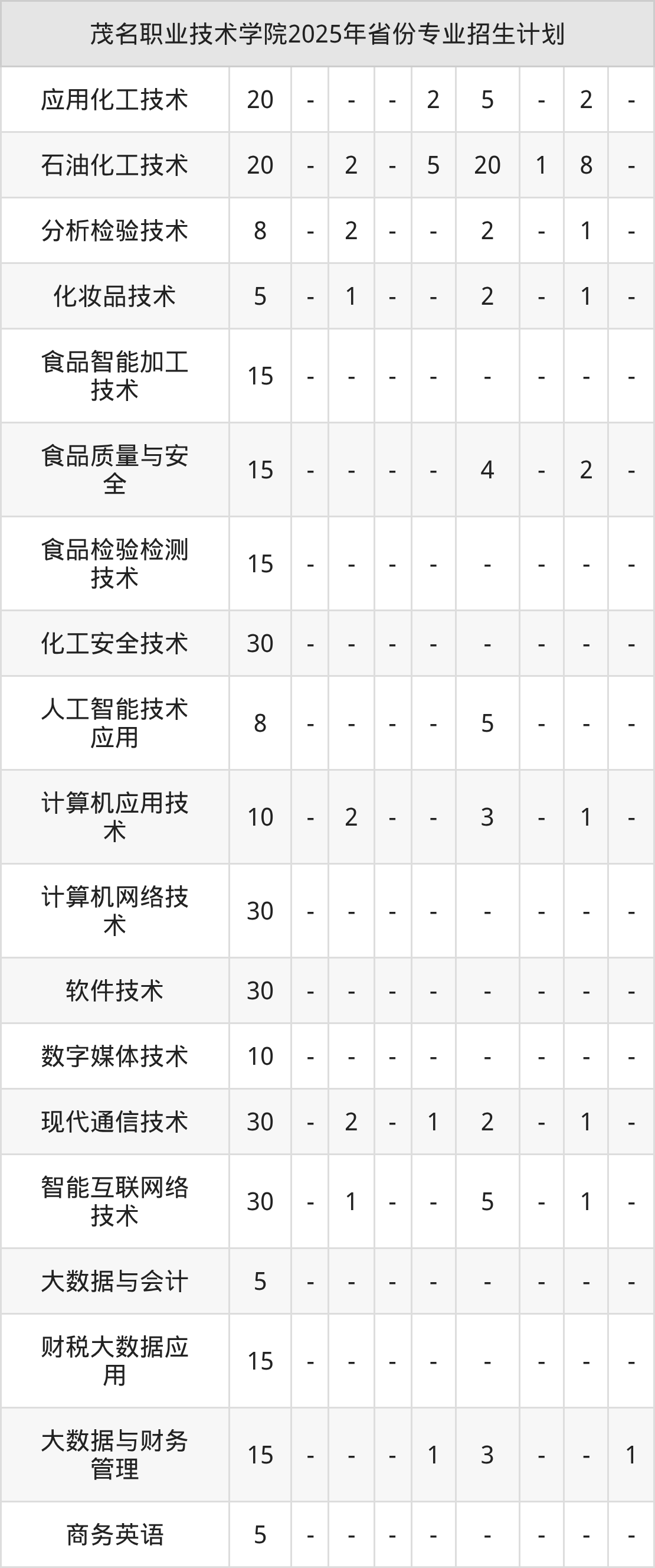 2026年茂名职业技术学院专科招生计划待公布,下面附上2025年数据,暂供参考: