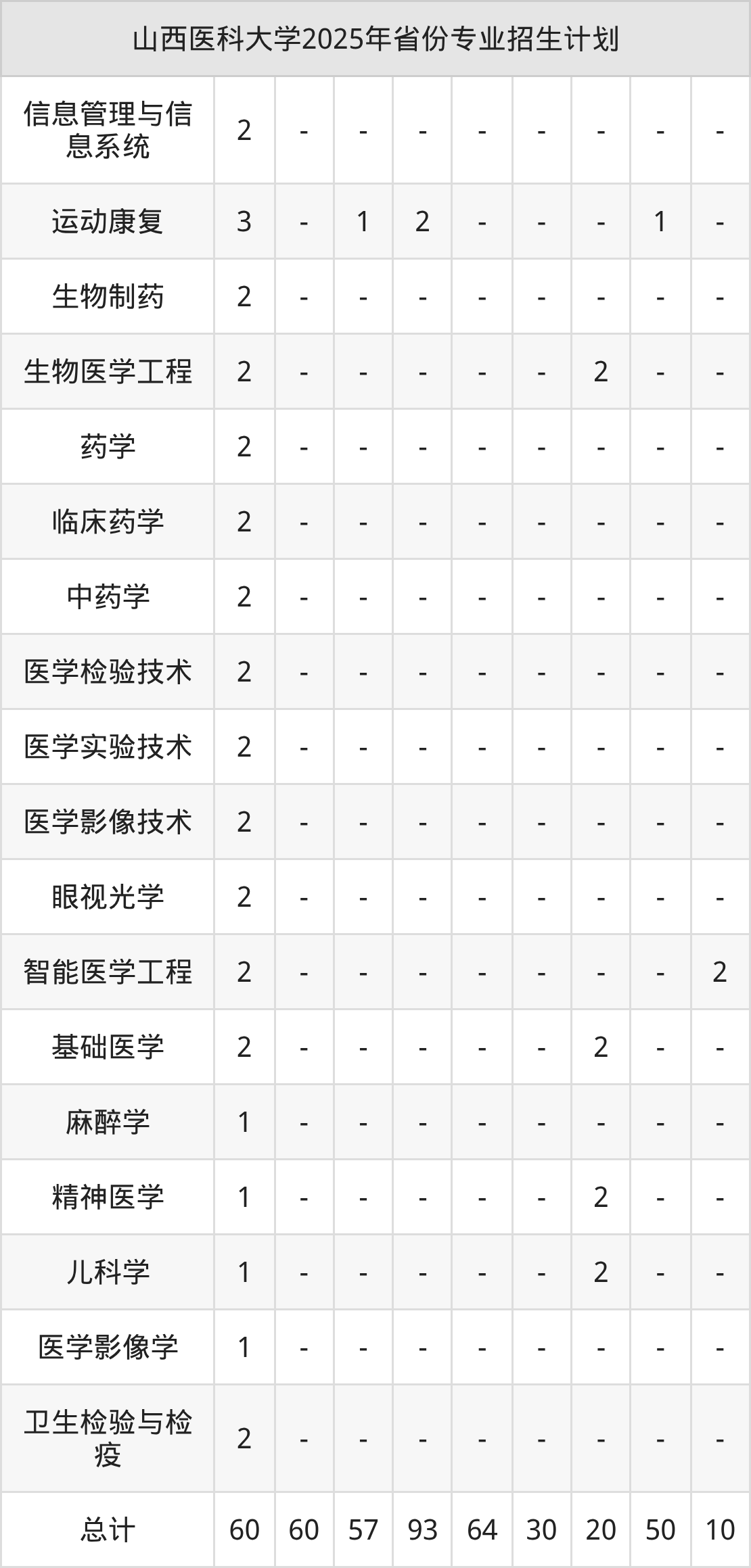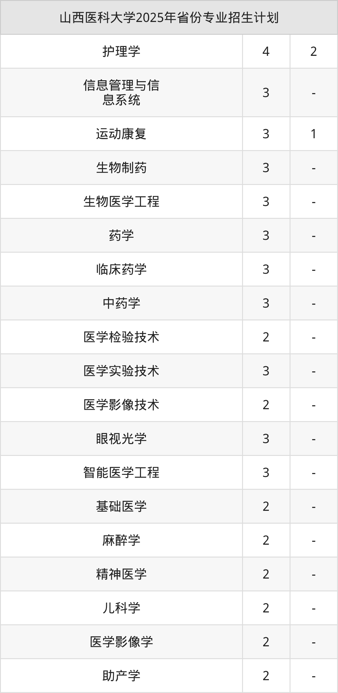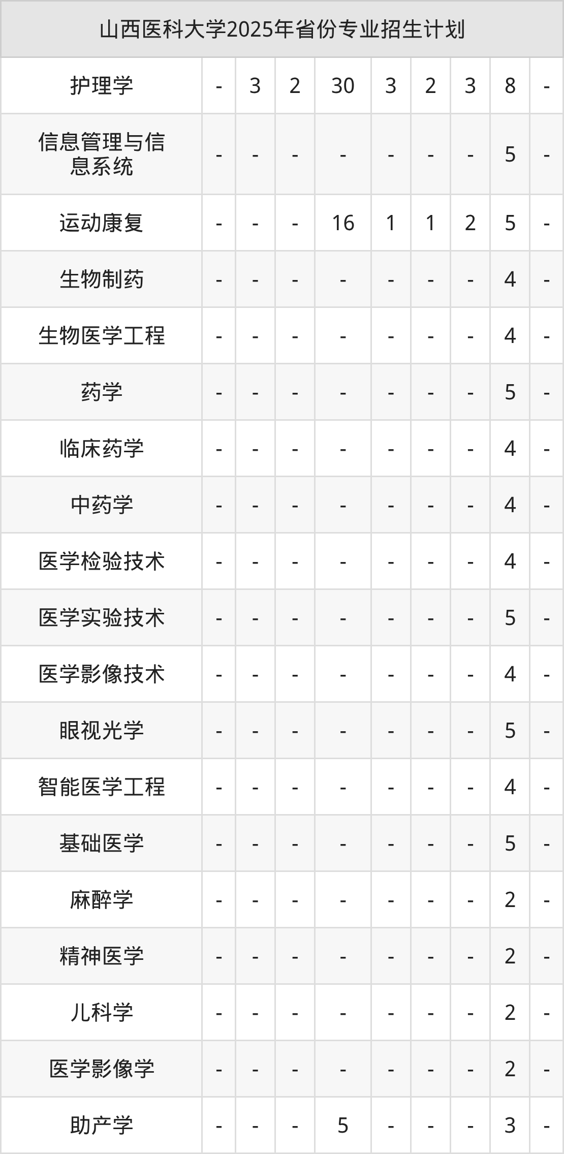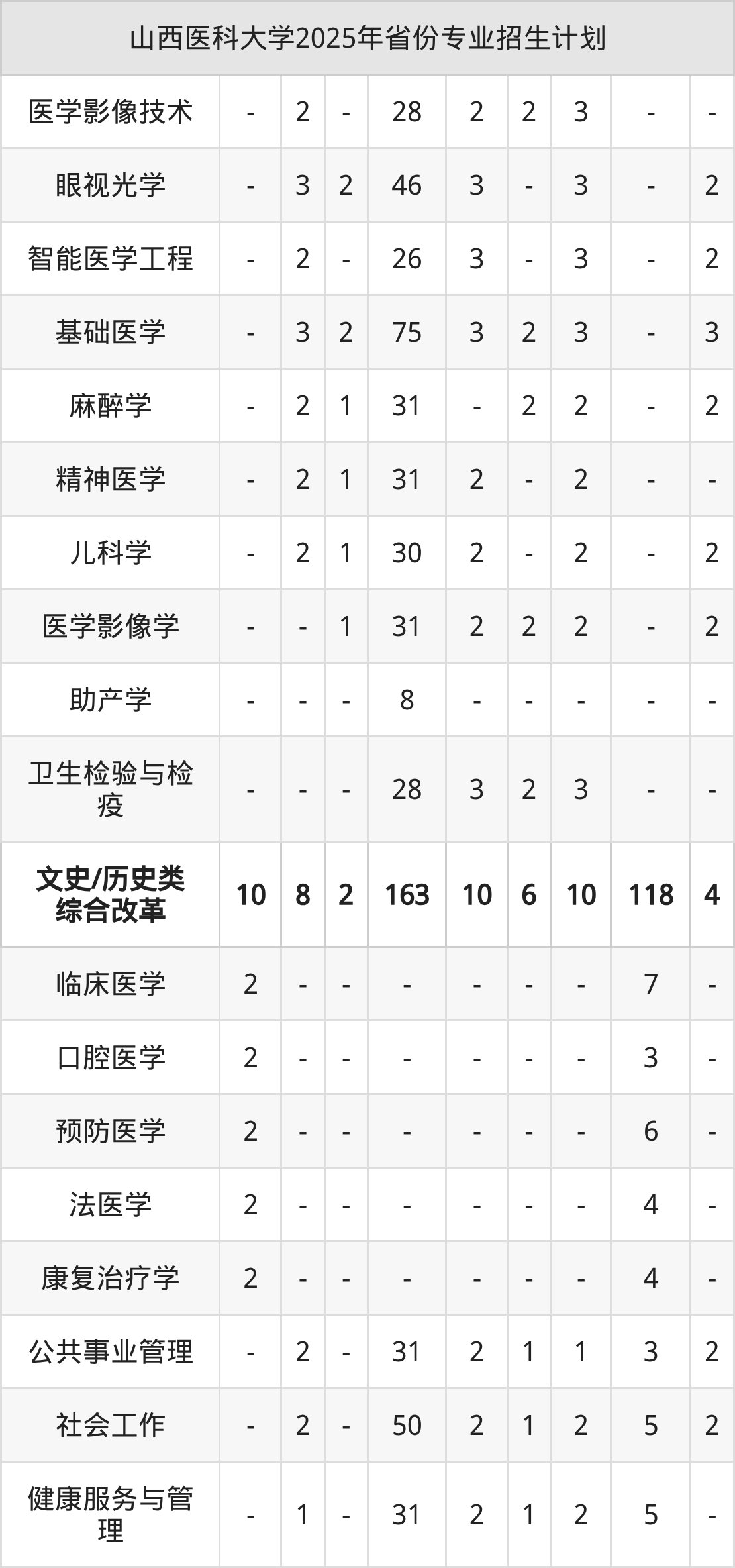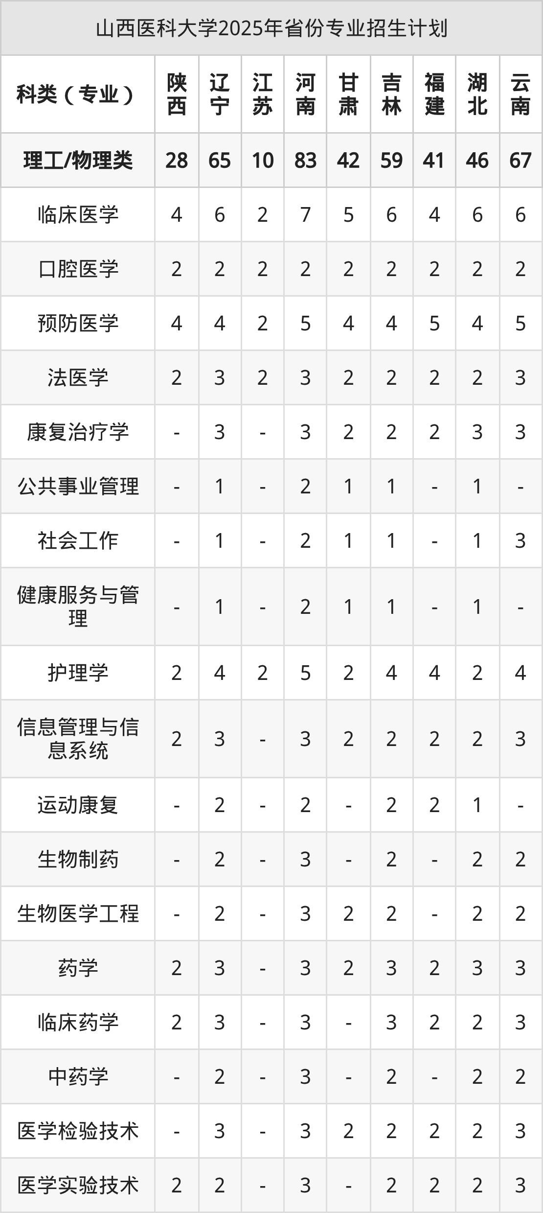 2026年山西医科大学本科招生计划待公布,下面附上2025年数据,暂供参考: