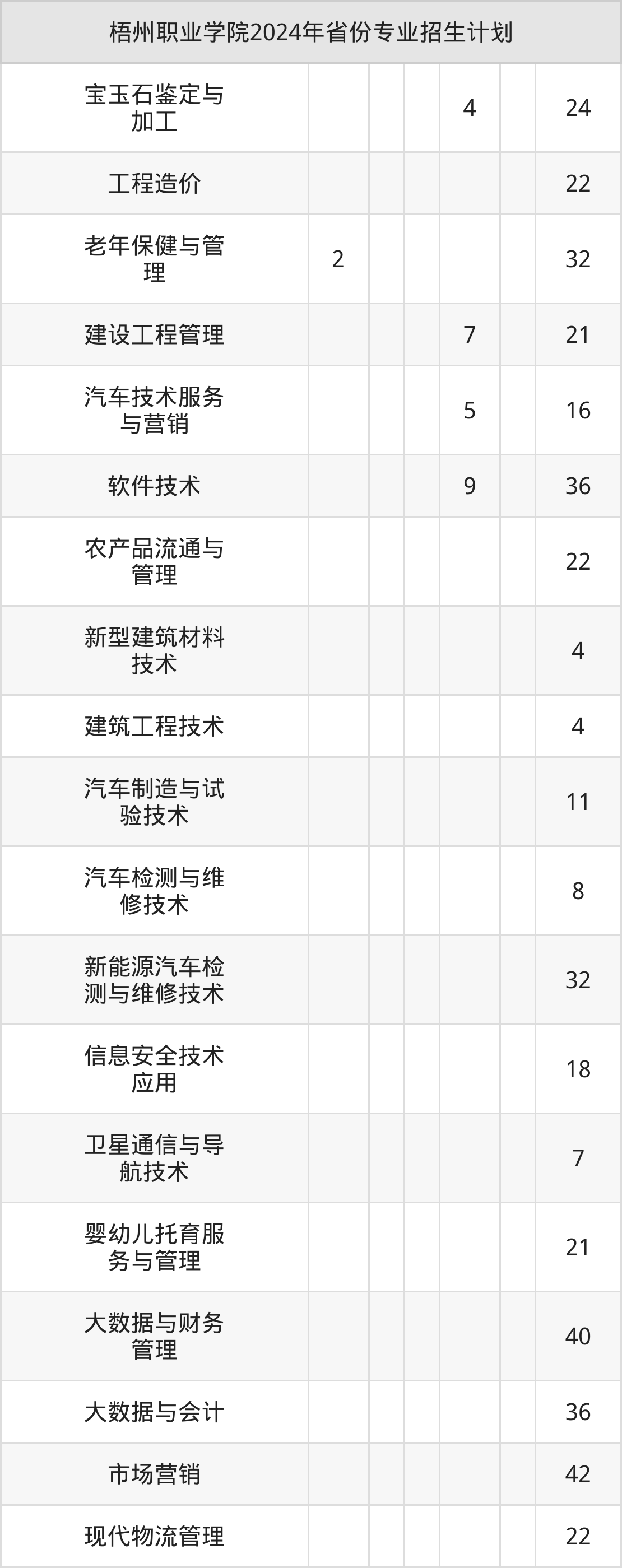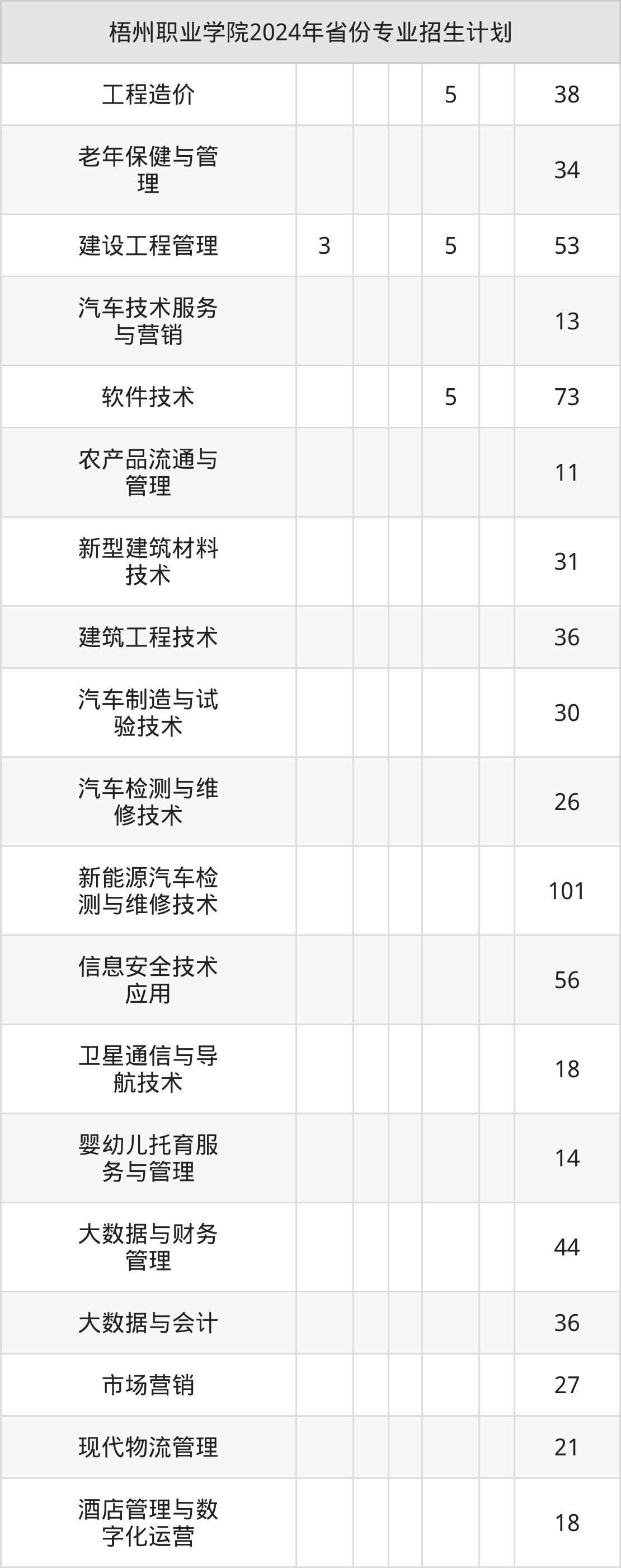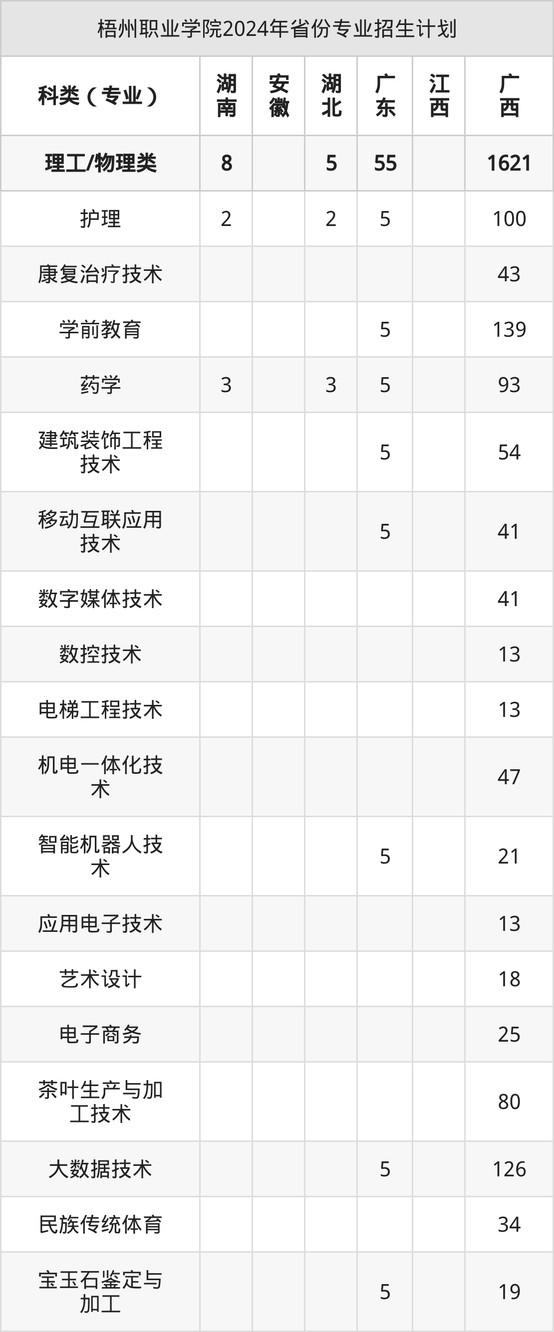 2025年梧州职业学院专科招生计划待公布,下面附上2024年数据,暂供参考: