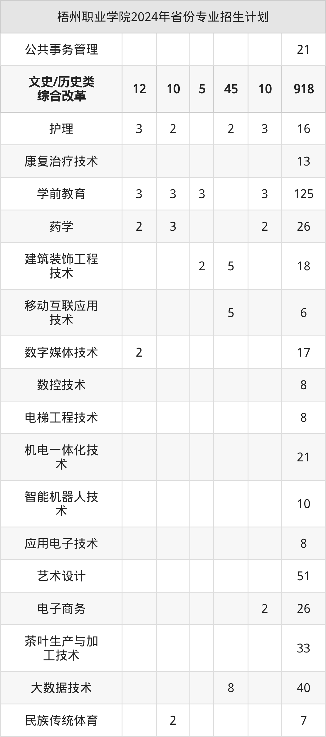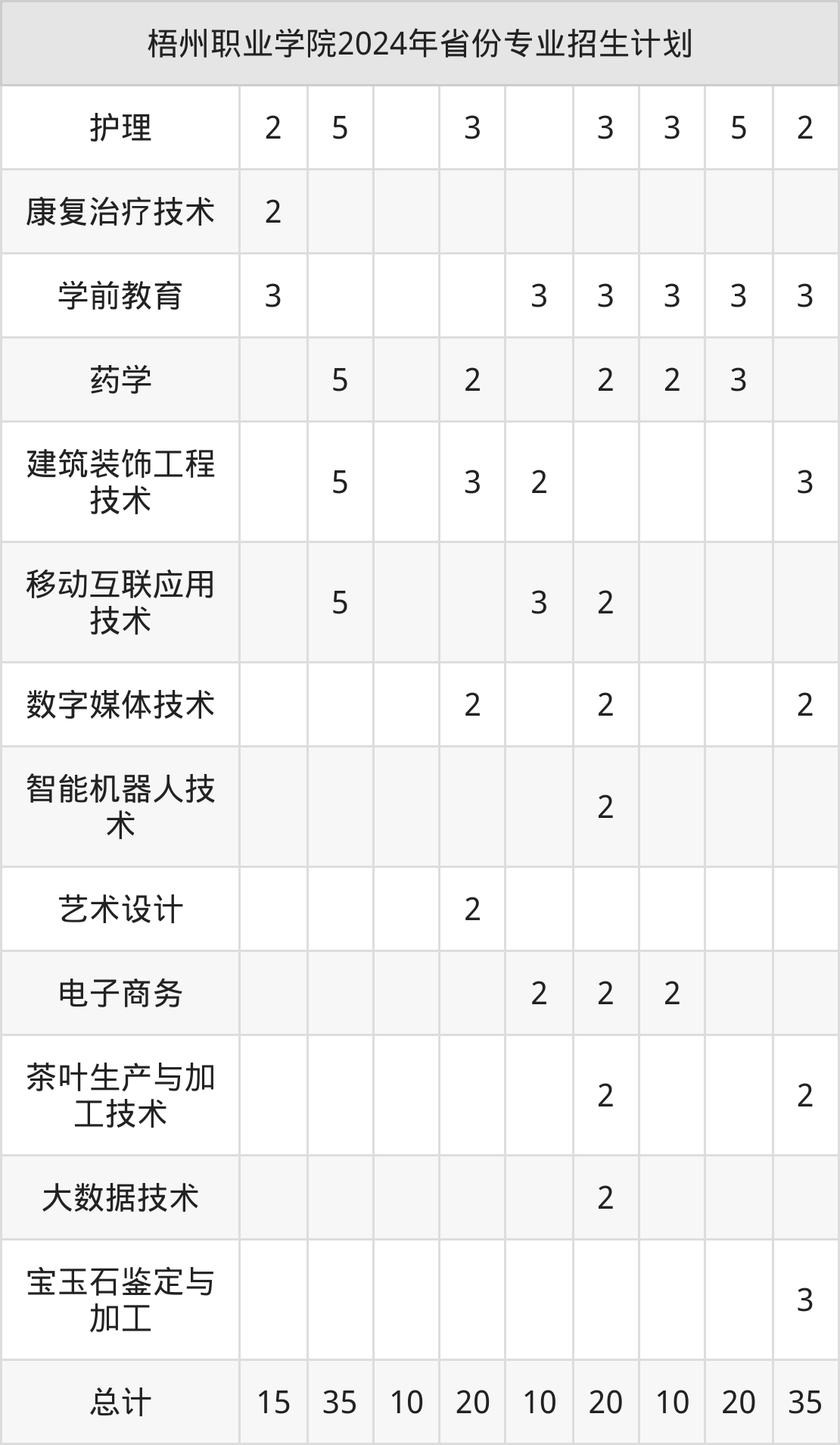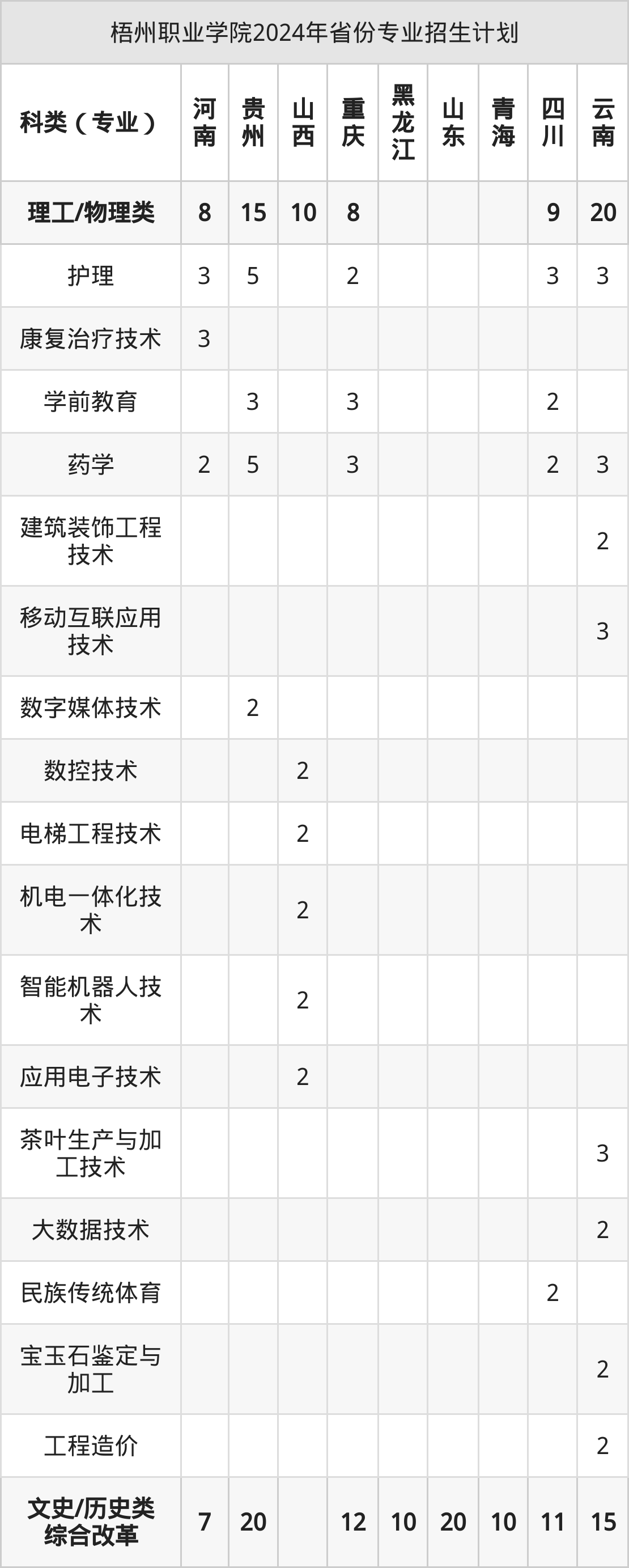 2025年梧州职业学院专科招生计划待公布,下面附上2024年数据,暂供参考: