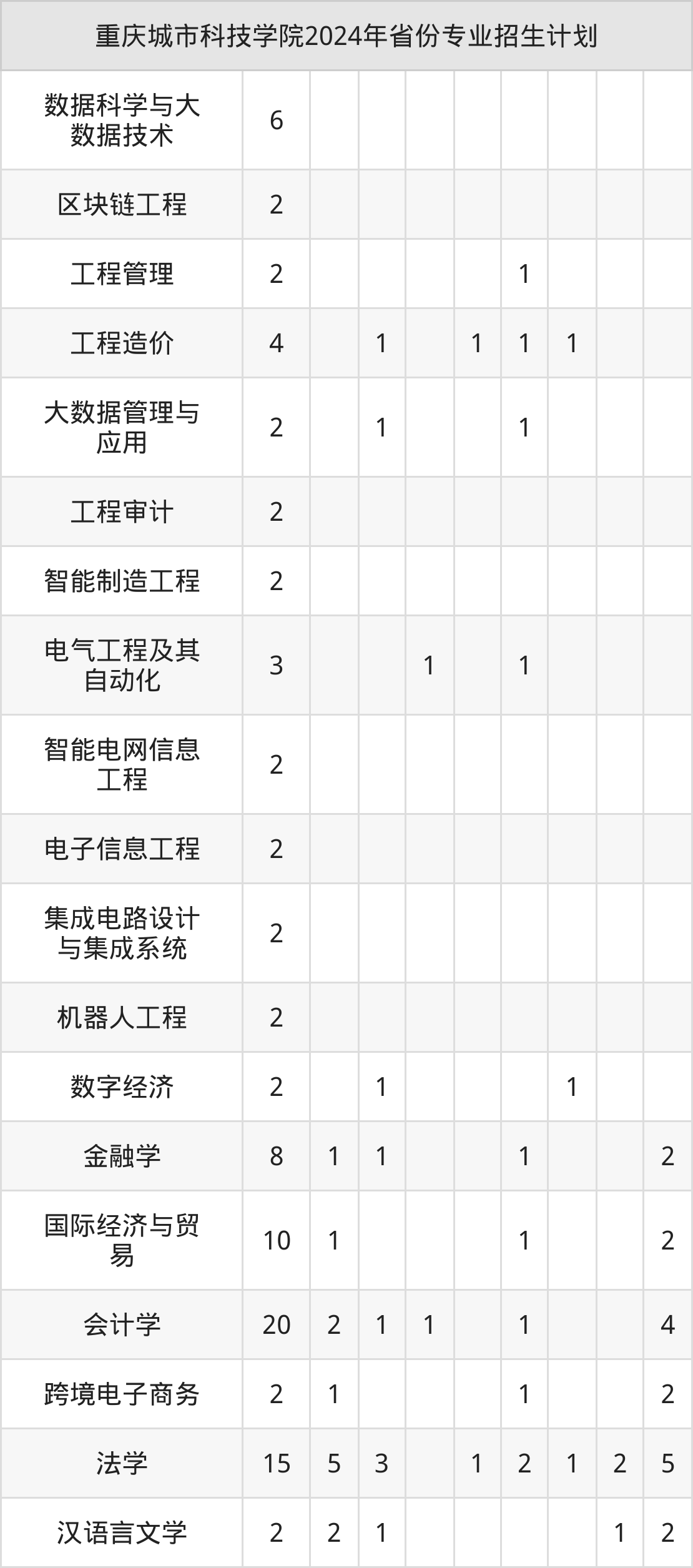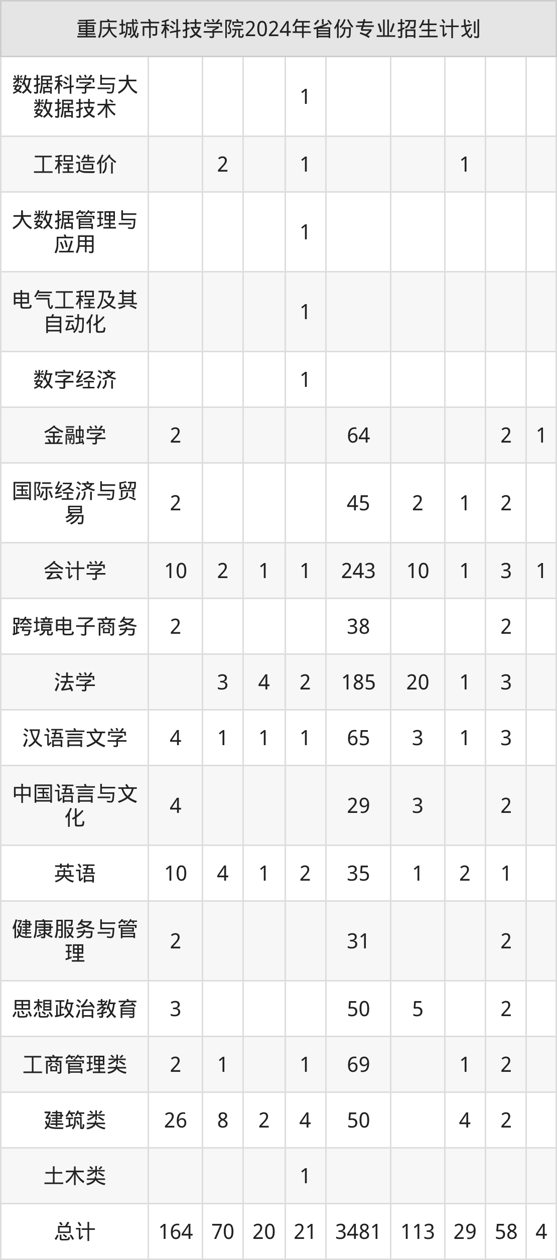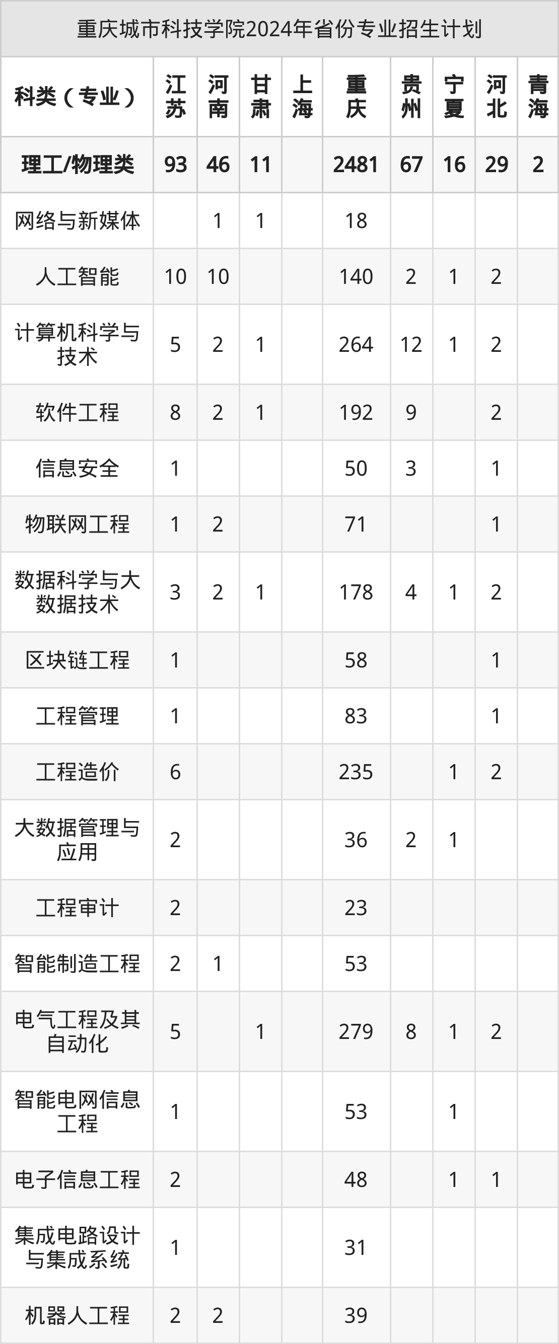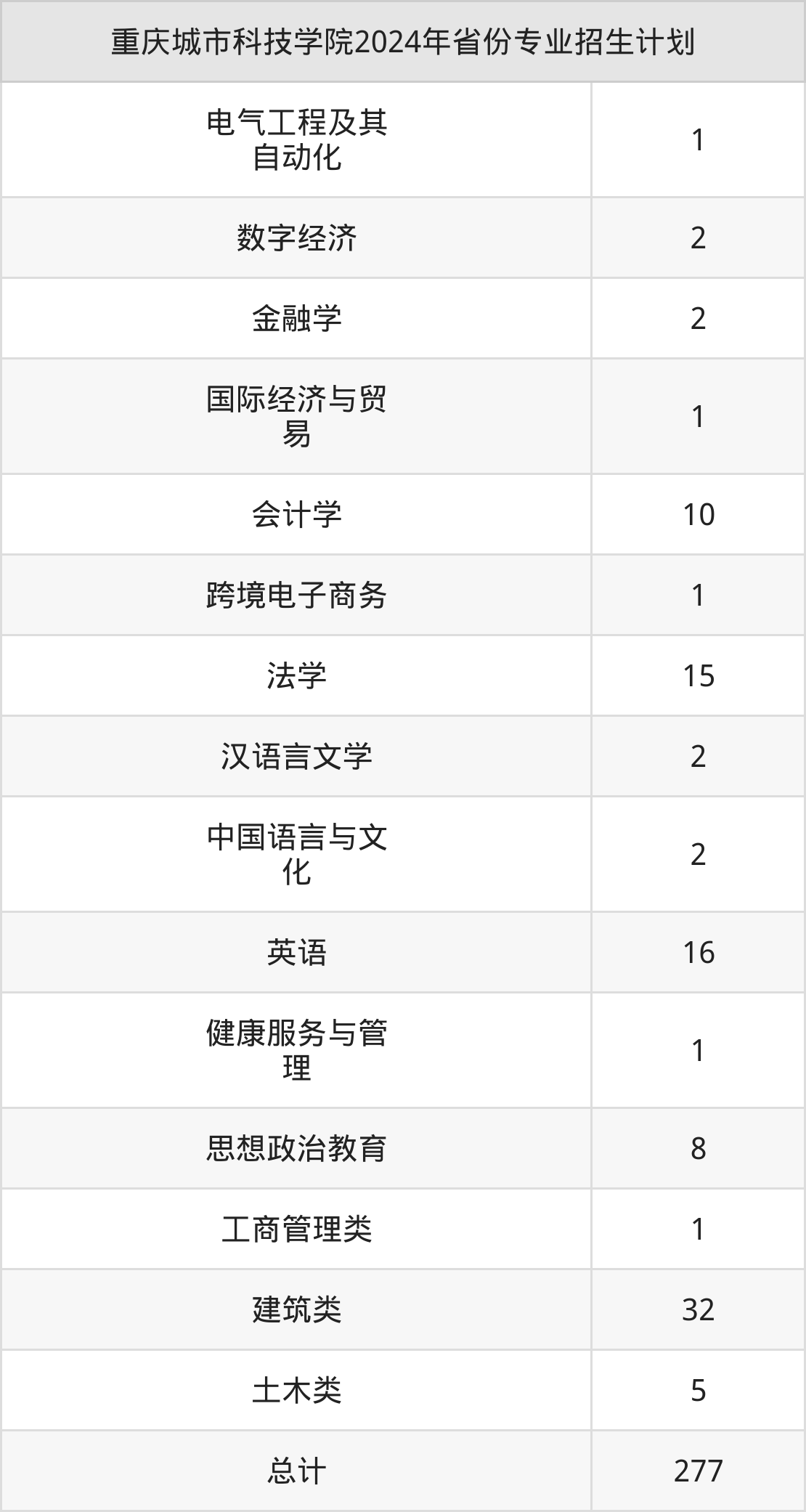 2025年重庆城市科技学院本科招生计划待公布,下面附上2024年数据,暂供参考: