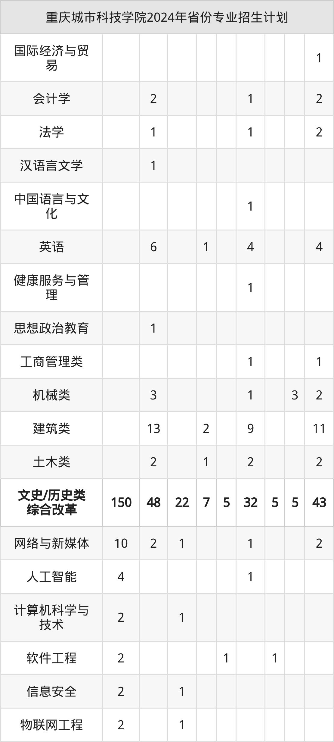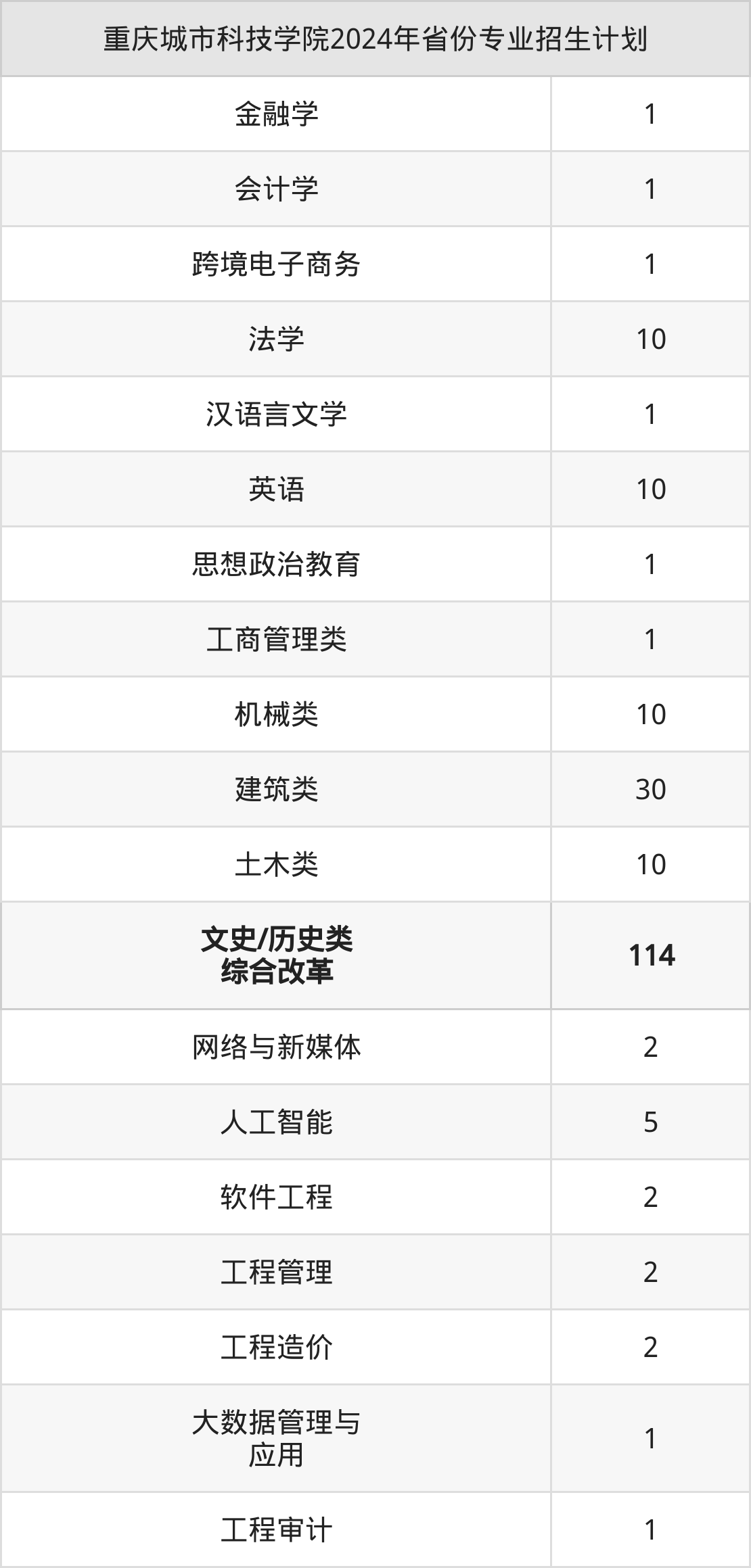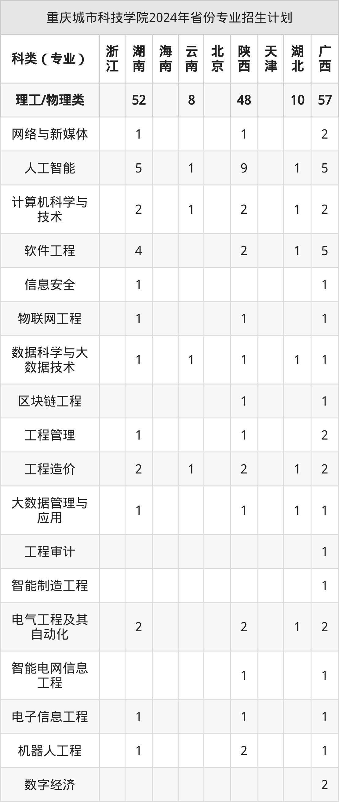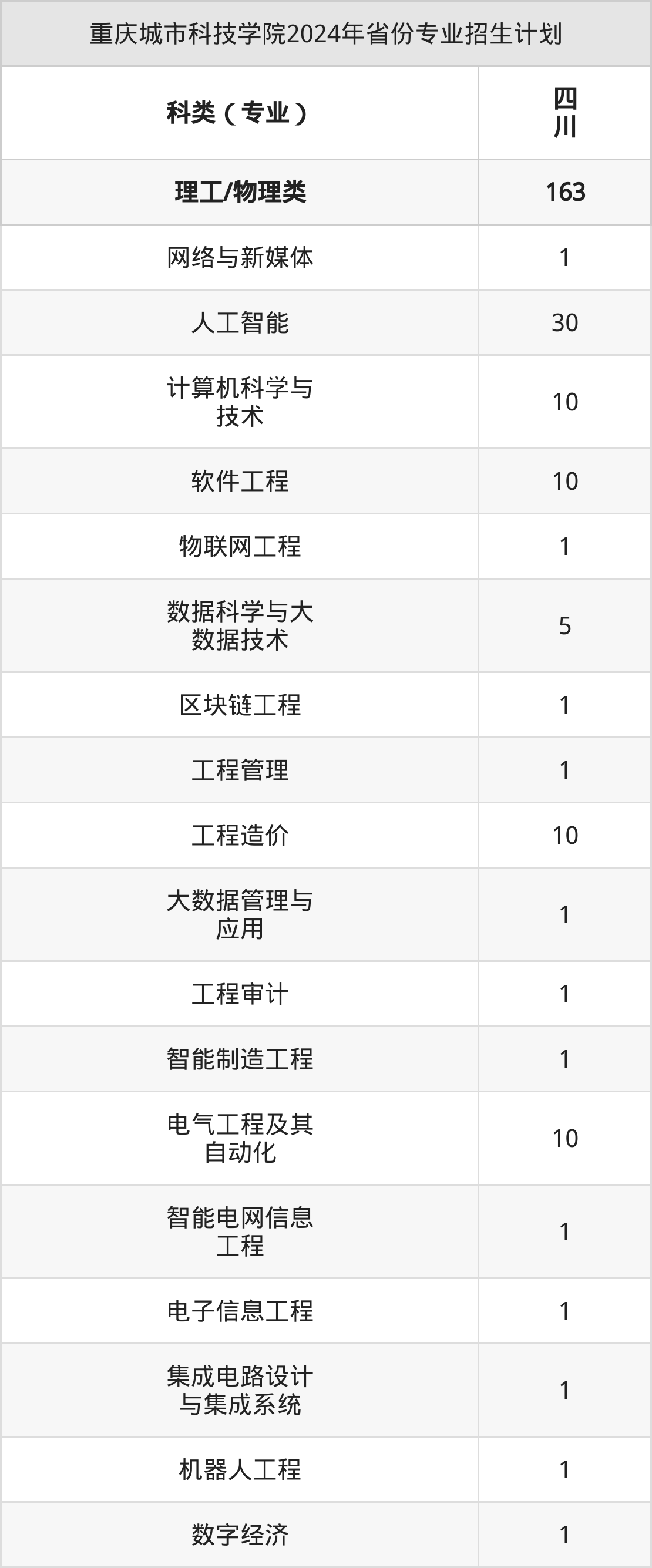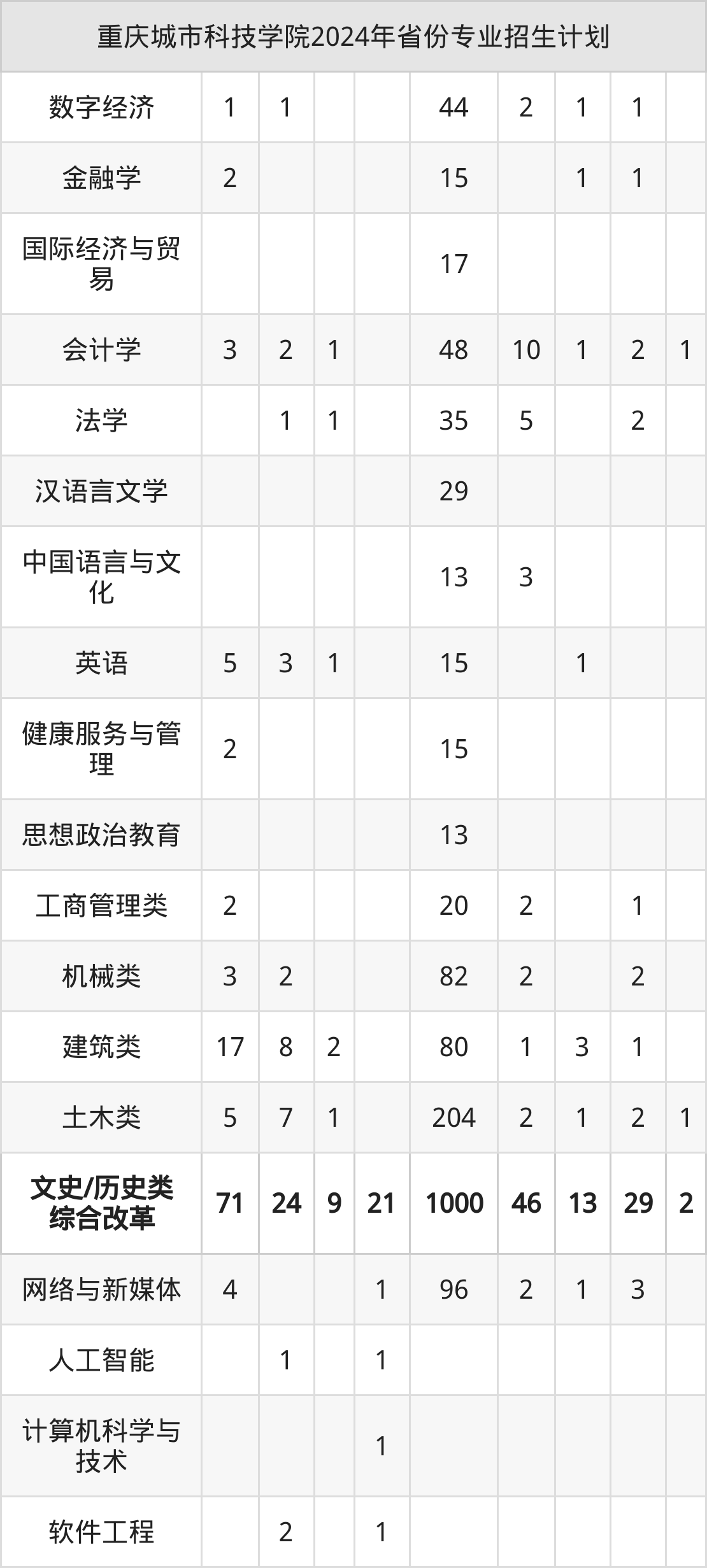 2025年重庆城市科技学院本科招生计划待公布,下面附上2024年数据,暂供参考: