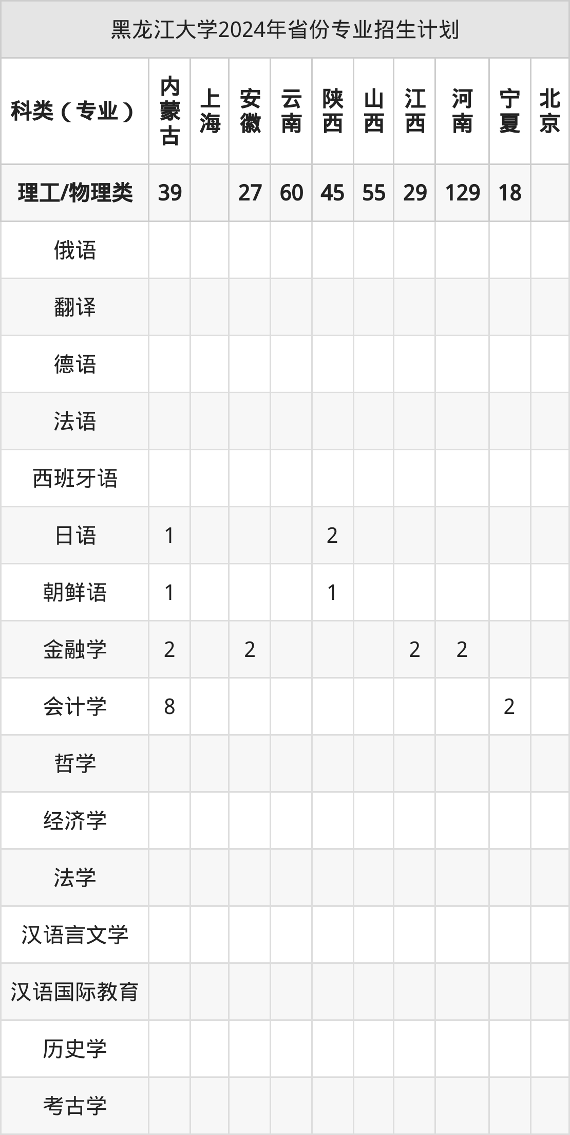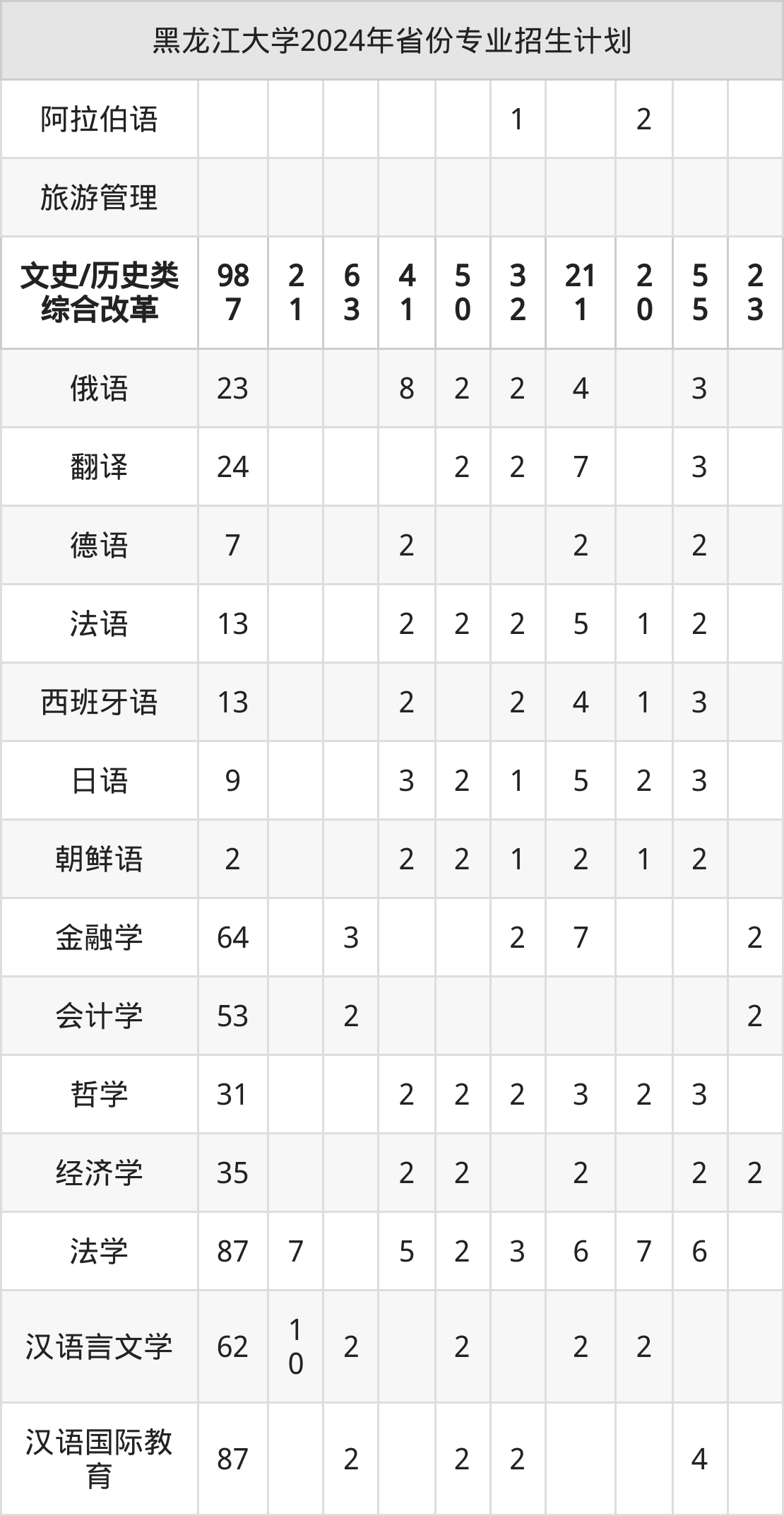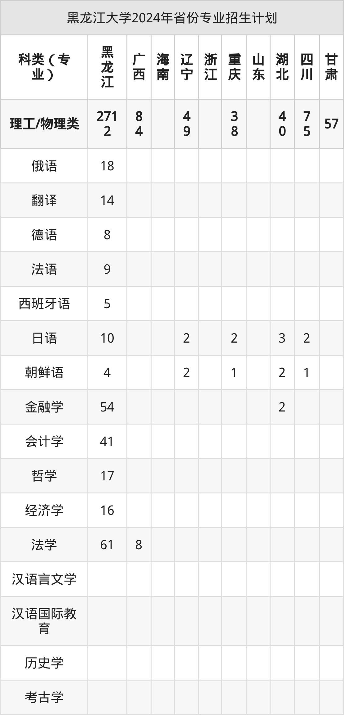 2025年黑龙江大学本科招生计划待公布,下面附上2024年数据,暂供参考: