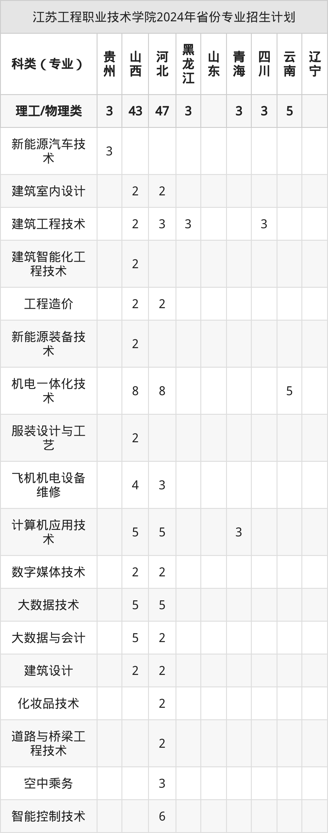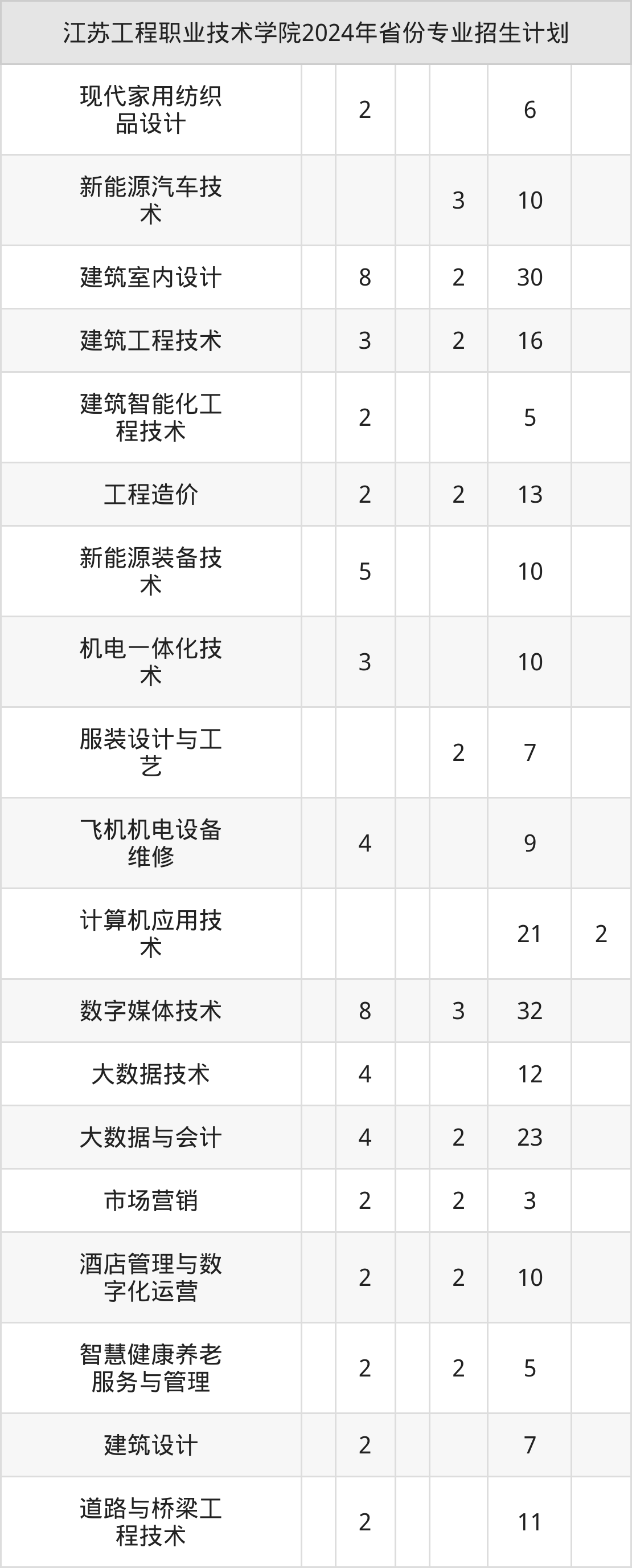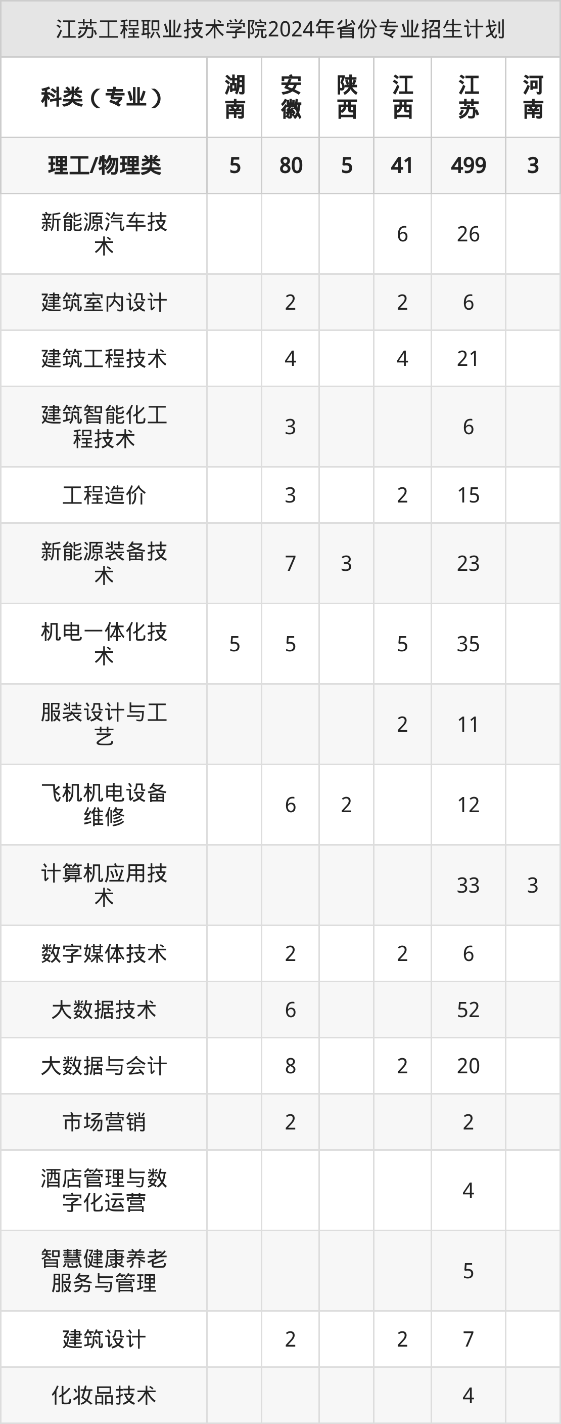 2025年江苏工程职业技术学院专科招生计划待公布,下面附上2024年数据,暂供参考: