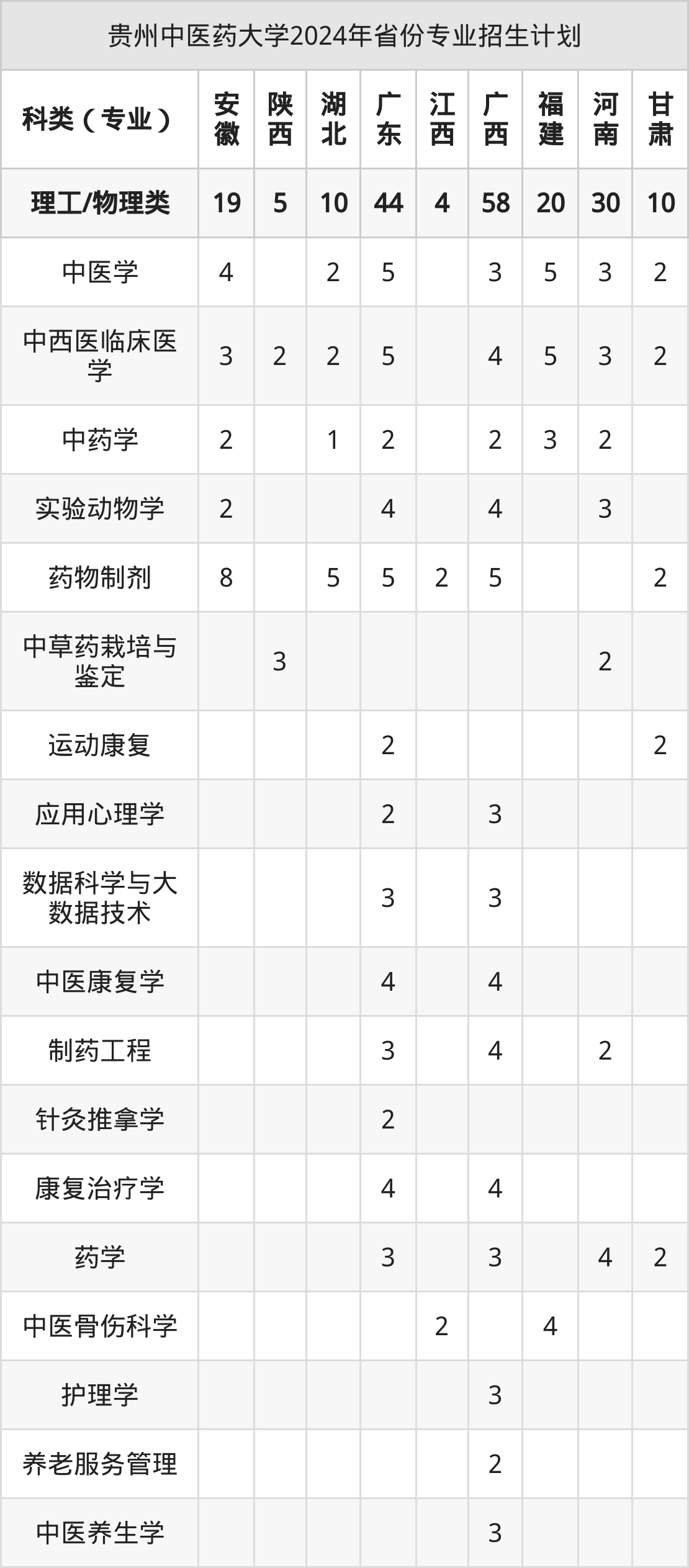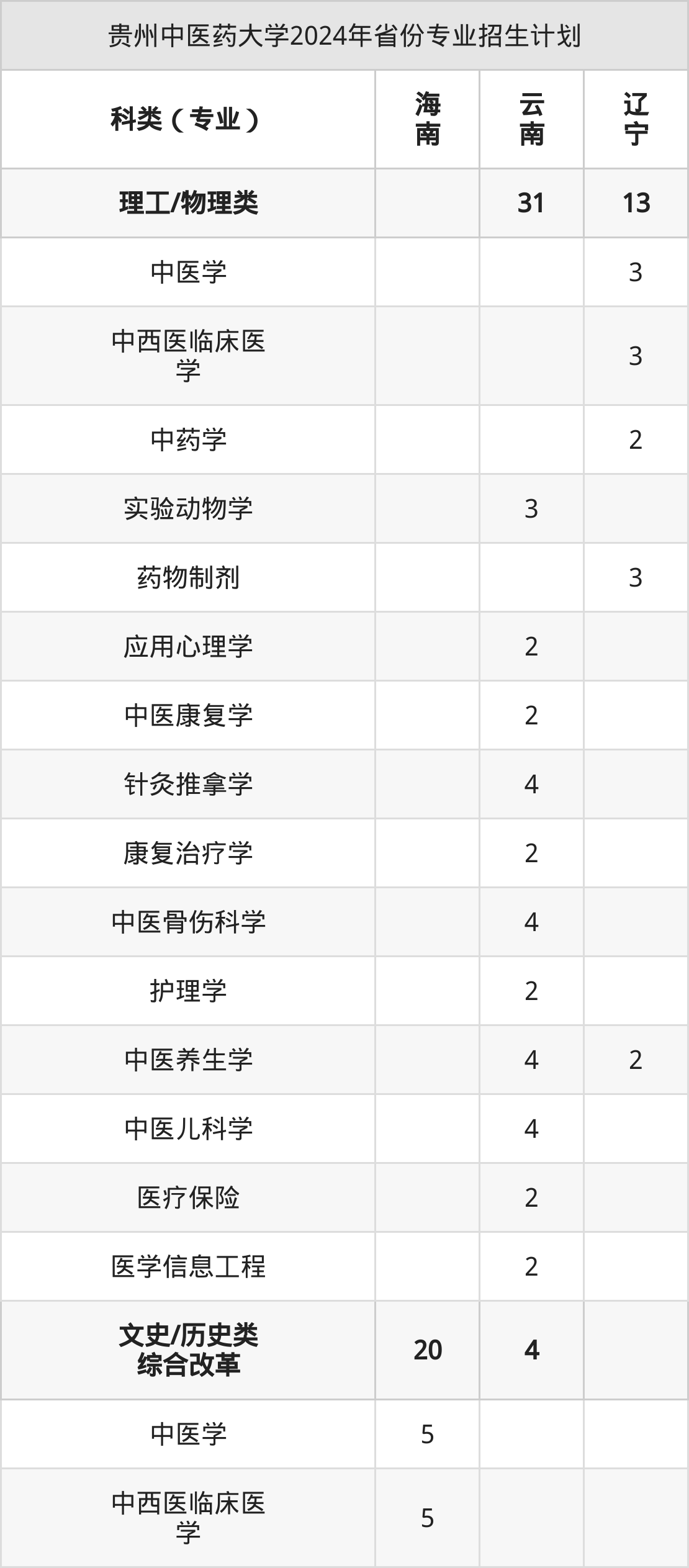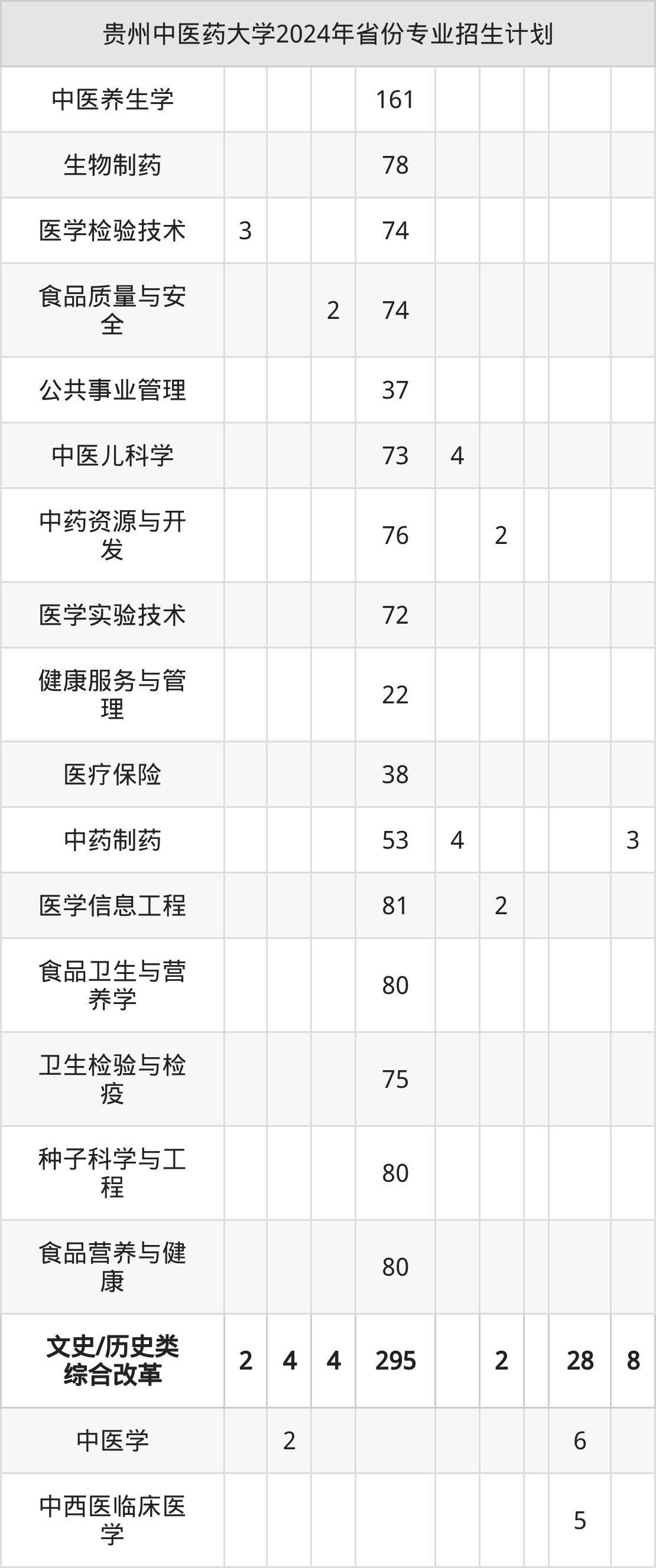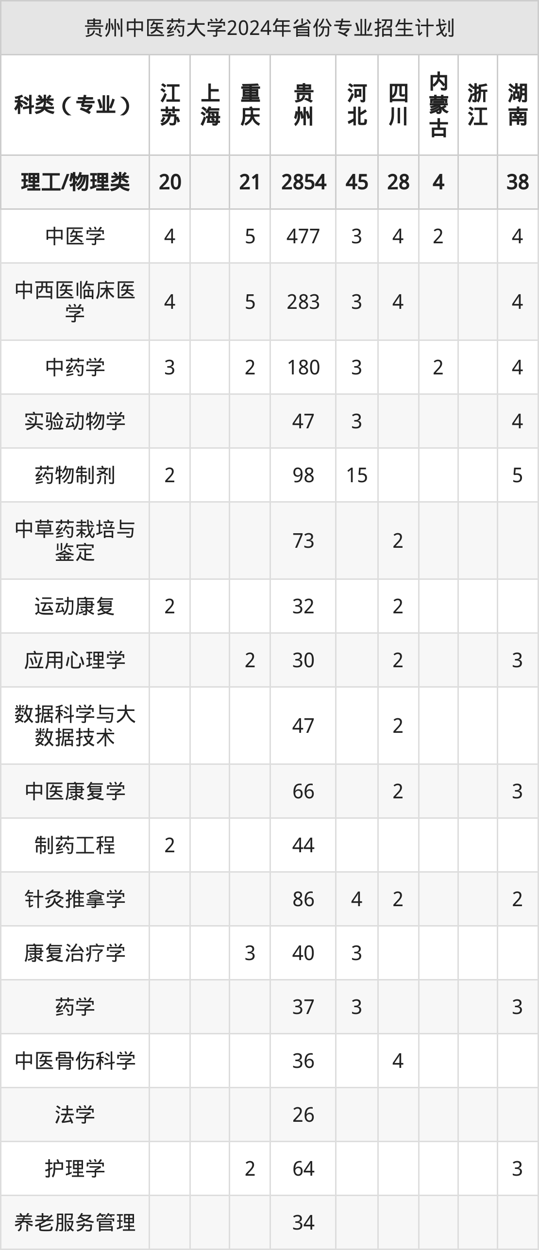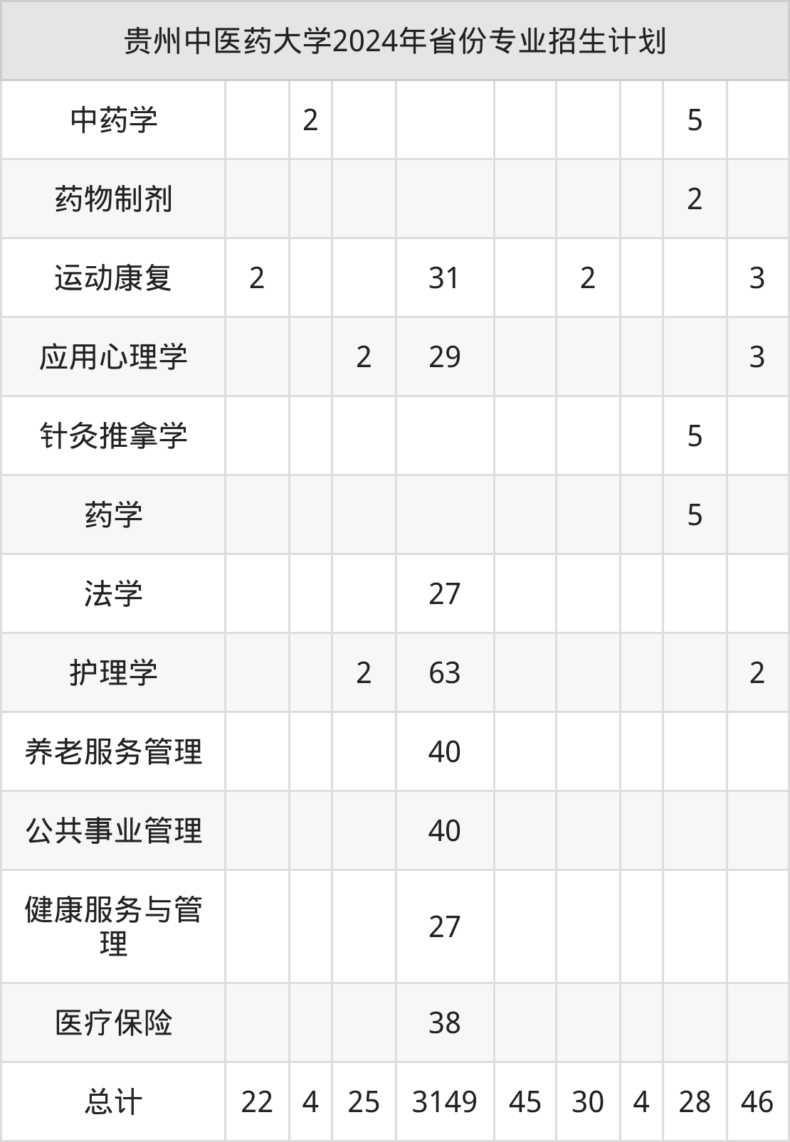 2025年贵州中医药大学本科招生计划待公布,下面附上2024年数据,暂供参考: