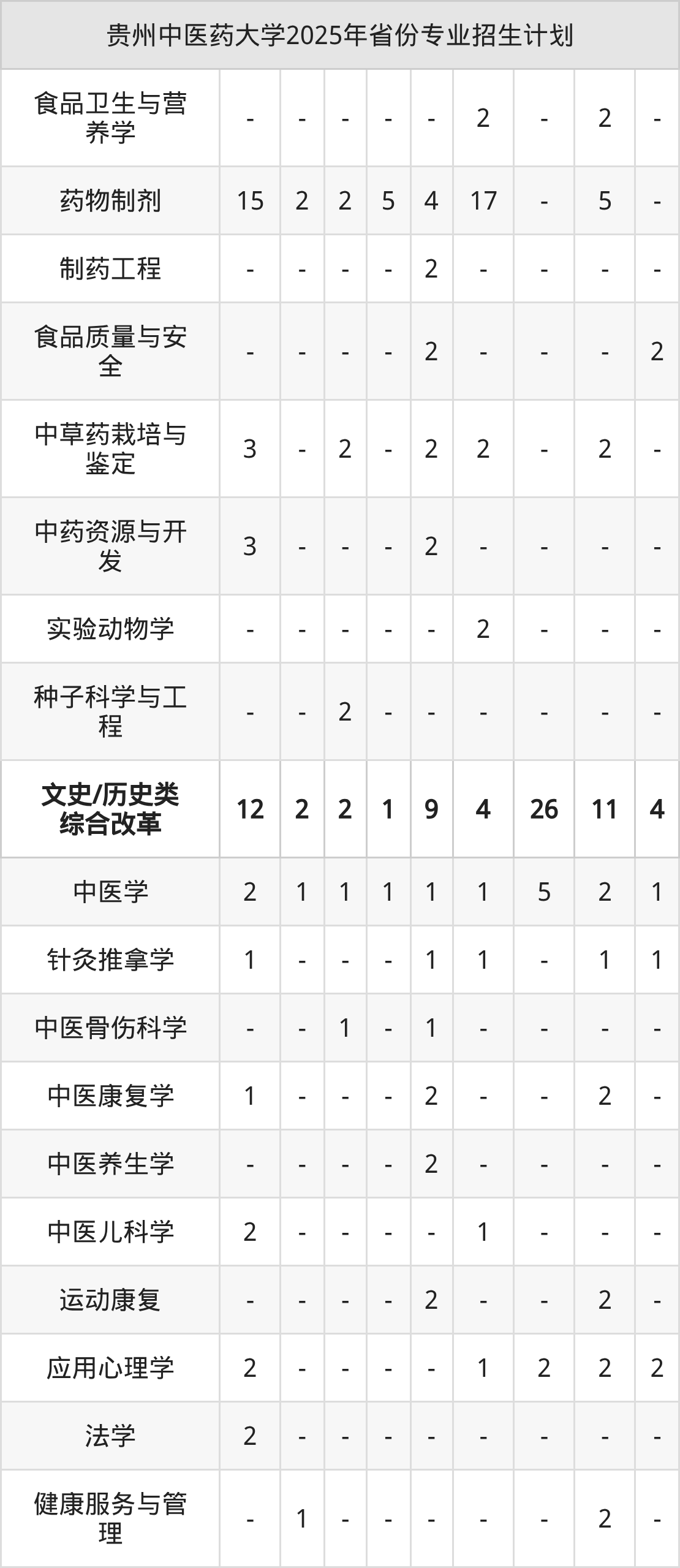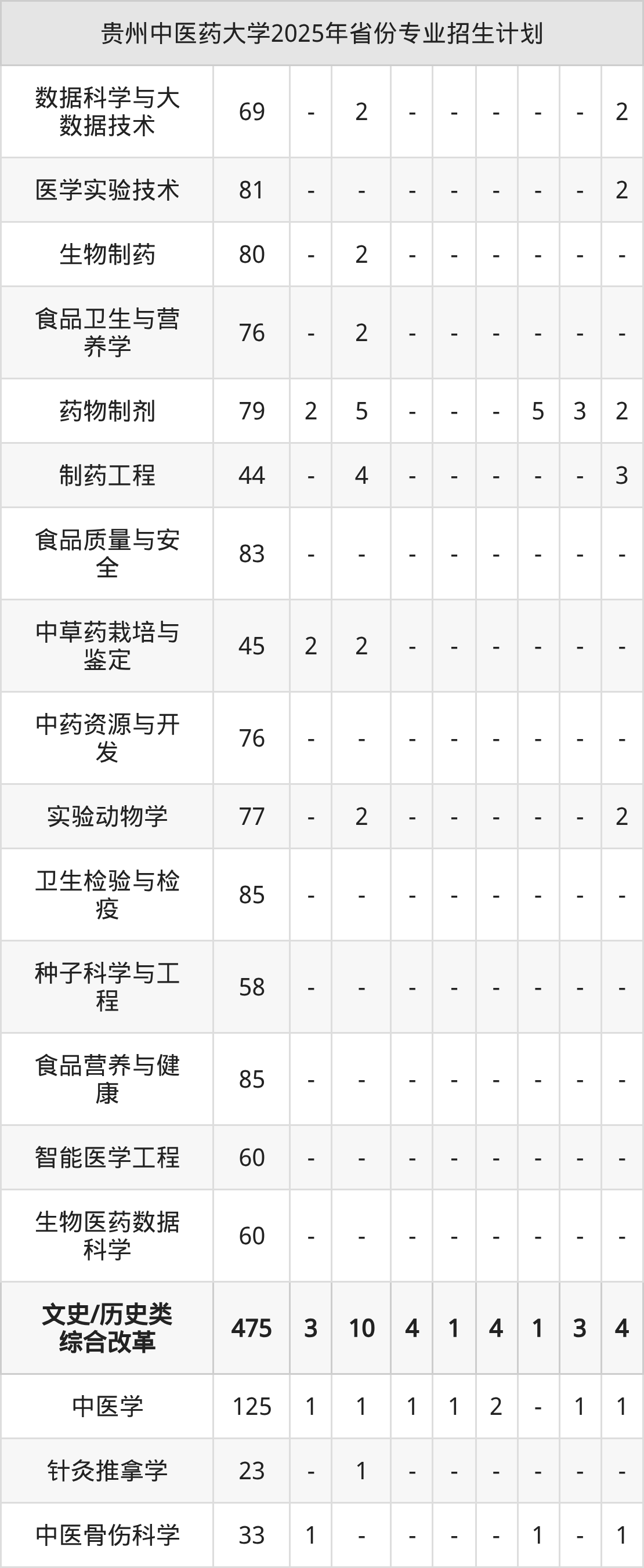 二、贵州中医药大学2025年招生计划