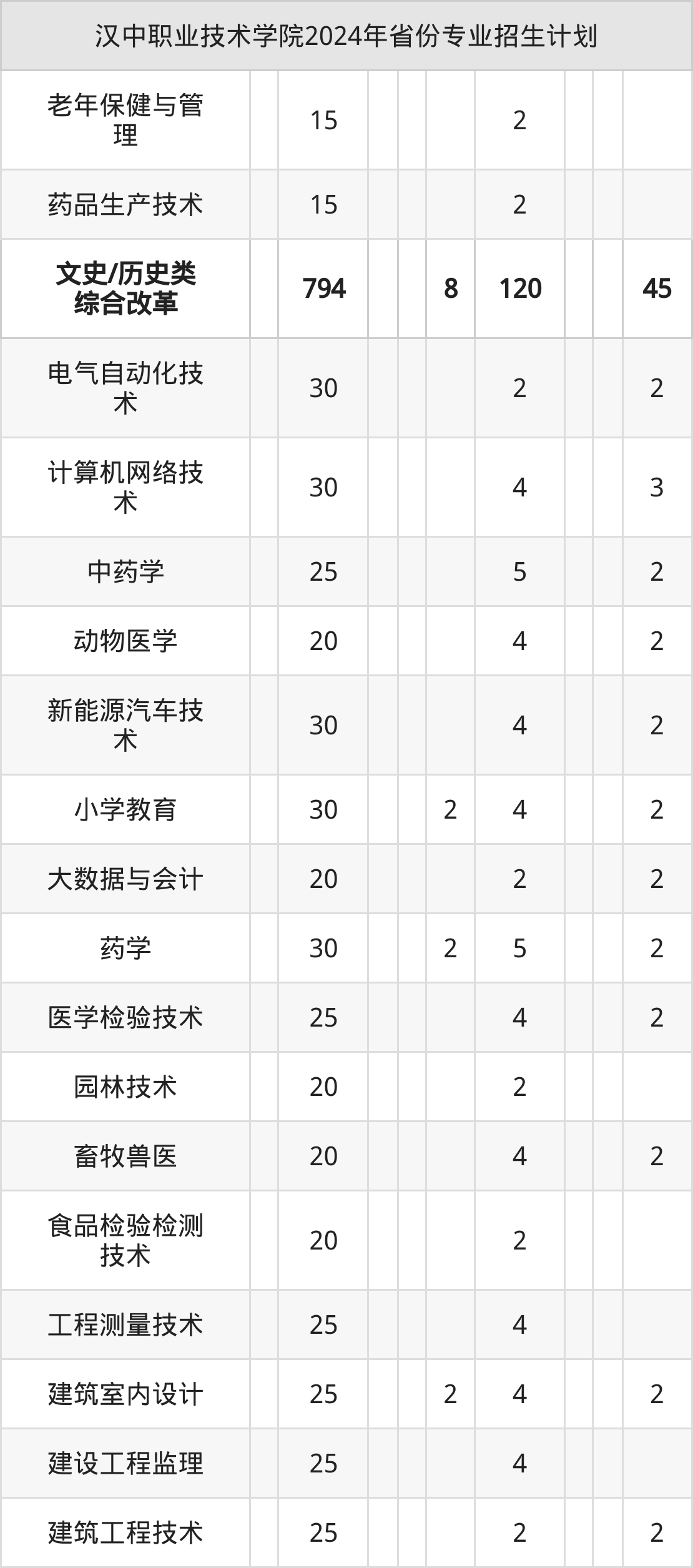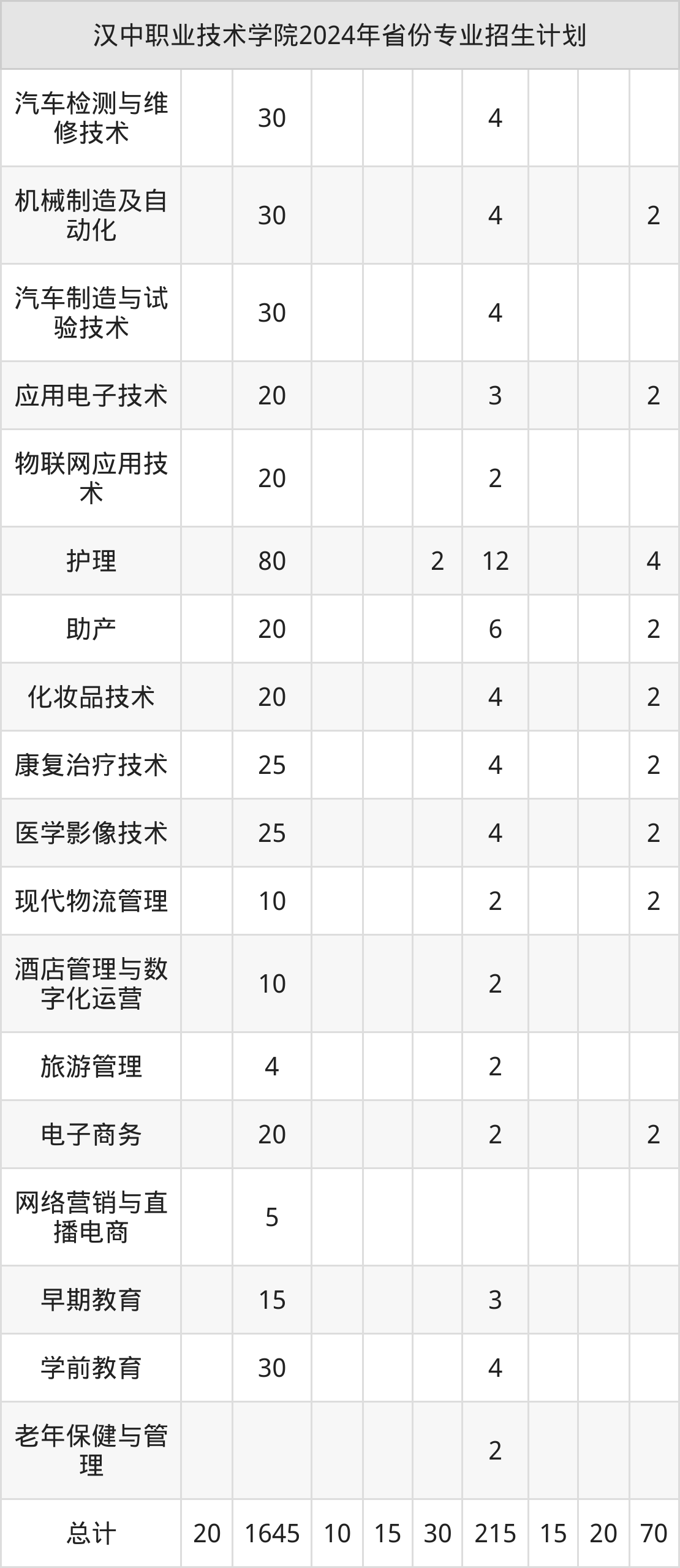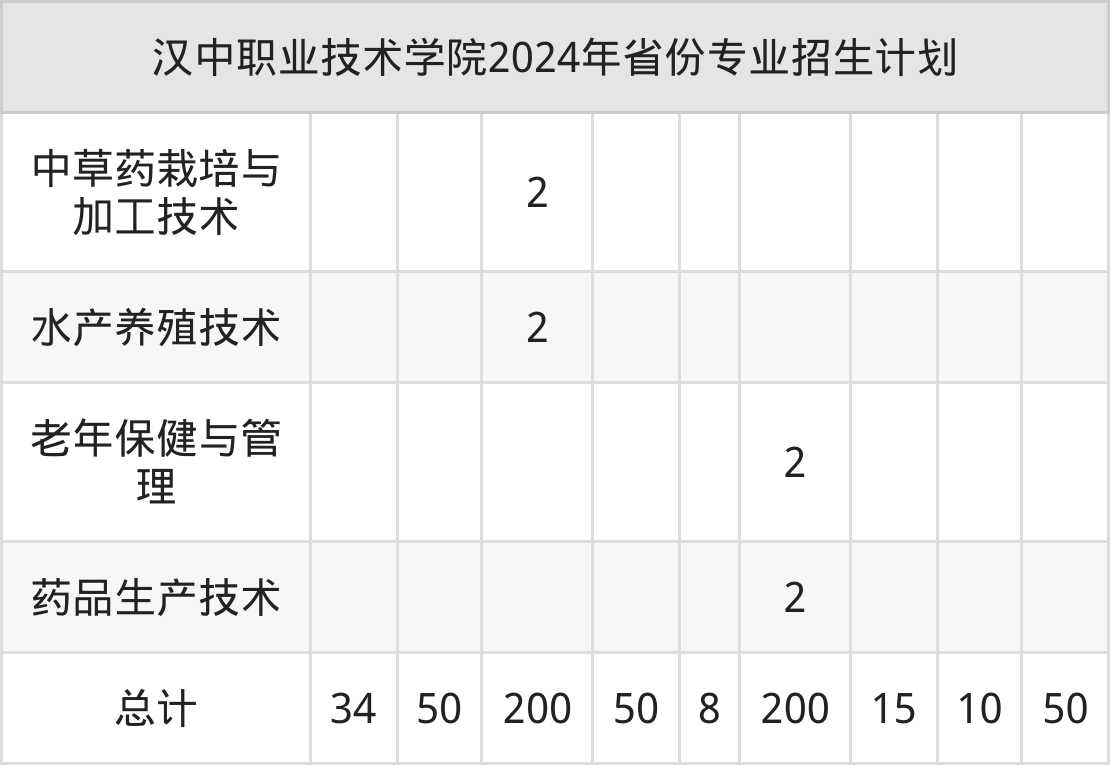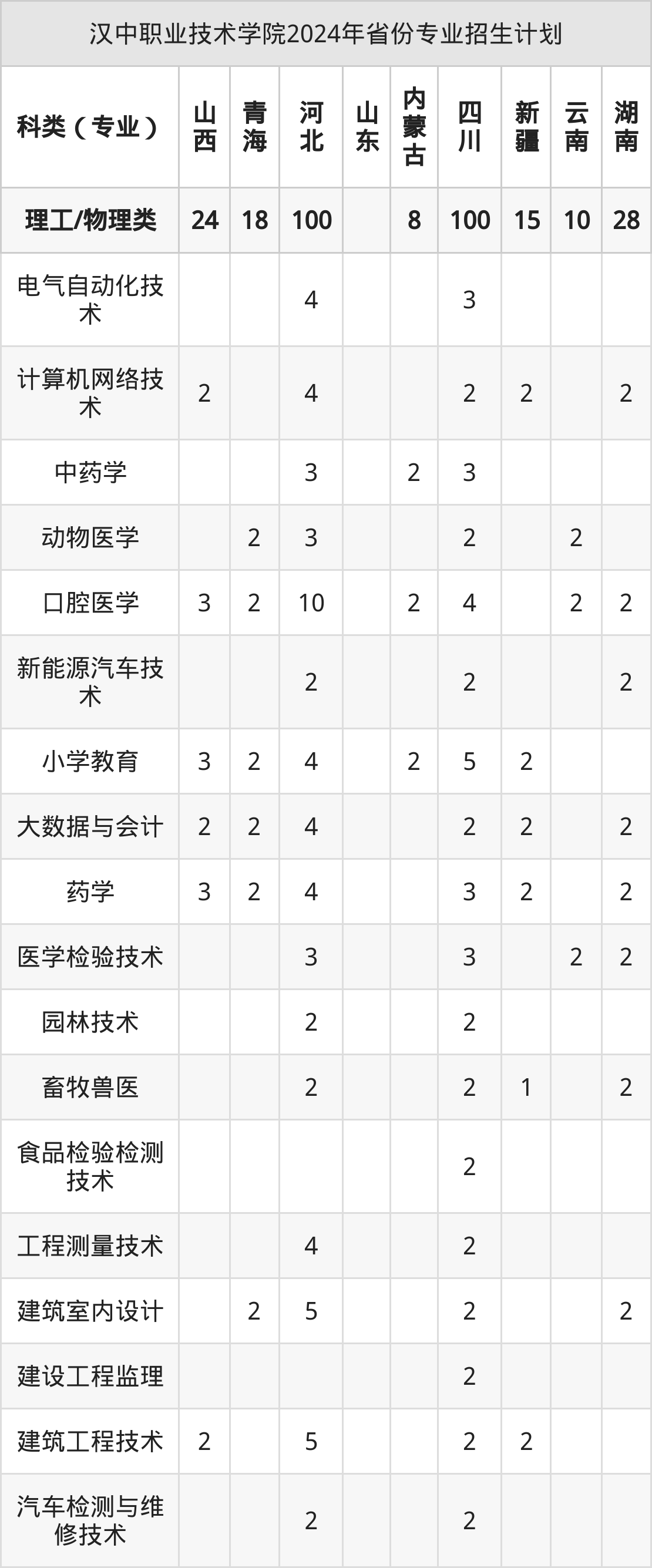 2025年汉中职业技术学院专科招生计划待公布,下面附上2024年数据,暂供参考: