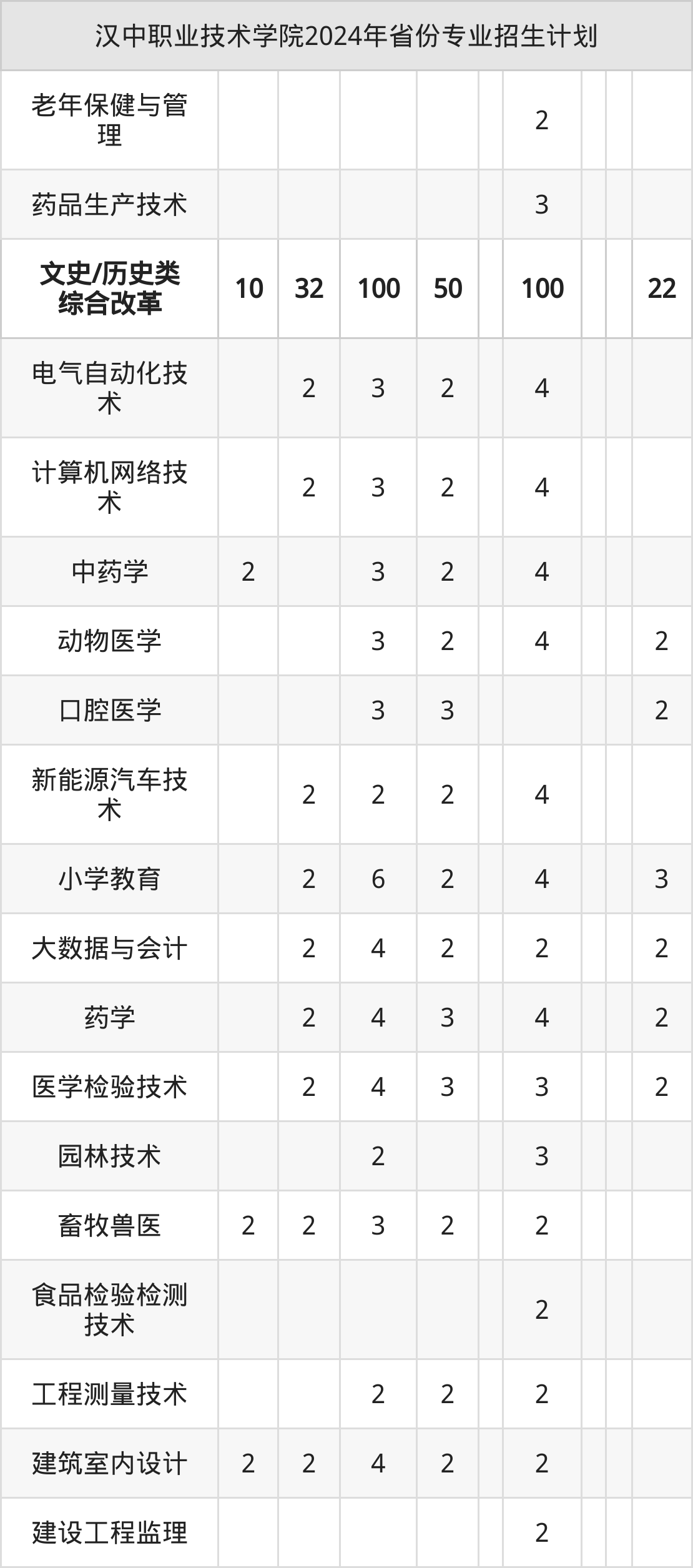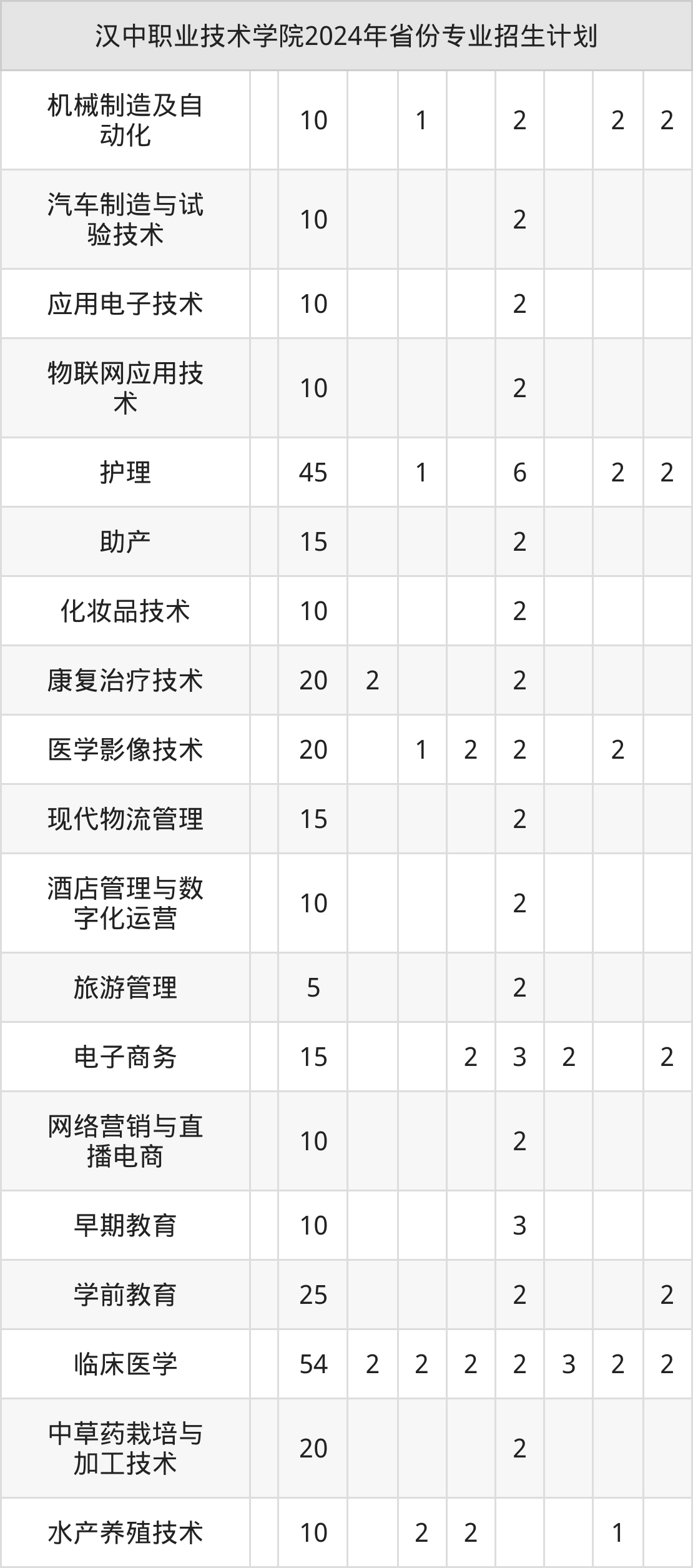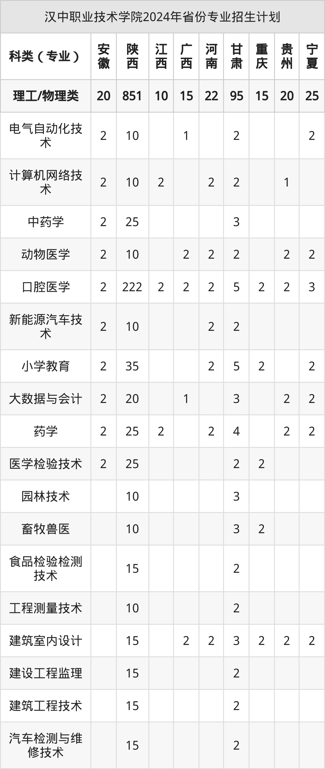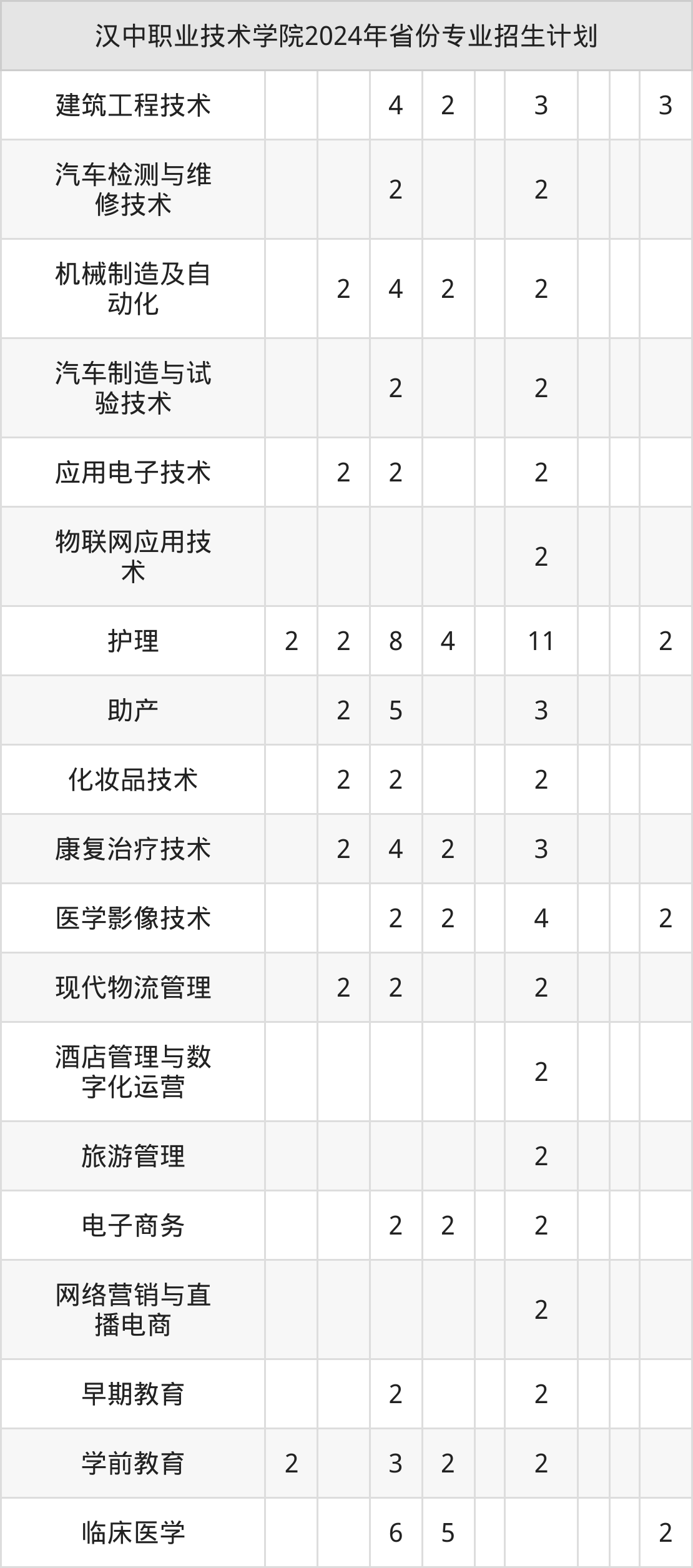2025年汉中职业技术学院专科招生计划待公布,下面附上2024年数据,暂供参考: