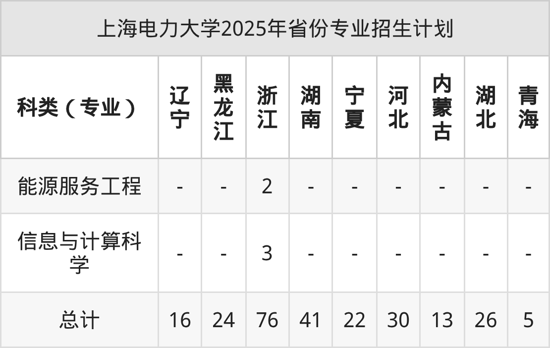 2026年上海电力大学本科招生计划待公布,下面附上2025年数据,暂供参考: