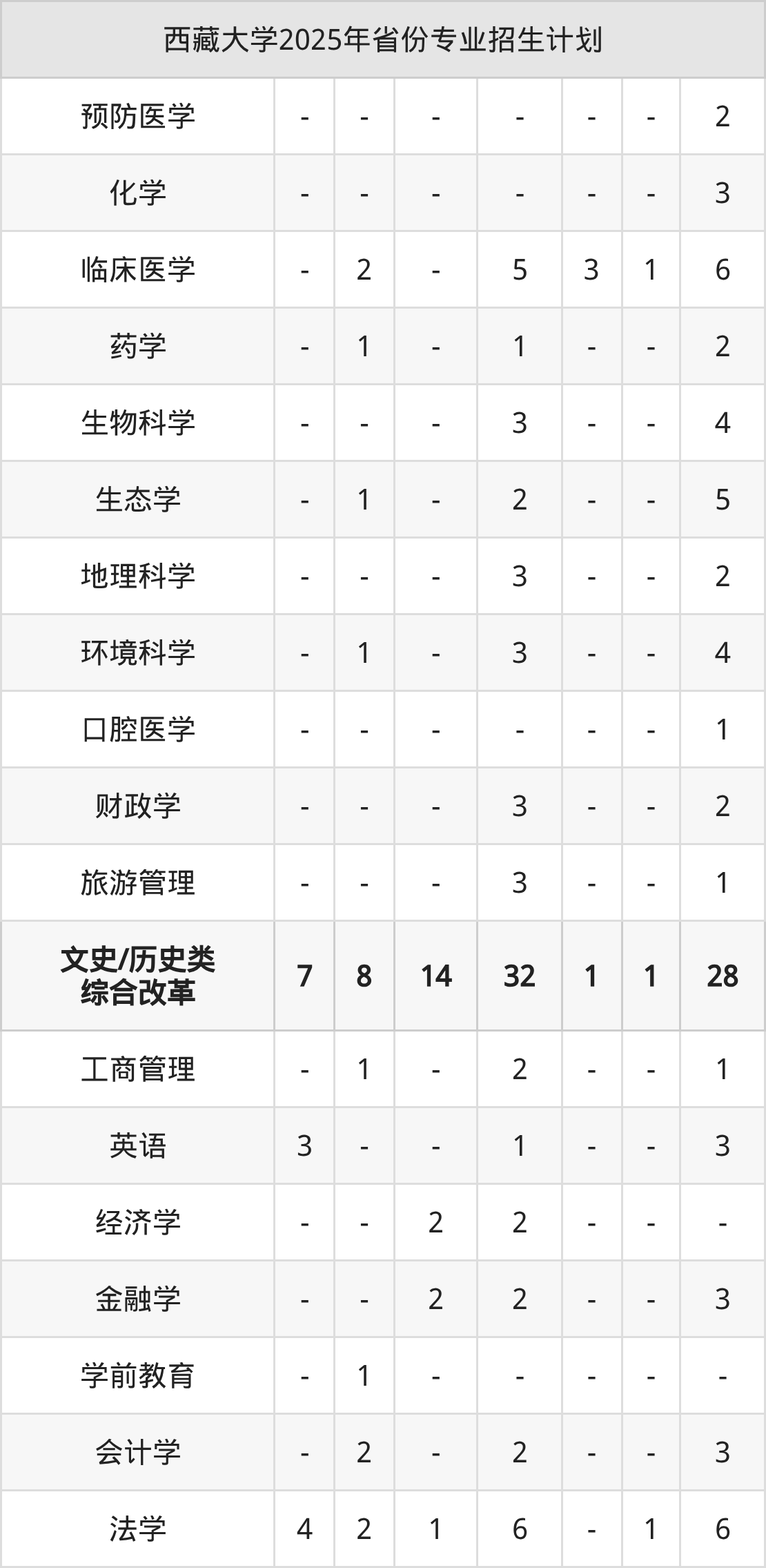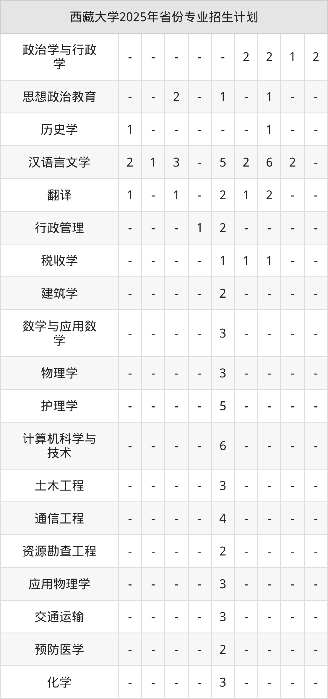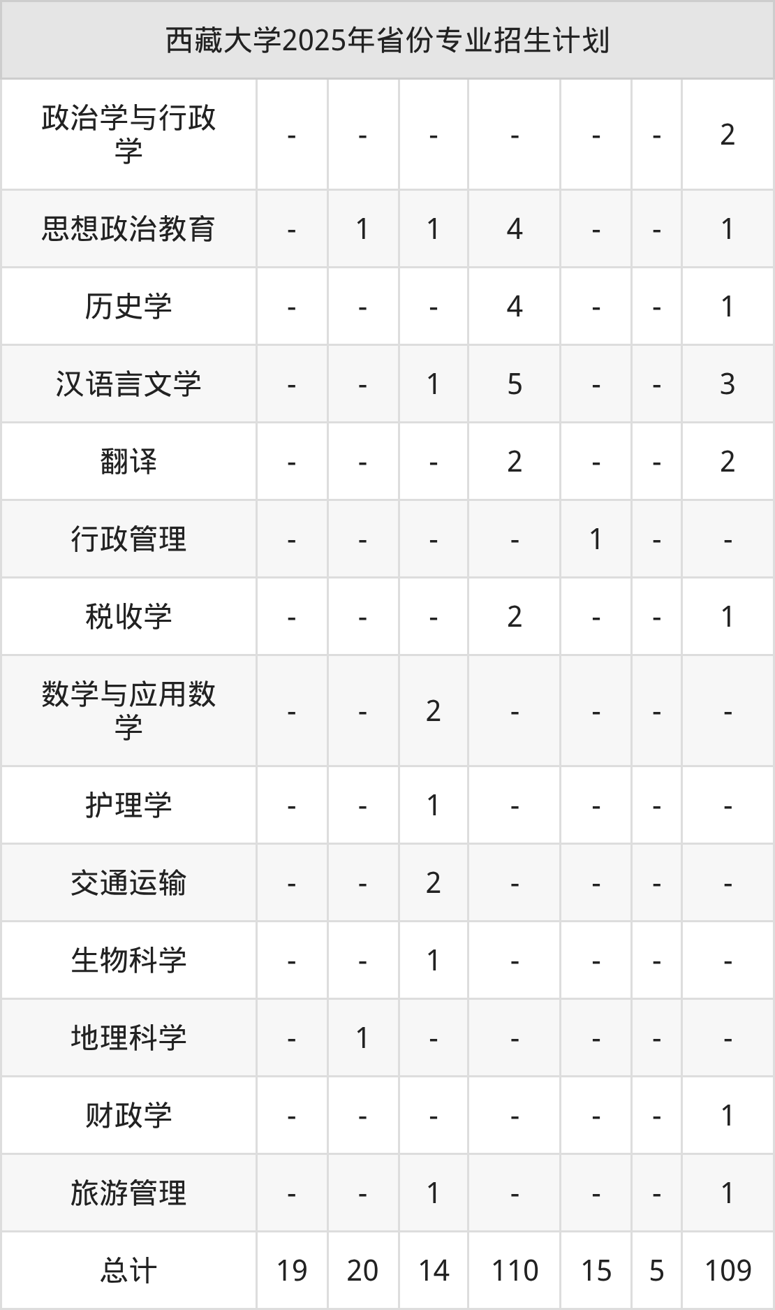 2026年西藏大学本科招生计划待公布,下面附上2025年数据,暂供参考: