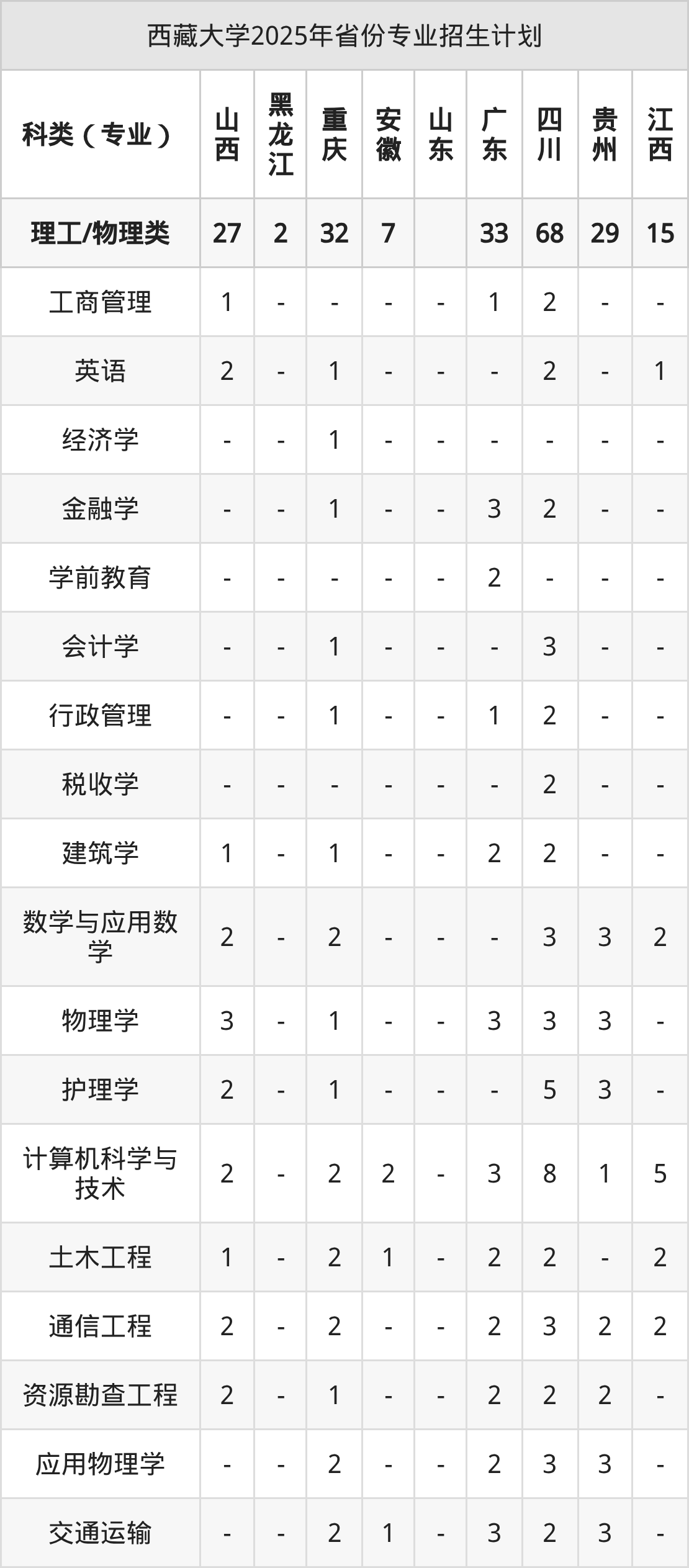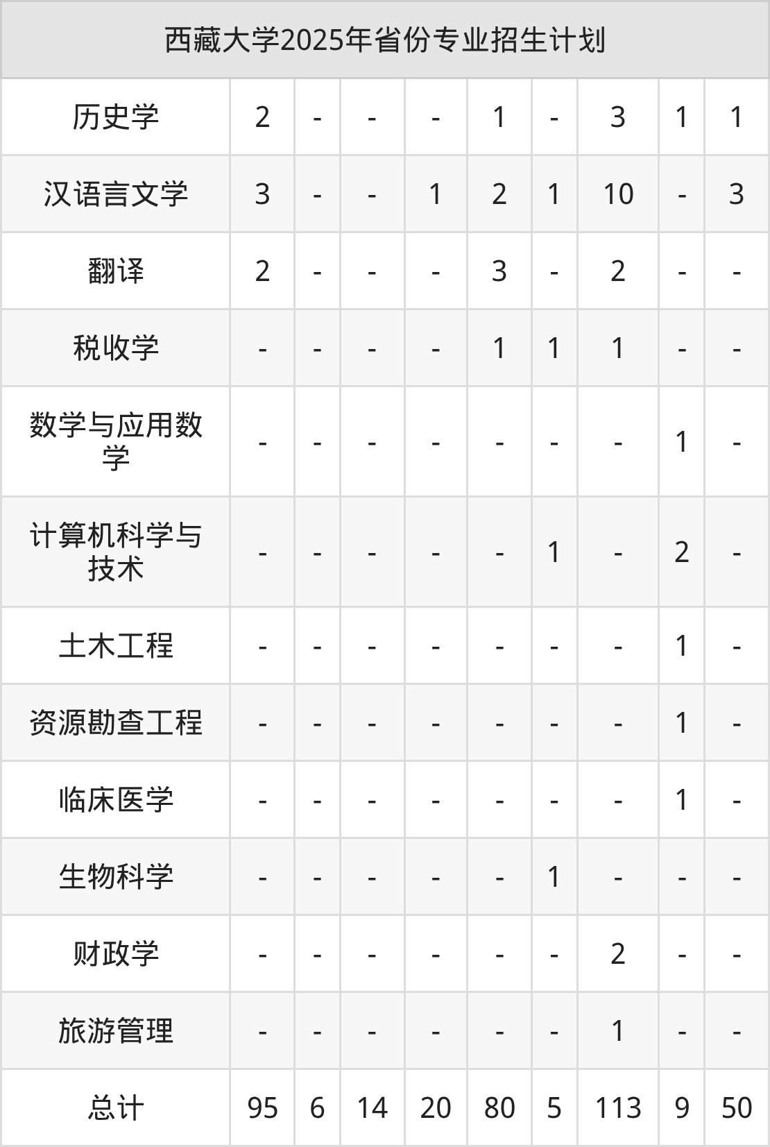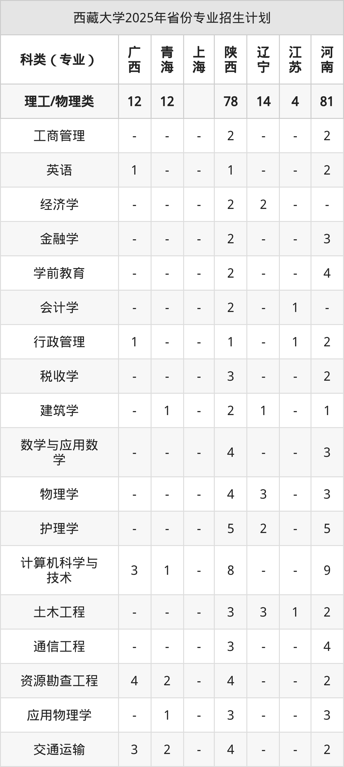 2026年西藏大学本科招生计划待公布,下面附上2025年数据,暂供参考: